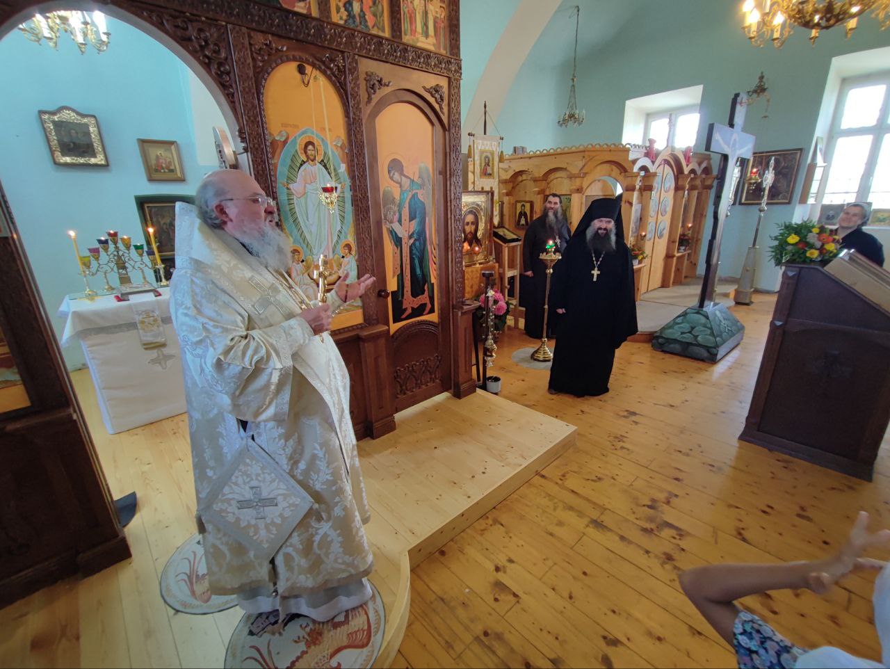 По окончании литургии священнослужители совершили славление Успению Пресвятой Богородицы и преподобномученику Игнатию, а затем владыка обратился к богомольцам с проповедью.