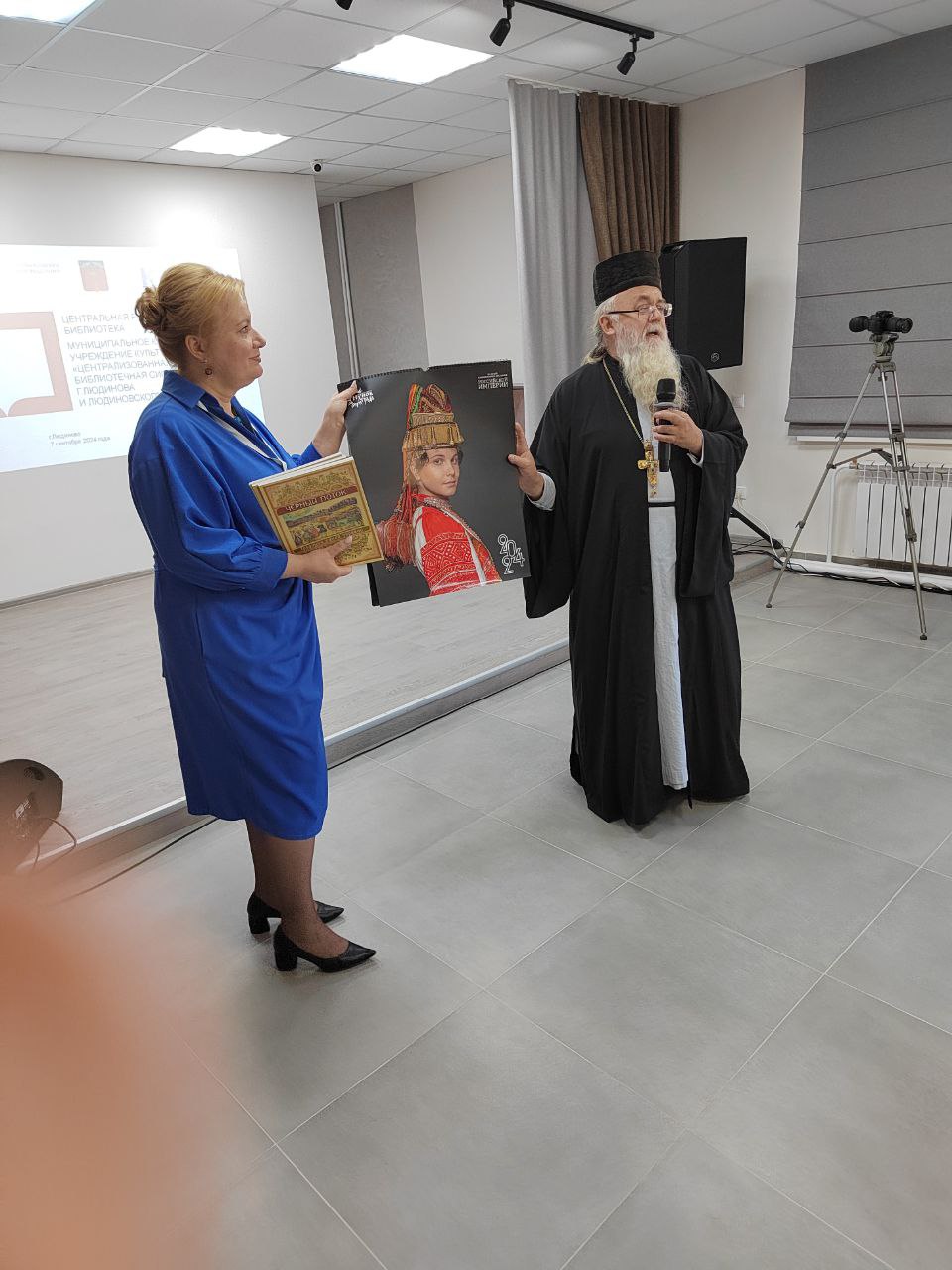 На торжественном открытии присутствующие гости от души поздравляли коллектив библиотеки со знаменательным событием. Отец Алексий, после своего поздравления, подарил в фонд районной библиотеки календарь на 2024 год большим форматом, в котором представлено 12 нарядов с «дополненной реальностью» от 3D платформы, отметив, что в календаре есть фото наших людиновских девушек в удивительных старинных русских нарядах. Также батюшка подарил три книги про одну из деревень Людиновского района «Черный Поток. Традиции одной деревни». Подаренные издания по тематике очень подходят в новый формат обновлённой библиотеки, так как большое внимание здесь теперь будет уделяться краеведению, местным традициям, знаменитым землякам.