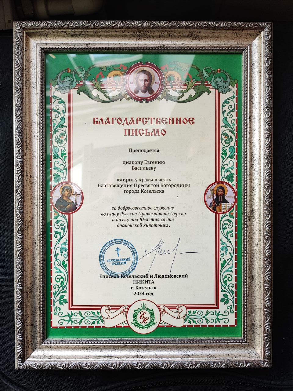 Епископ Никита поздравил клириков Козельской епархии с памятными датами