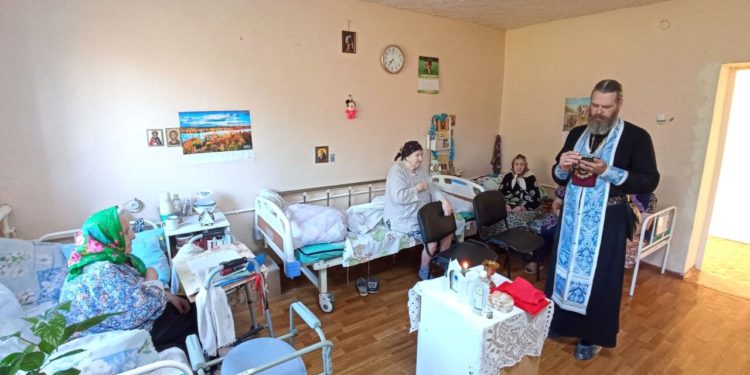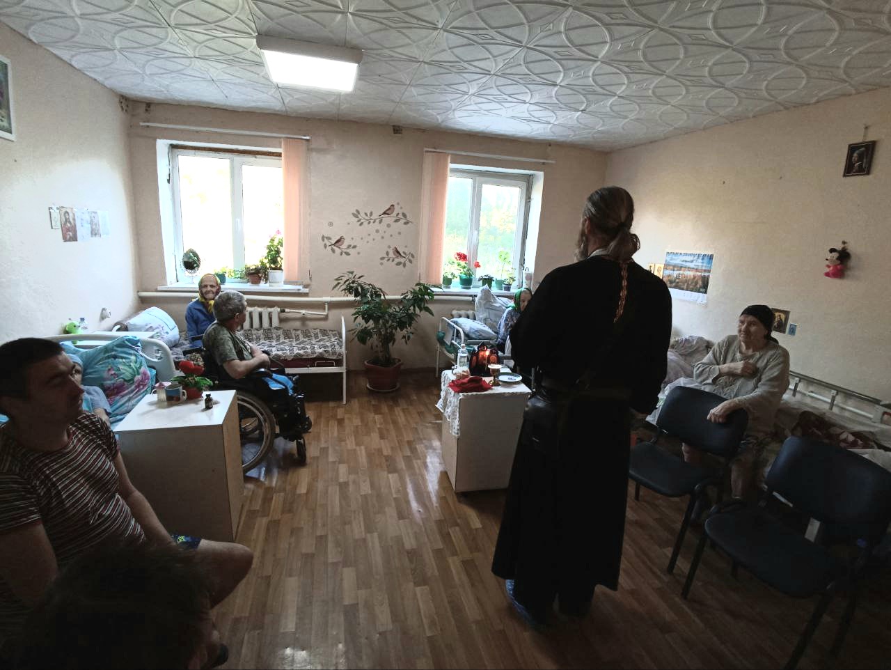 9 сентября приняли Причастие Святых Христовых Таин пожилые подопечные Епархиального Сестричества Милосердия в честь святой царицы Александры Феодоровны из Отделения сестринского ухода Козельской городской больницы в деревне Подборки.