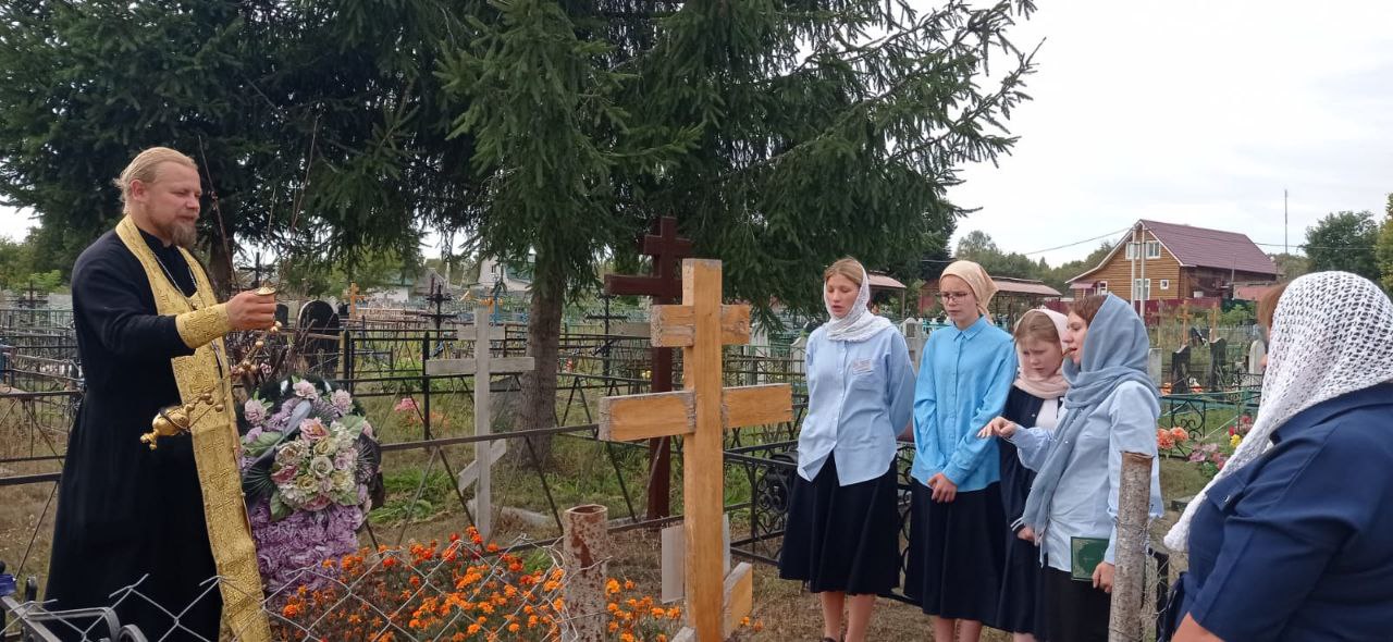 С началом учебного года, отметив День рождения Козельской православной гимназии, гимназисты с духовником иереем Сергием Барыкиным, директором Шмырёвой Т. Ю. и регентом Лисенковой С.Р. отслужили панихиду на могиле первого директора гимназии Безносовой Галины Лавровны. Без её титанических усилий и горячей веры не было бы в Козельске православной школы.
