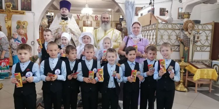 После молебна отец Алексий поздравил всех присутствующих с началом нового церковного года и пожелал светлой радости, крепости духовной и телесной, а детям подарил на молитвенную память иконочки и шоколадки.