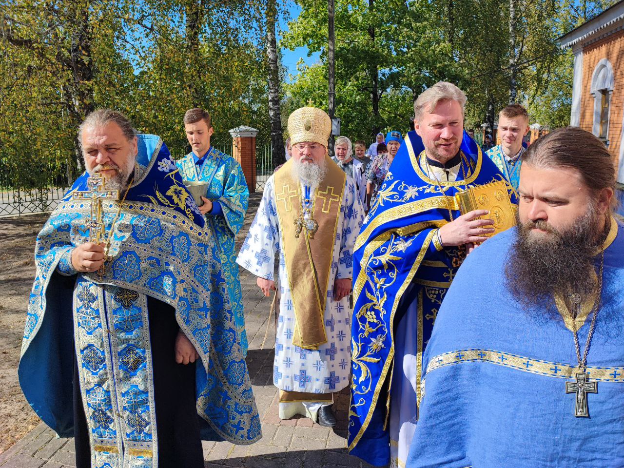 15 сентября. Неделя 12-я по Пятидесятнице. Калужской иконы Пресвятой Богородицы. Память благоверных князей Петра и Февронии Муромских. Епископ Козельский и Людиновский Никита совершил Божественную литургию в храме Калужской иконы Божией Матери поселка Еленский Хвастовичского района. Преосвященному владыке сослужили: протоиерей Александр Карпов – благочинный округа, протоиерей Антоний Хатунцев, иерей Павел Мещеряков – настоятель храма и диакон Евгений Ковригин. По отпусте литургии в храм собрались все клирики Хвастовичского благочиния и соборно совершили праздничный молебен и крестный ход вокруг храма, в завершении которого была вознесена молитва Царице Небесной. Также священнослужители совершили молитвословия благоверным князьям Петру и Февронии Муромским чудотворцам покровителям семьи и брака, а затем владыка обратился к богомольцам с архипастырским словом.