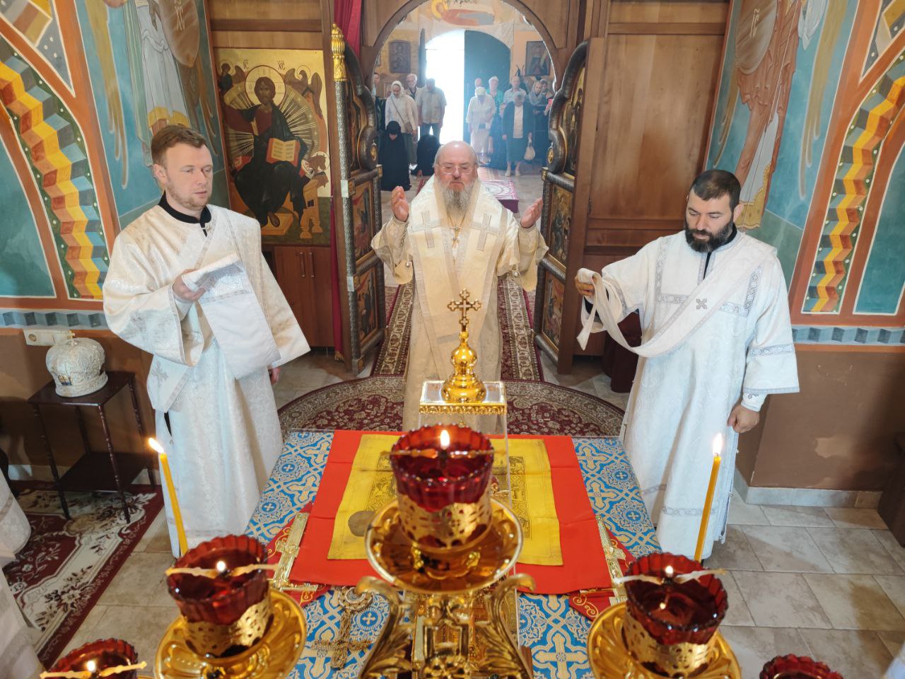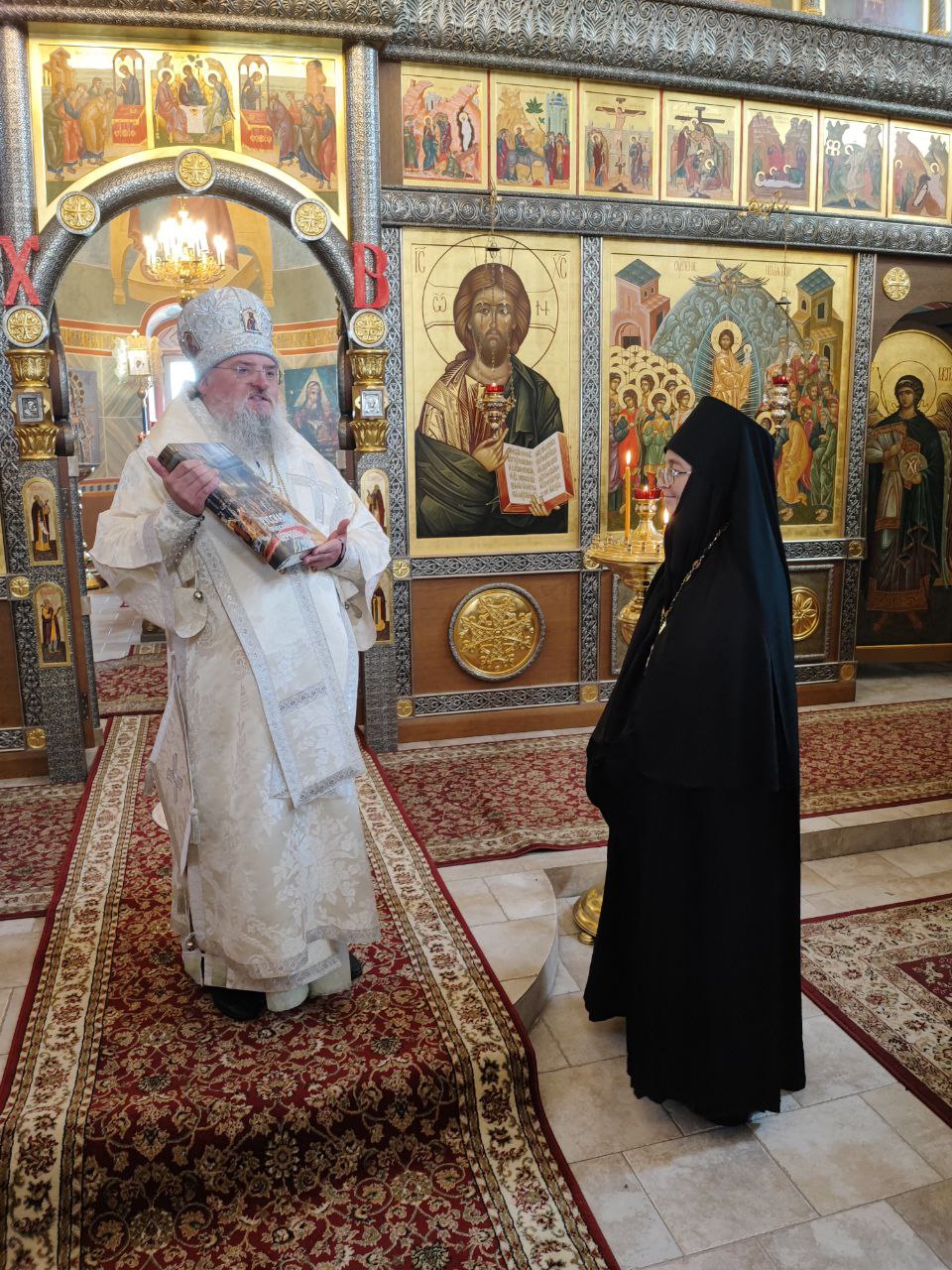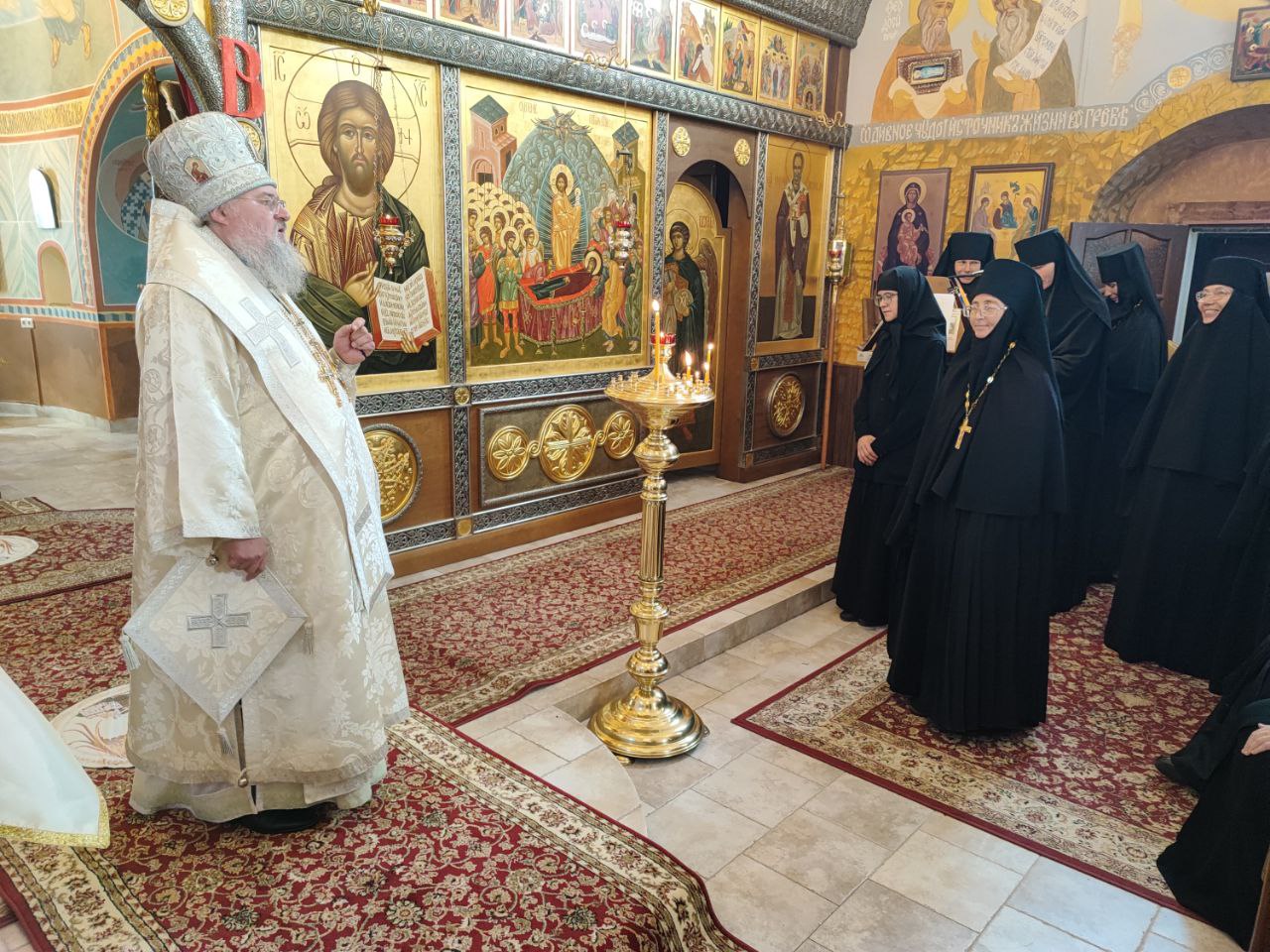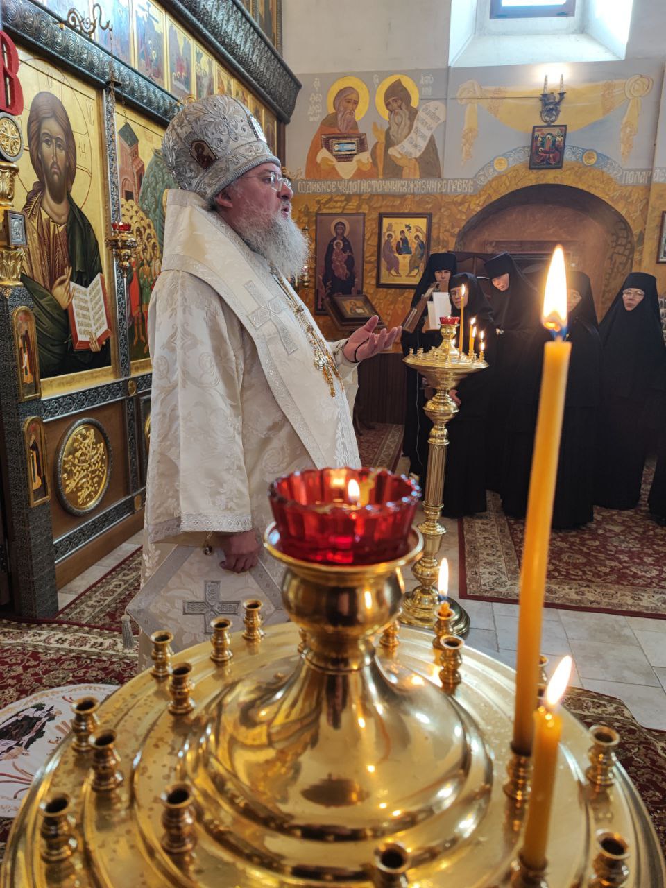Преосвященному владыке сослужили: протоиерей Антоний Хатунцев, иеромонах Савва (Петрушко)- благочинный округа, иерей Павел Жаров – клирик обители, диакон Евгений Ковригин и диакон Сергий Акопян.