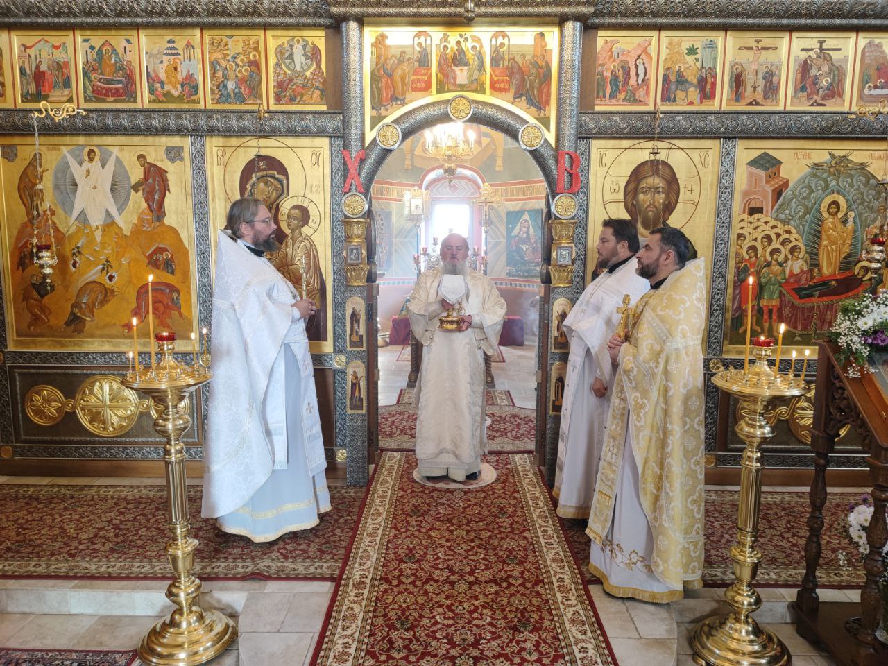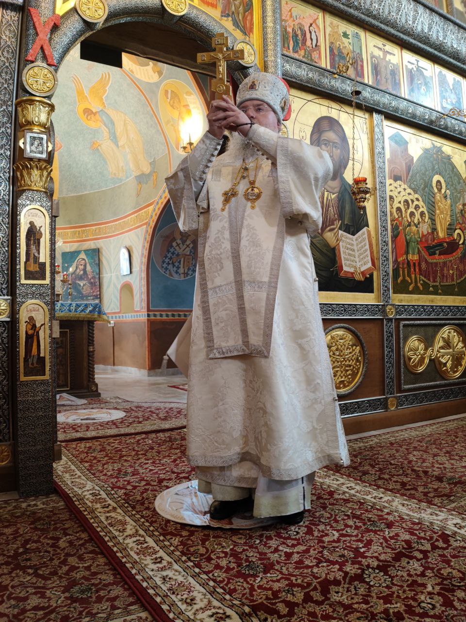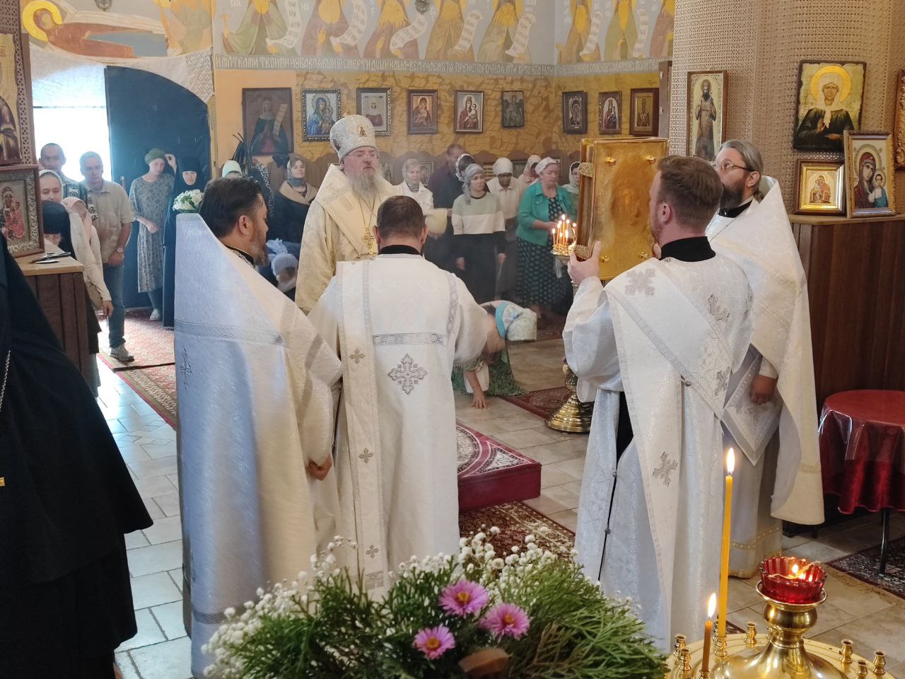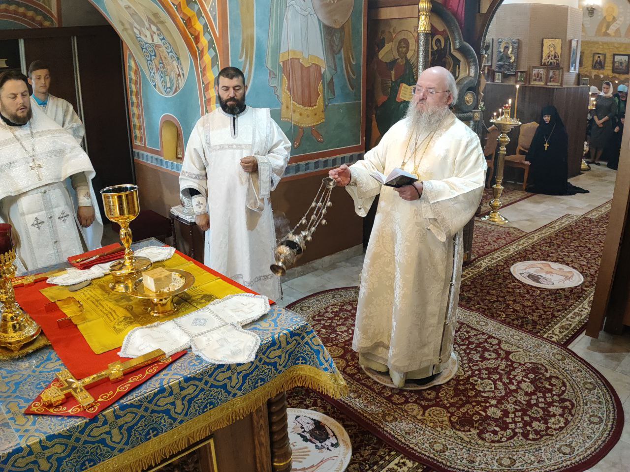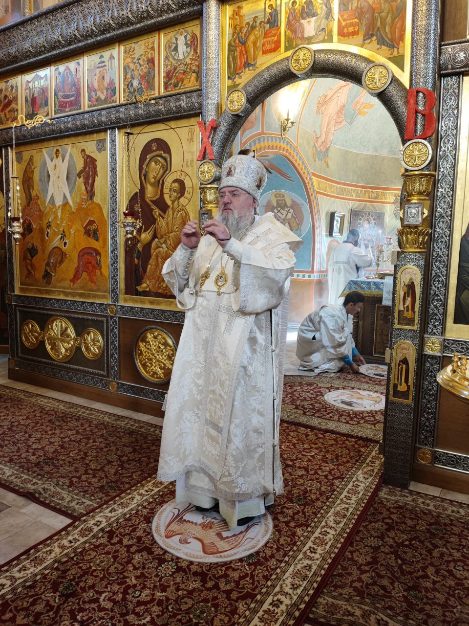 Преосвященному владыке сослужили: протоиерей Антоний Хатунцев, иеромонах Савва (Петрушко)- благочинный округа, иерей Павел Жаров – клирик обители, диакон Евгений Ковригин и диакон Сергий Акопян.