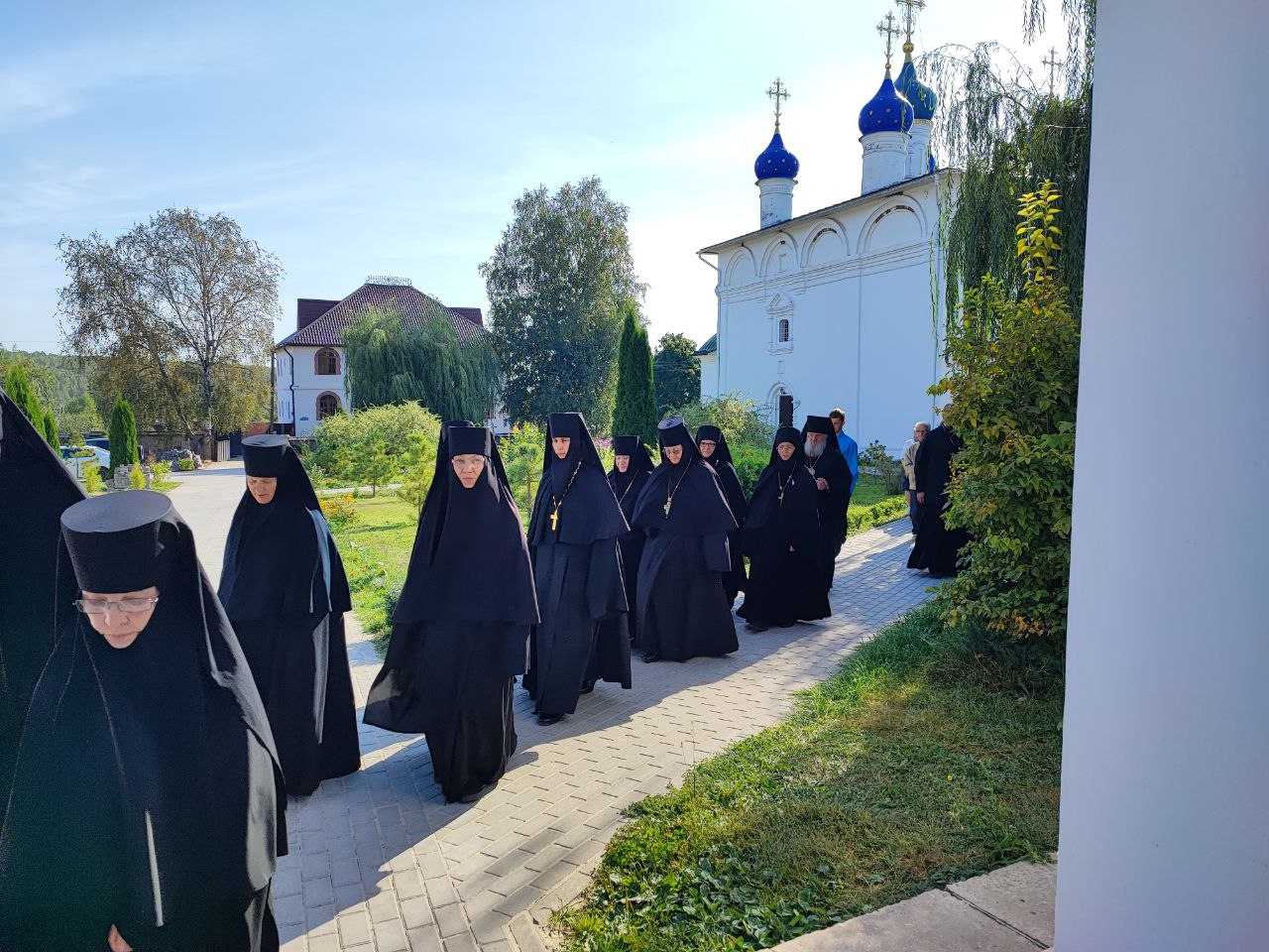 За богослужением молились: игумения обители Михаила (Осипова), игумения Анастасия (Мордмиллович) настоятельница Спасо-Преображенского Воротынского монастыря, игумения Нина (Схулухия) настоятельница Богородично-Рождественского Ильинского монастыря города Тюмени, игумения монастыря в честь Калужского образа Божией Матери в городе Калуге Параскева (Ляхова), игумения Калужского Казанского монастыря Ангелина (Петрова), игумения монастыря святых Жен Мироносиц в селе Клыково Козельской епархии Иоанна (Павлова), исполняющая обязанности игумении Успенской Феклиной пустыни Козельской епархии монахиня Николая (Александрова), старшая сестра женского Успенского Шаровкина монастыря монахиня Елисавета (Воробьева), старшая сестра женской монашеской общины возрождающегося Вознесенского женского монастыря города Козельска монахиня Вероника (Абрамова) с сестрами своих обителей, многочисленными прихожане и гости монастыря.