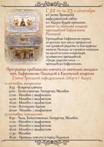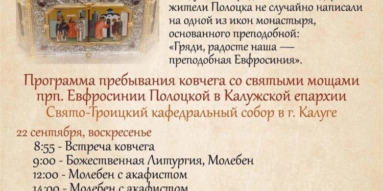 В Калугу будет принесен ковчег со святыми мощами преподобной Ефросинии Полоцкой