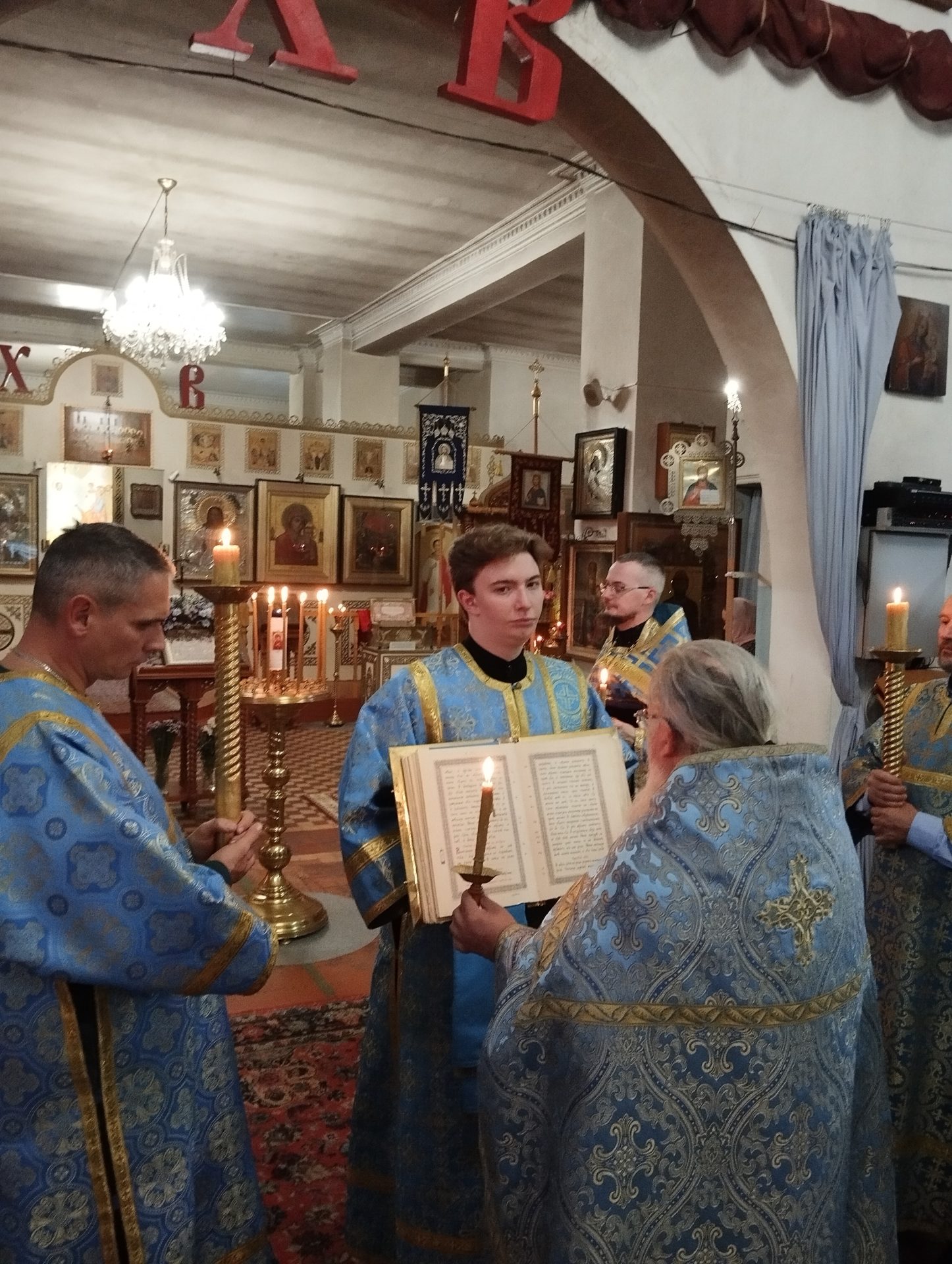 В канун праздника Рождества Пресвятой Владычицы нашей Богородицы и Приснодевы Марии, 20 сентября 2024 года, в Казанском кафедральном соборе города Людиново было совершено всенощное бдение с литией, которое возглавил настоятель собора протоиерей Алексий Жиганов в сослужении клириков храма иерея Алексия Сначёва и диаконов Андрея Соколова и Никиты Агарёва.