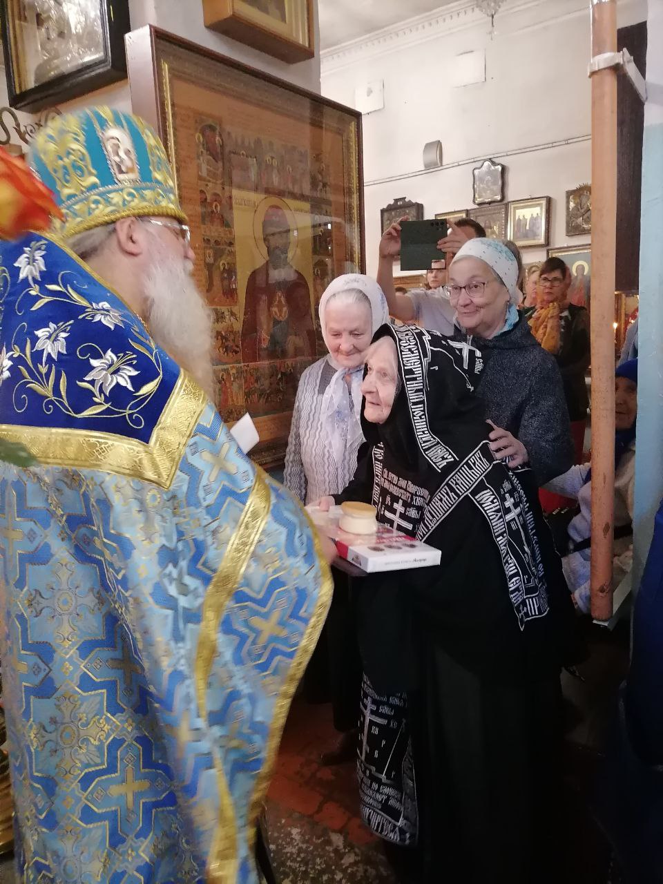 В этот же день отец Алексий поздравил старейшую прихожанку Казанского собора схимонахиню Рахиль (Сначёву) с днем рождения. Своим жизнелюбием и стойкостью в Вере Христовой мать Рахиль, в свои 92 года, служит примером всем прихожанам. Все молящиеся вместе со священнослужителями и церковным хором пропели имениннице многая благая лета! Отец Алексий в завершении пожелал всем прихожанам заступничества Царицы Небесной и Божьего благословения!