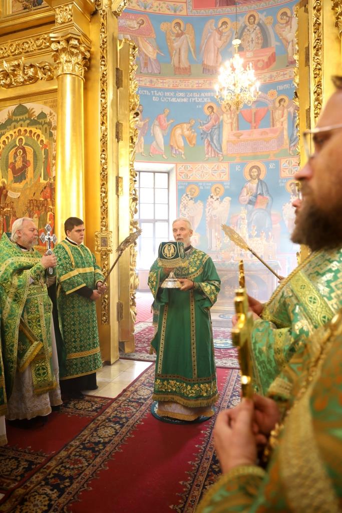 Преосвященным архипастырям сослужили протоиерей Андрей Богомолов – благочинный Первого Калужского благочиния, ректор Калужского духовного училища — протоиерей Иоанн Паюл, проректор Калужской духовной семинарии по учебной работе протоиерей Сергий Третьяков, протоиерей Андрей Безбородов, протоиерей Антоний Хатунцев, иерей Кирилл Хланта, иерей Евгений Смольянинов, иеромонах Иоанн (Король), иеромонах Серафим (Попков), иеромонах Алексий (Щукин), протодиакон Сергий Комаров и диакон Максим Тихоцкий.