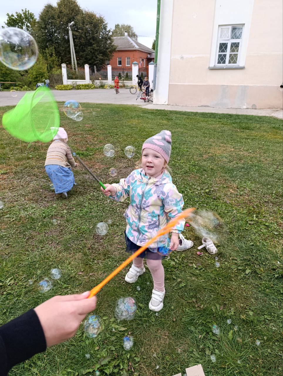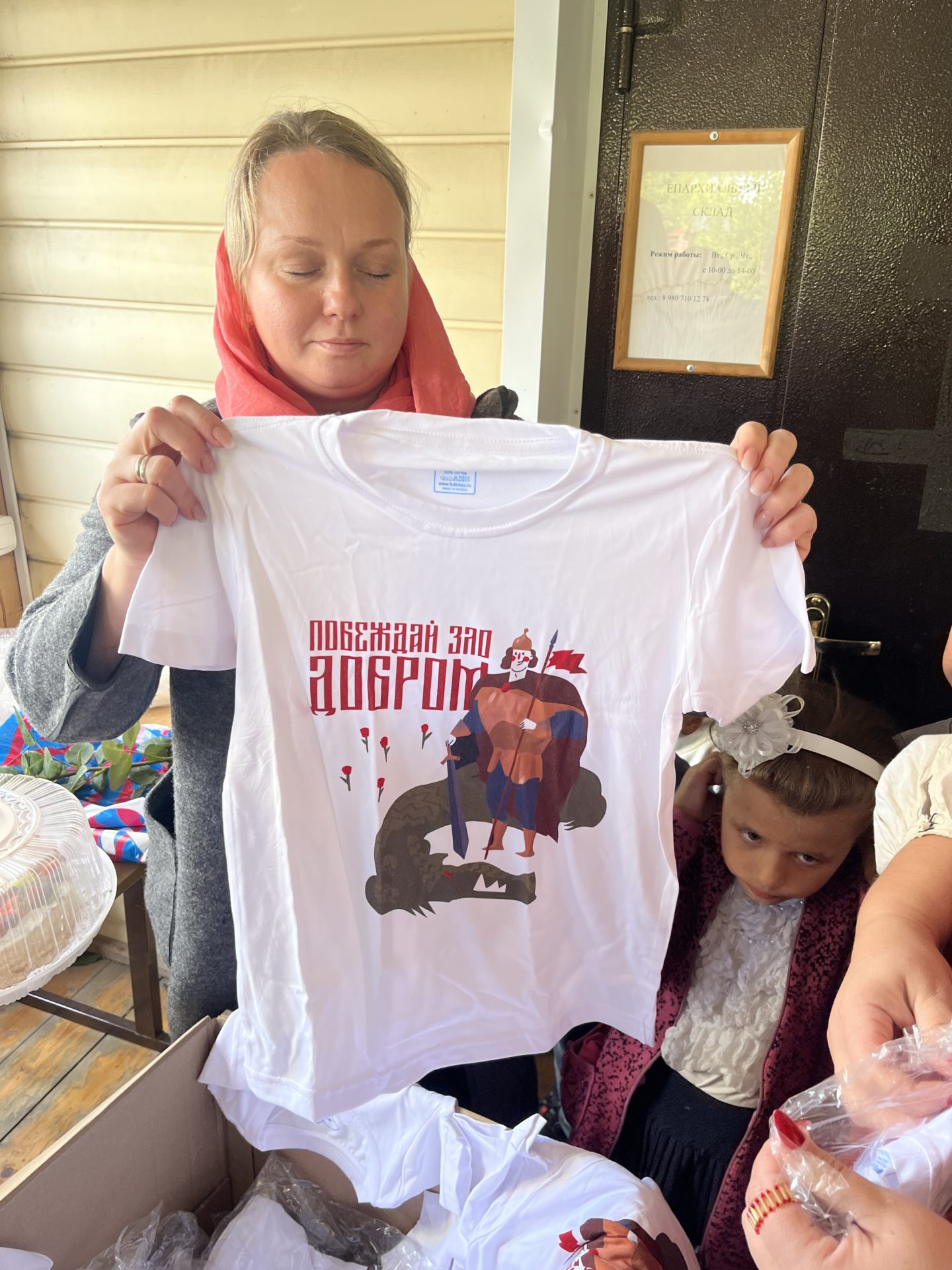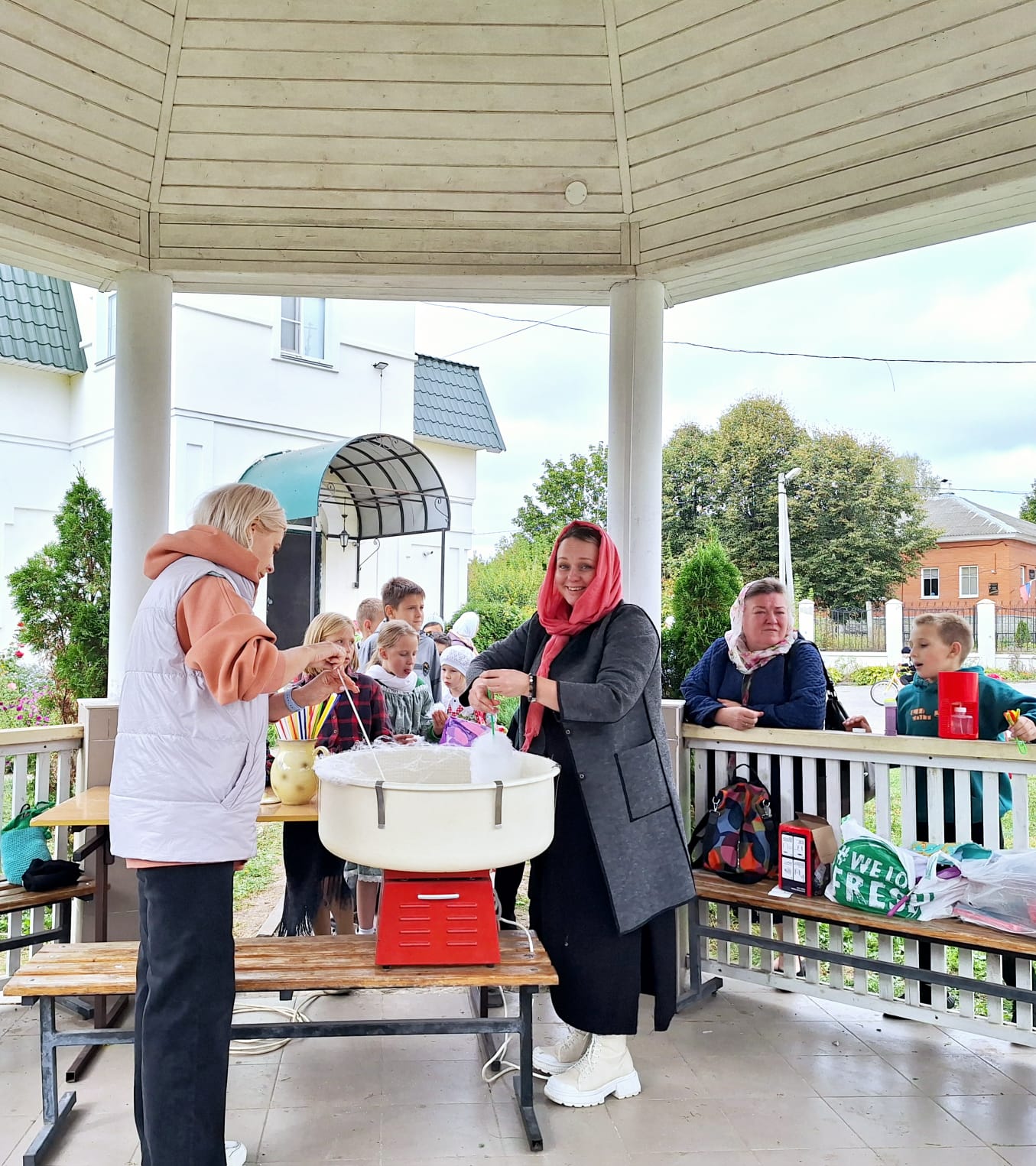 Для детей были организованны различные игры и конкурсы. Сладкая вата, мыльные пузыри всё это стало украшением праздника и радостью для детей. Эксклюзивно для детей прихода был разработан дизайн футболок с рисунком для мальчиков и для девочек, который напоминает о том, что надо побеждать добром. Дети были рады такому подарку. Старшие дети выступали в роли фотографов на мероприятии. Также техническая организация праздника была осуществлена силами старших детей – волонтеров. Руководитель приходского проекта «мамина кладовка» Юлия Николаевна подготовила вещи, обувь, канцелярию для раздачи детям и взрослым.