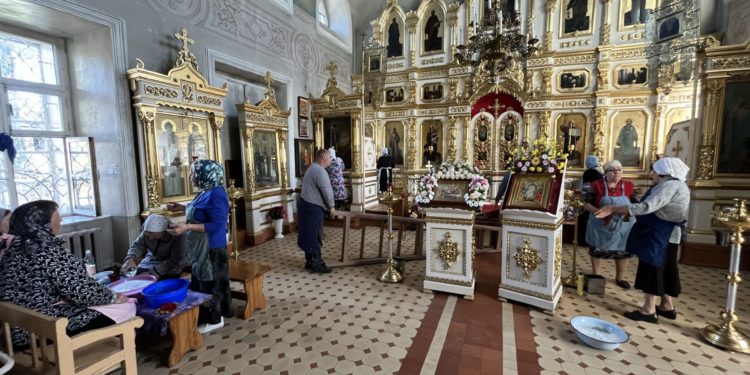 Подготовка к празднику Воздвижения Креста Господня в Благовещенском приходе города Козельска
