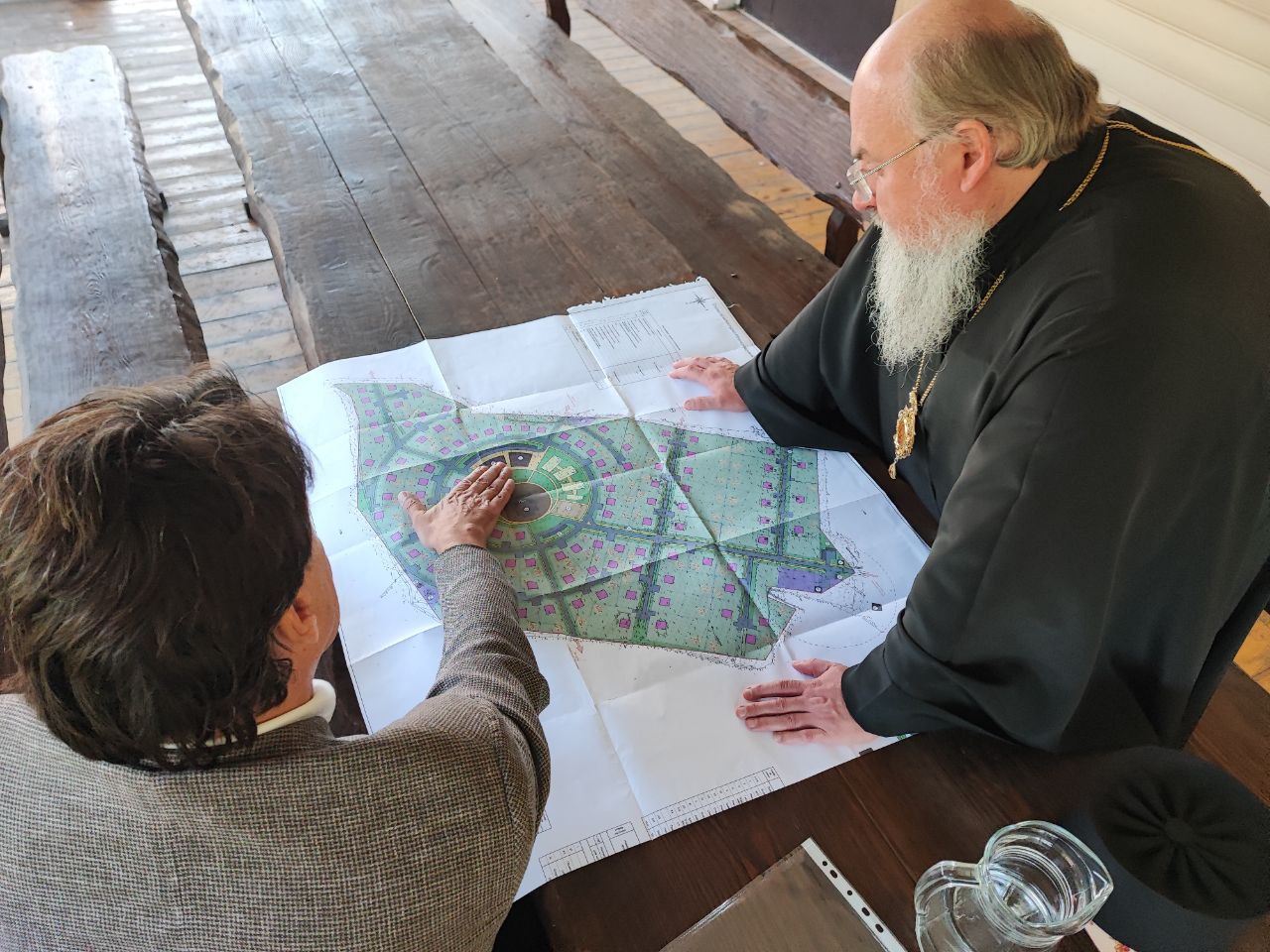 25 сентября в Козельском епархиальном управлении состоялась встреча епископа Козельского и Людиновского Никиты и руководителя проекта сельского поселения Спасово близ мужского монастыря Спаса Нерукотворного пустынь Вадимом Юрьевичем Моховым. На встрече обсуждались вопросы дальнейшего развития поселения и строительство в нем  православного храма.