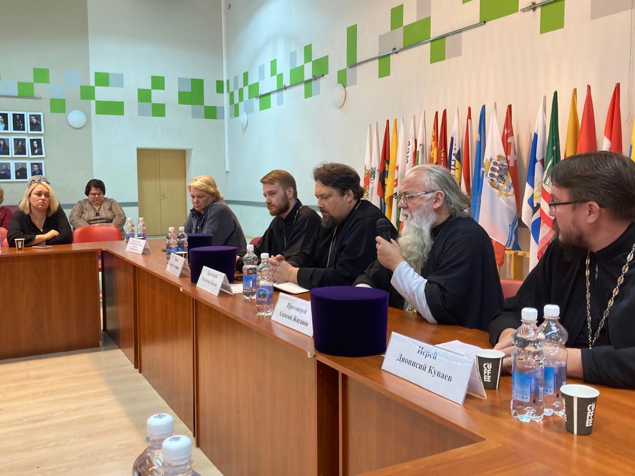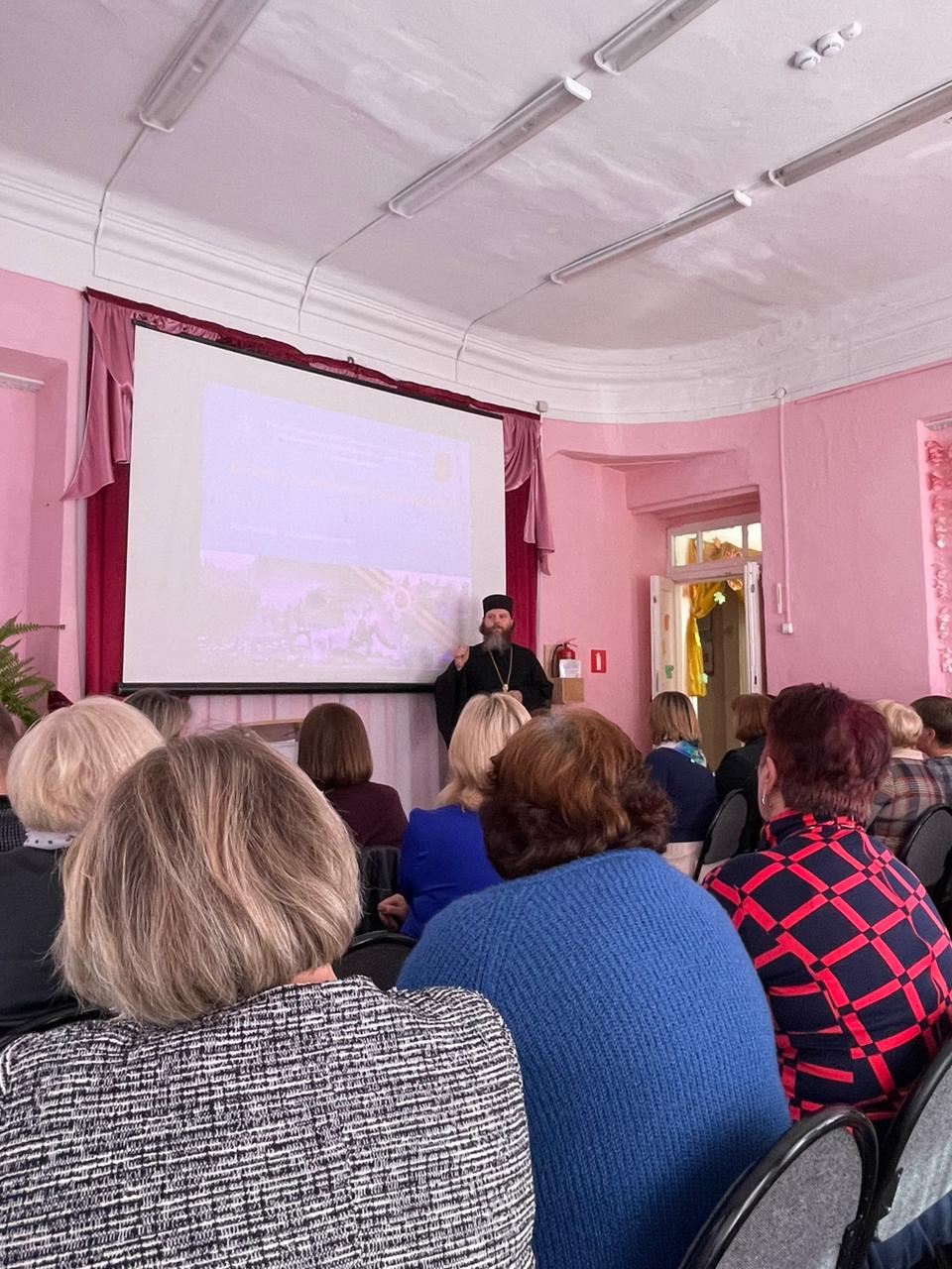 На второй дискуссионной площадке прошёл методический семинар «Воспитательный ресурс памяти о Великой Победе и осмысления духовного опыта поколений», здесь ведущая секции Людмила Мартьянова подробно раскрыла данную тему, сопровождая свой рассказ показом слайдов. На секции присутствовали учителя ОПК, историки, литераторы, священнослужители.