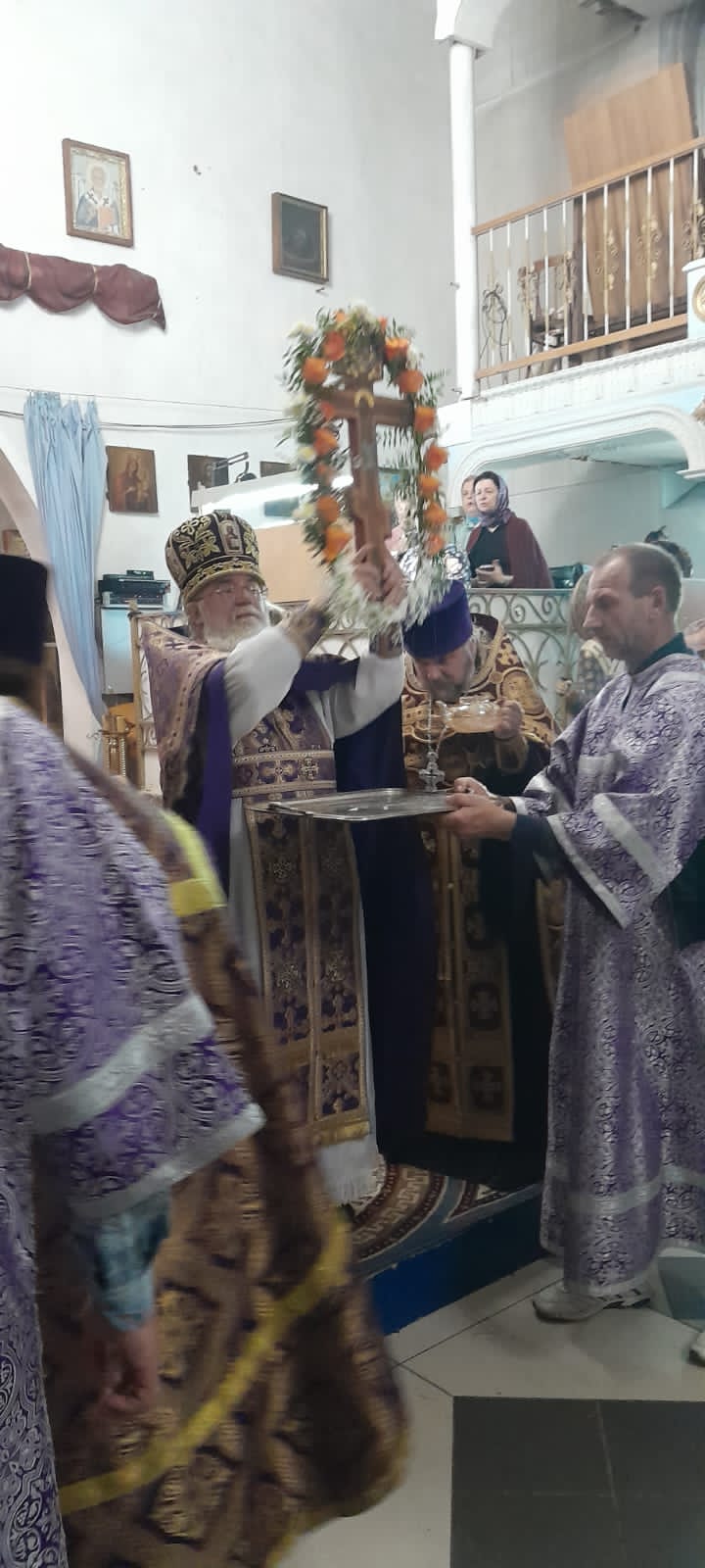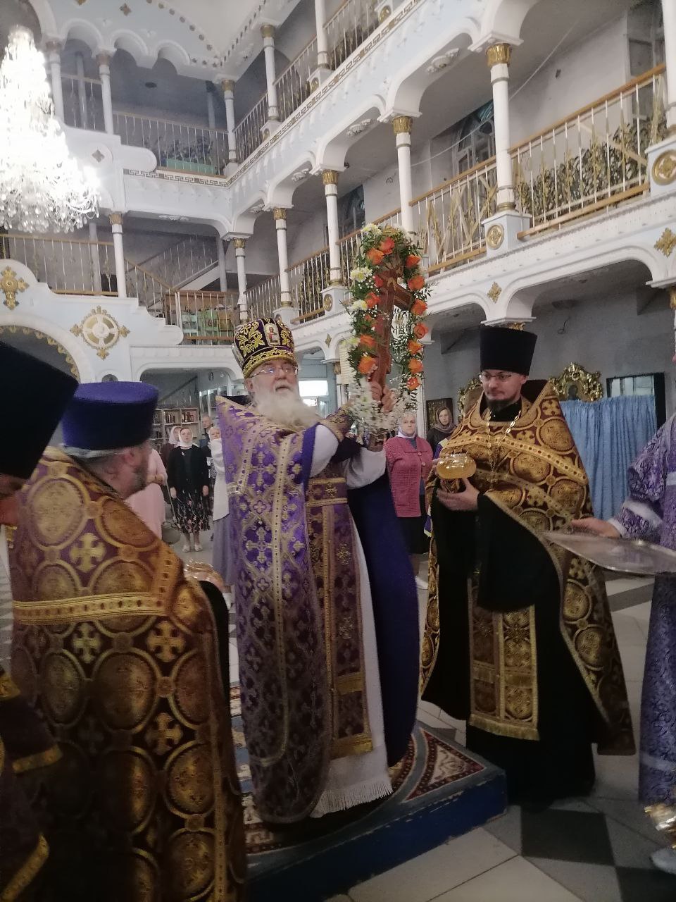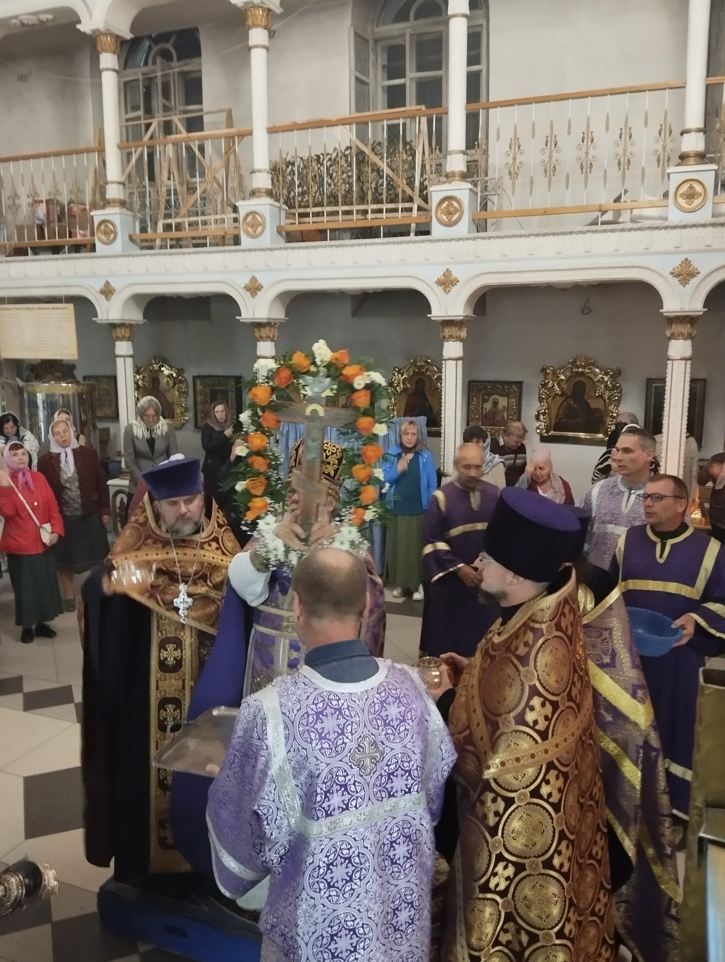 После чина Воздвижения Крест был положен на центральный аналой. Священнослужители и все молящиеся прихожане, совершив три земных поклона перед святым Крестом, приложившись ко Кресту, подошли под помазание святым елеем.