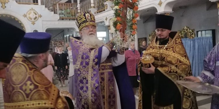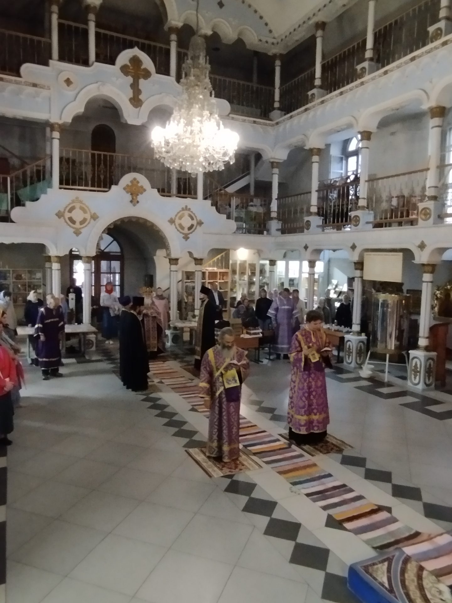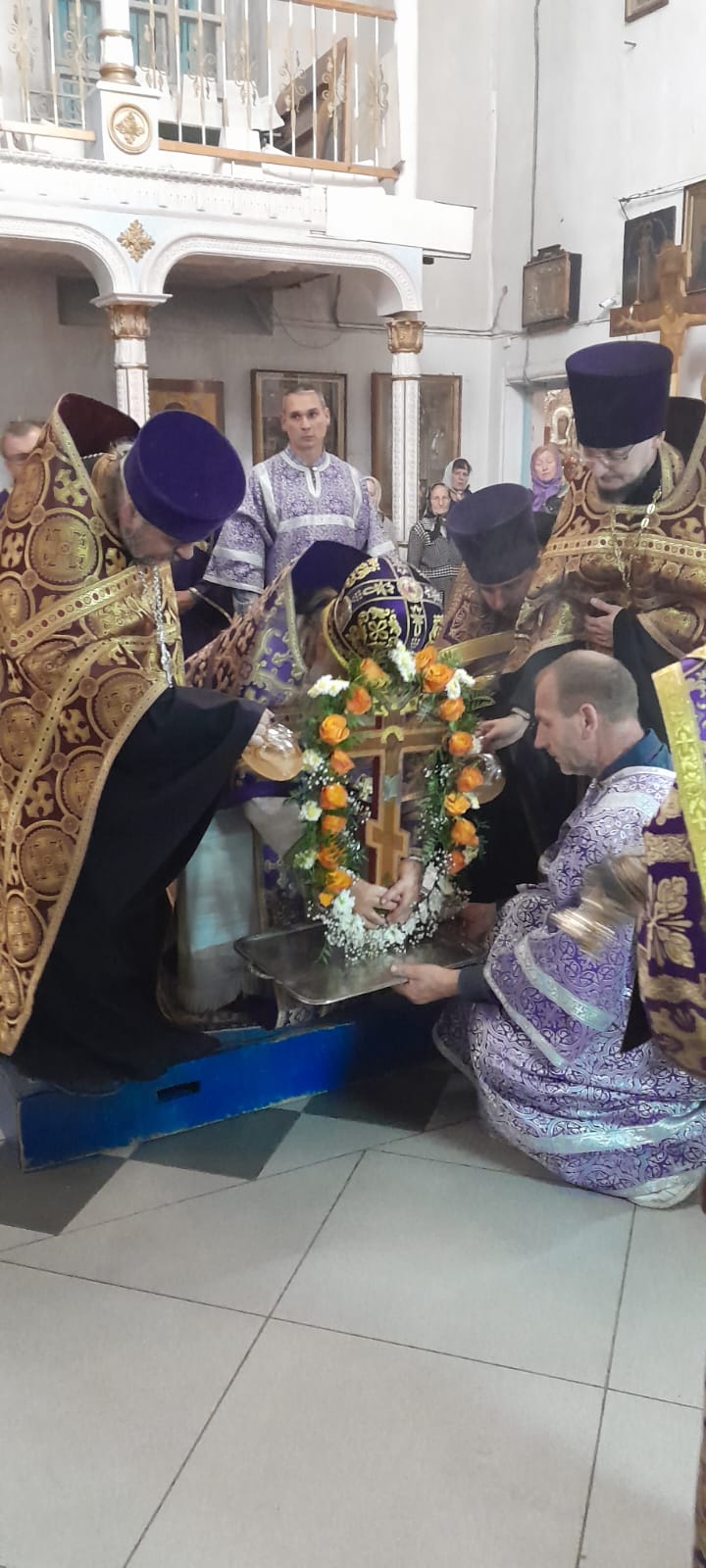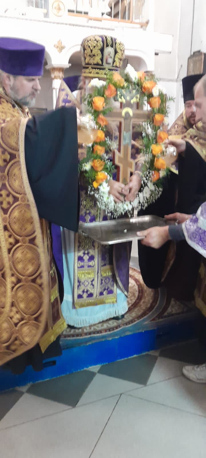 После чина Воздвижения Крест был положен на центральный аналой. Священнослужители и все молящиеся прихожане, совершив три земных поклона перед святым Крестом, приложившись ко Кресту, подошли под помазание святым елеем.