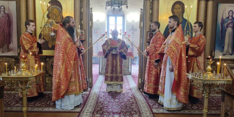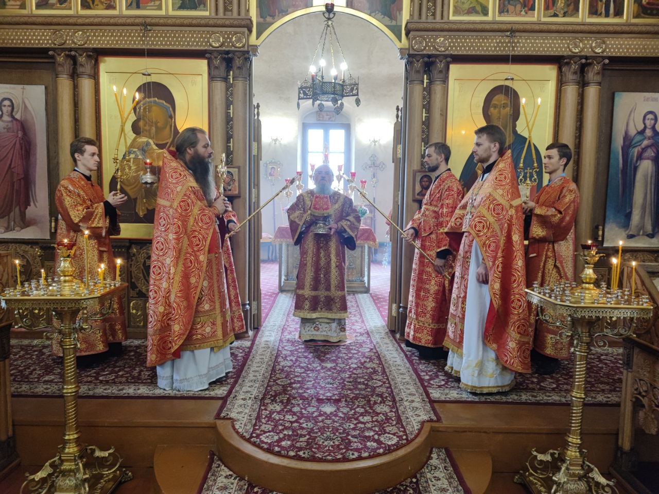 Архипастырю сослужили: иерей Елисей Тимофеев, иерей Евгений Чуркин, диакон Евгений Ковригин и диакон Дмитрий Лутков.