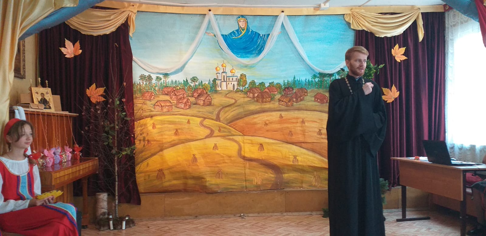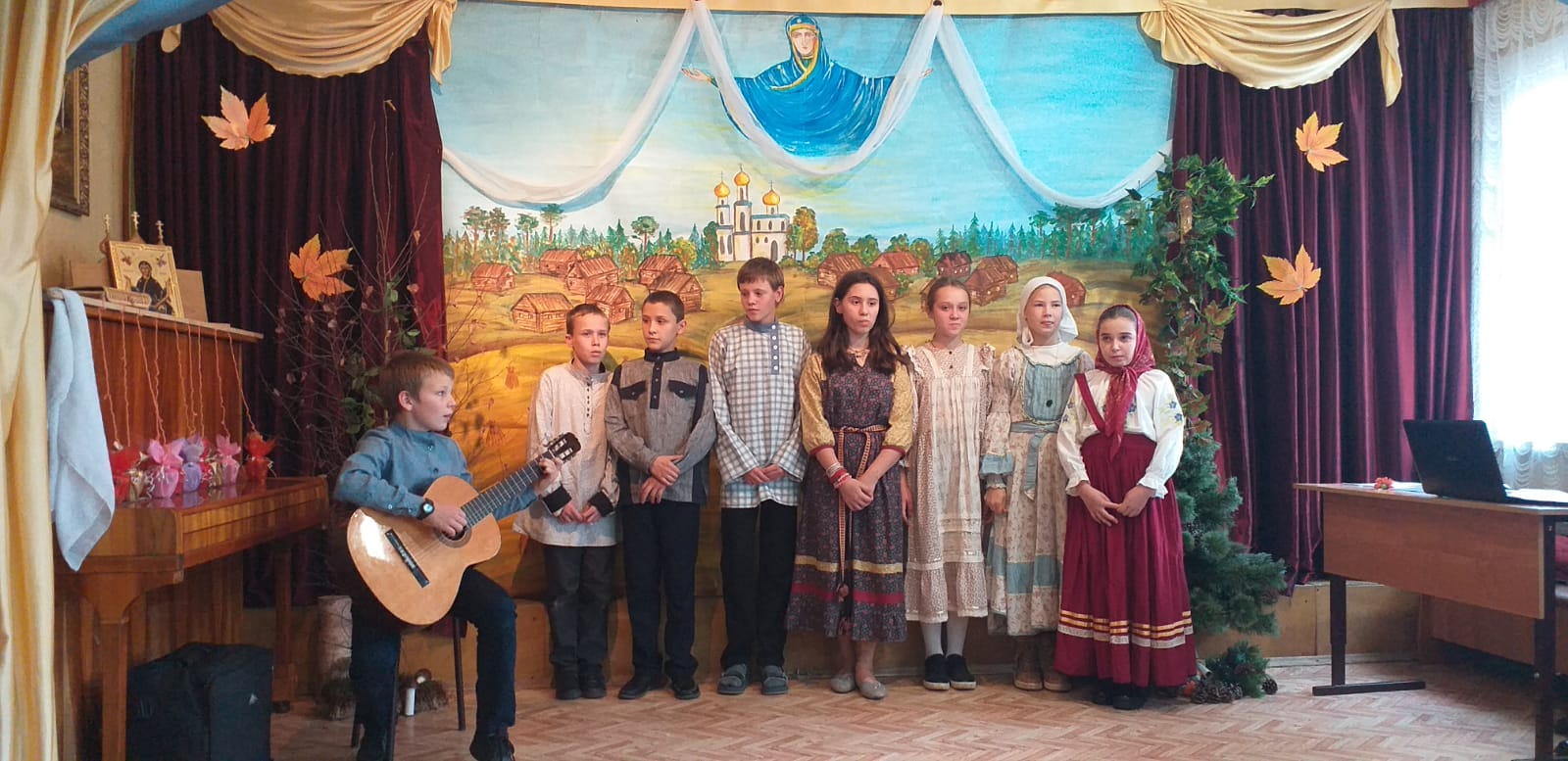 12 октября в Детском центре «Возрождение» города Козельска прошло мероприятие «Посиделки на Покров». С приветственным словом к гостям обратился священник Елисей Тимофеев, клирик Успенского кафедрального собора. Встреча прошла в теплой веселой атмосфере.  Дети познакомились с историей праздника Покрова Пресвятой Богородицы, с обычаями и играми, связанными с праздником. Воспитанники Театральной студии «Образ» под руководством Букановой Лидии Ильиничны представили гостям сказочную постановку. Своими выступлениями всех порадовали ансамбль «Путь-дороженька» Русской классической школы (руководитель Дикарева Евгения Александровна) и Танцевальный коллектив «Сударушка» Средней общеобразовательной школы села Нижние Прыски (руководитель Кондрашова Ирина Михайловна). По традиции в конце праздника всех ребят ожидало чаепитие с пирогами.