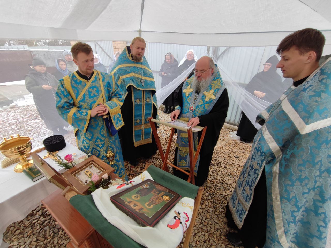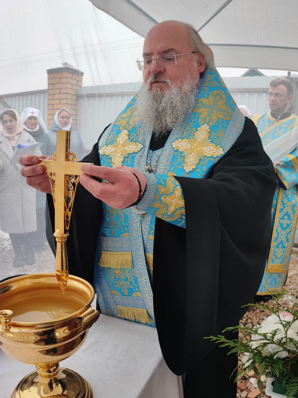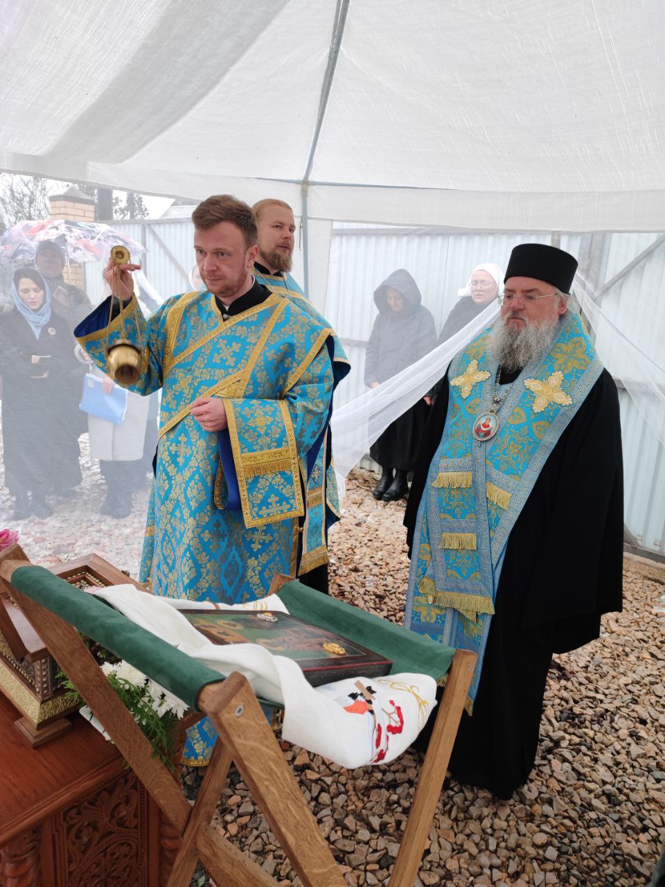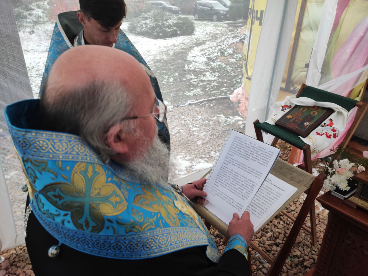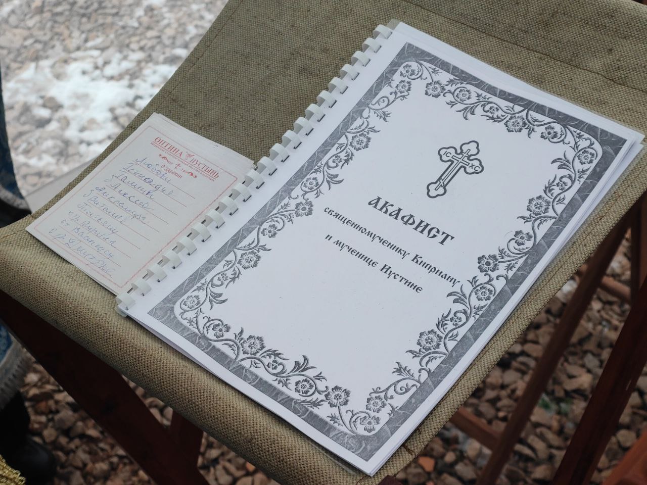 Епископ Никита совершил молебен с акафистом мученикам Киприану и Иустинии у строящейся часовни в городе Козельске