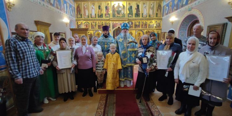 Благодарственное письмо архипастырь вручил Дороничкиной Жанне Михайловне – певчей храма.