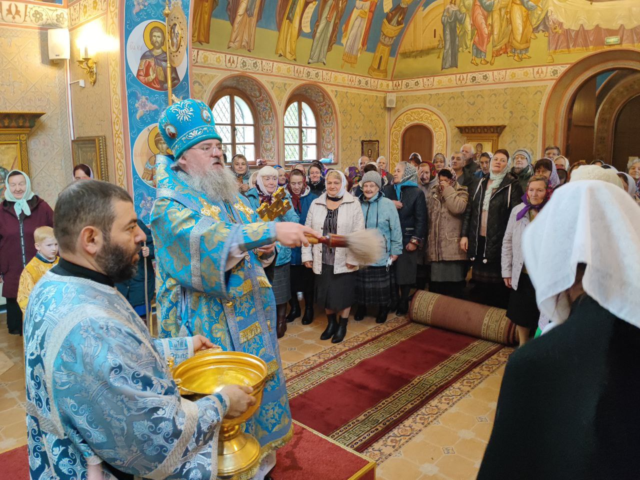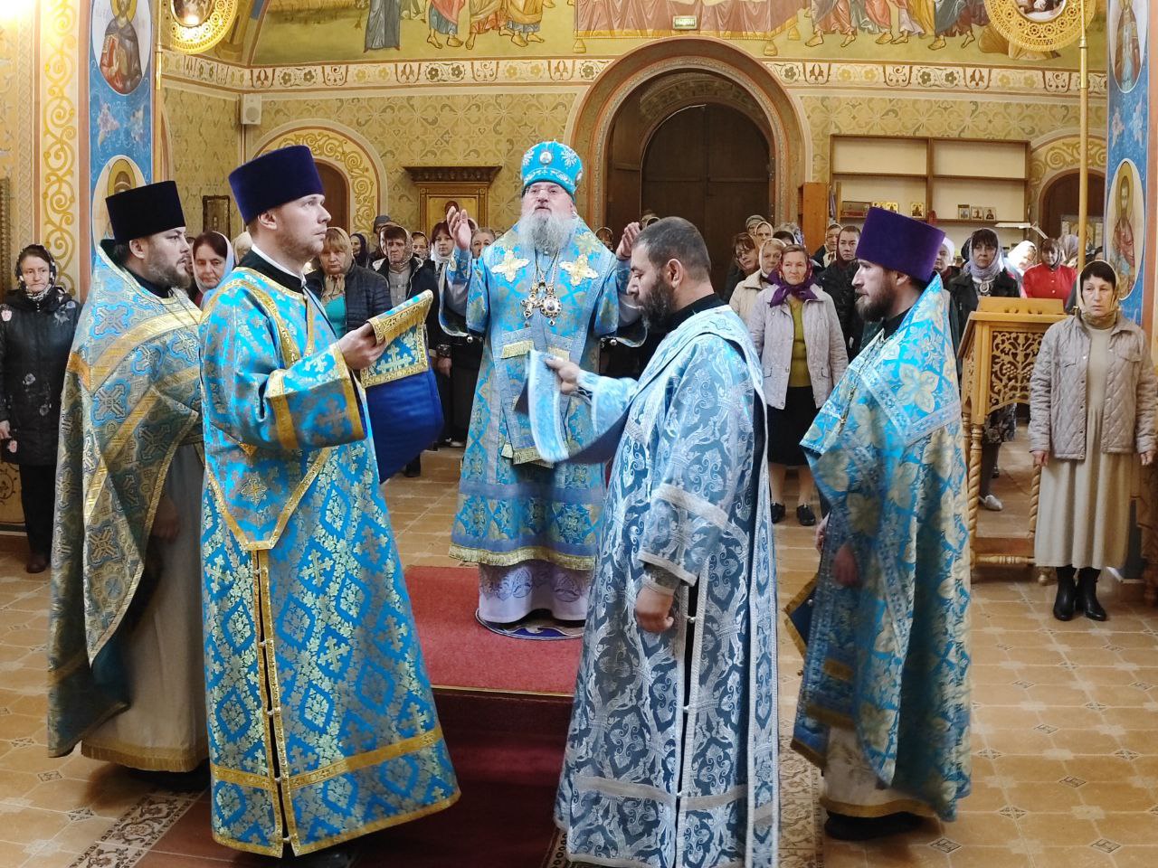 14 октября. Покров Пресвятой Богородицы. Епископ Козельский и Людиновский Никита возглавил служение Божественной литургии в Покровском храме села Красное Хвастовичского района. Его Преосвященству сослужили: протоиерей Антоний Хатунцев, иерей Георгий Махаринец — настоятель прихода, диакон Евгений Ковригин и диакон Сергий Акопян. На литургии были вознесены особые прошения и молитва о Святой Руси. По благословению Святейшего Патриарха Московского и всея Руси Кирилла эта сугубая молитва совершается во всех храмах Русской Православной Церкви за каждым богослужением. По окончании литургии состоялся праздничный молебен, в завершении которого, вознеся молитву Преблагословенной Деве Богородице, владыка обратился к богомольцам с проповедью. Во внимание к усердным трудам во славу Святой Церкви ряд прихожан были удостоены церковных наград.