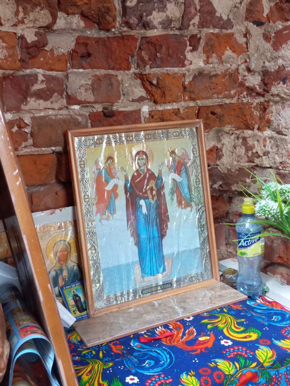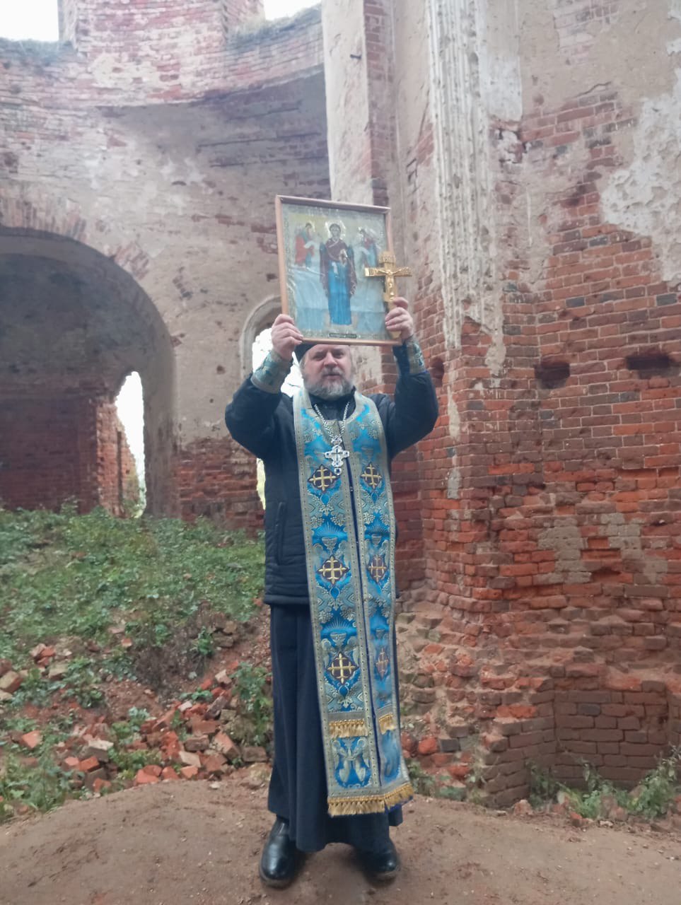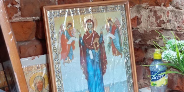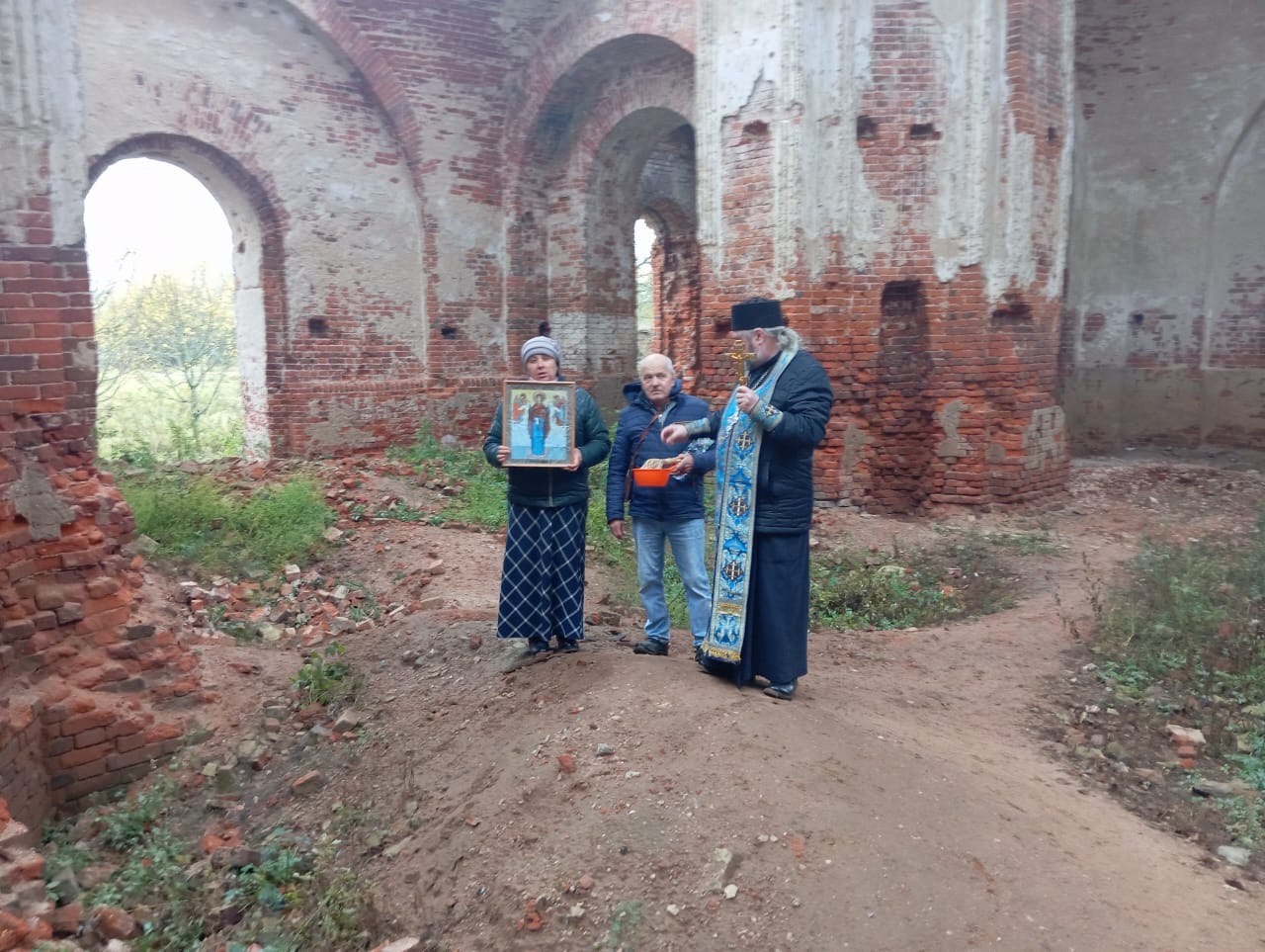 14 октября, в праздник Покрова Пресвятой Богородицы, настоятель храма праведного Лазаря Четверодневного города Людиново протоиерей Михаил Карпенко, по уже сложившейся ежегодной традиции, совершил молебен в разрушенном храме в деревне Космачево Людиновского района. После совершения молебна, отец Михаил совершил кропление святой водой храма и молящихся.