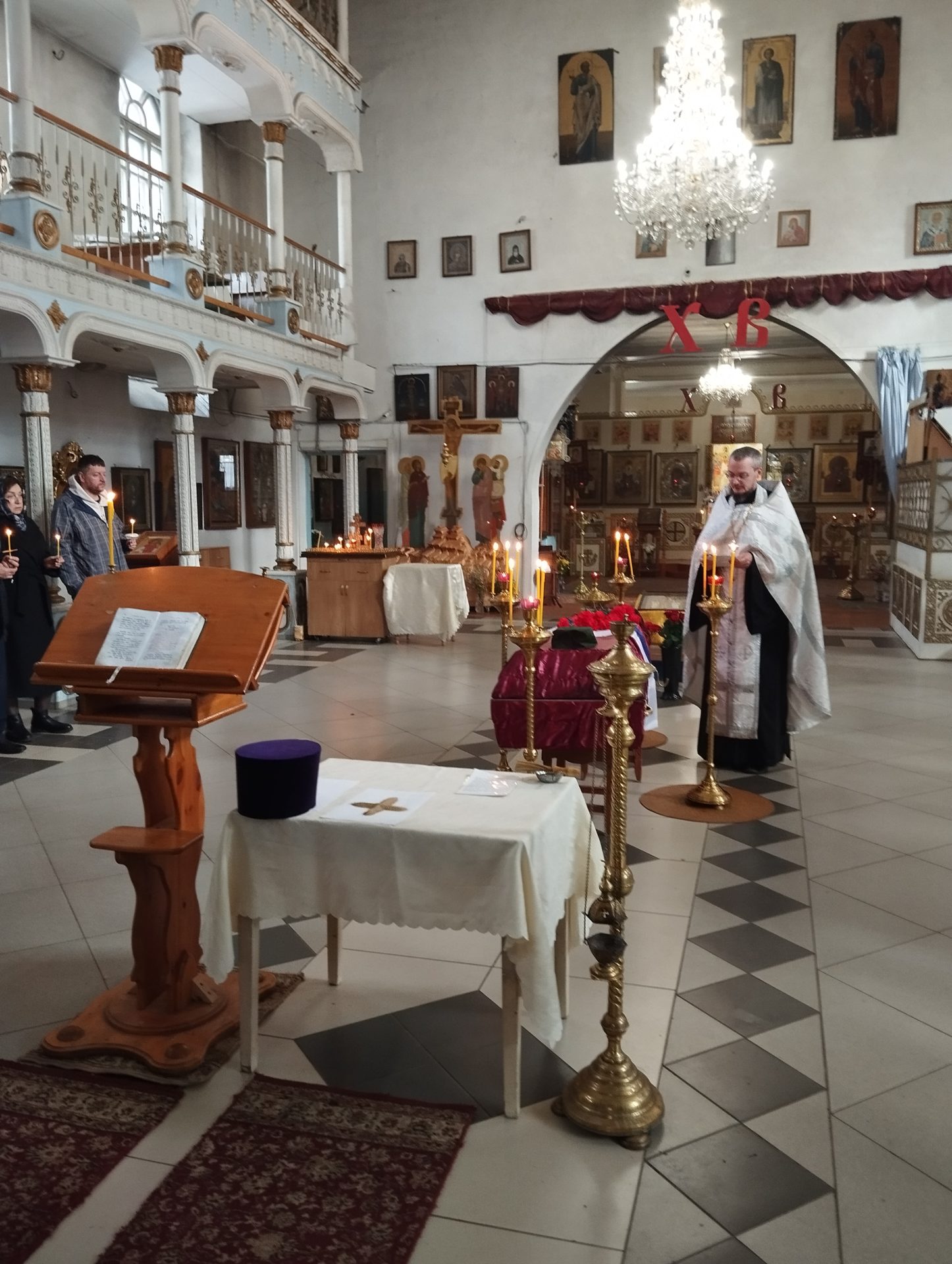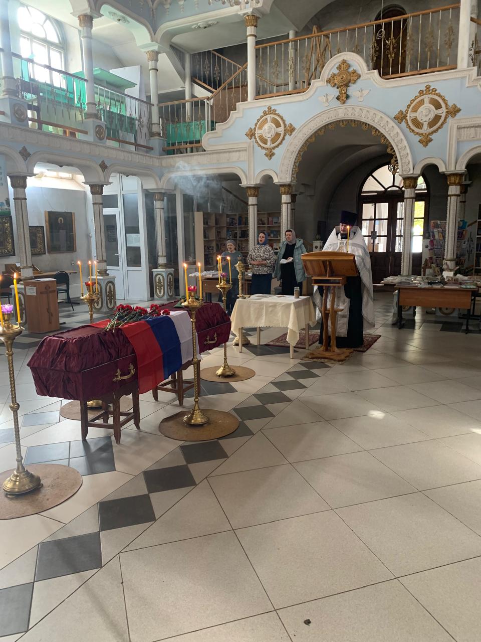 Отпевание погибшего воина в Казанском соборе города Людиново