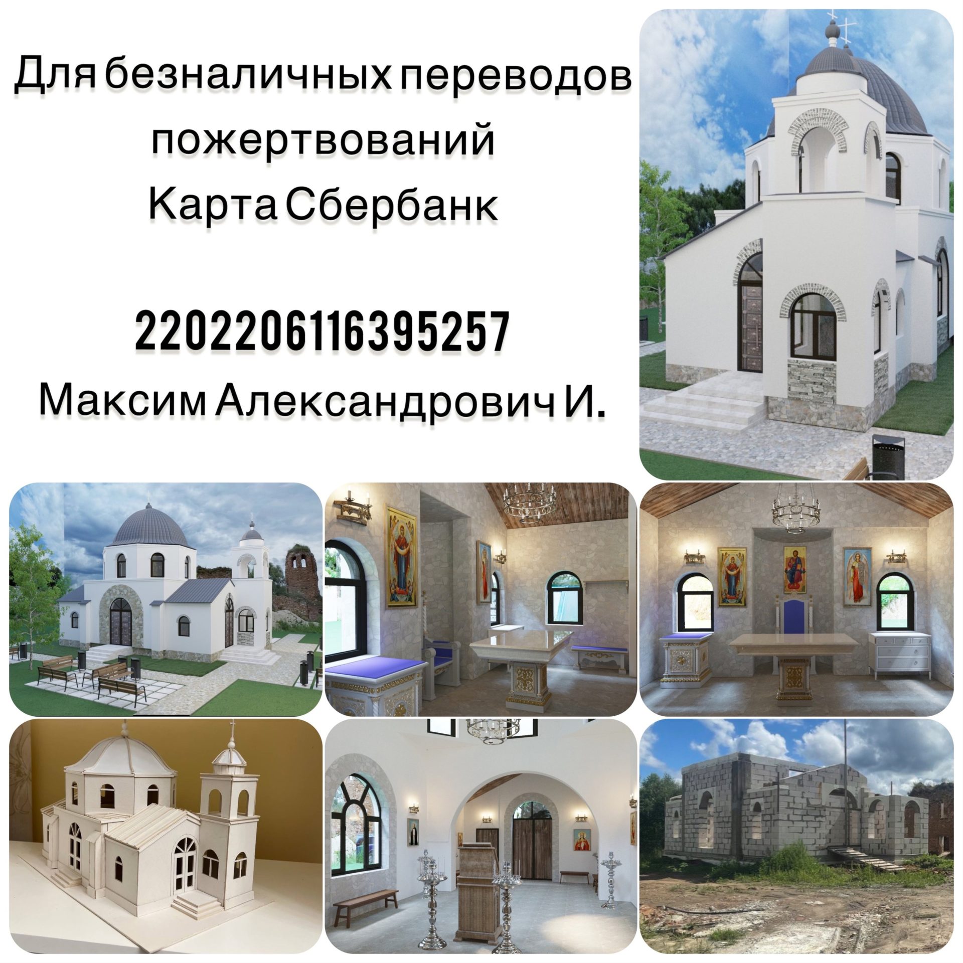 Каждый может принять участие в этом благом и Богу угодном деле. За всех благодетелей возноситься молитва перед престолом Божиим. Пожертвовать можно по номеру банковской карты 2202206116395257