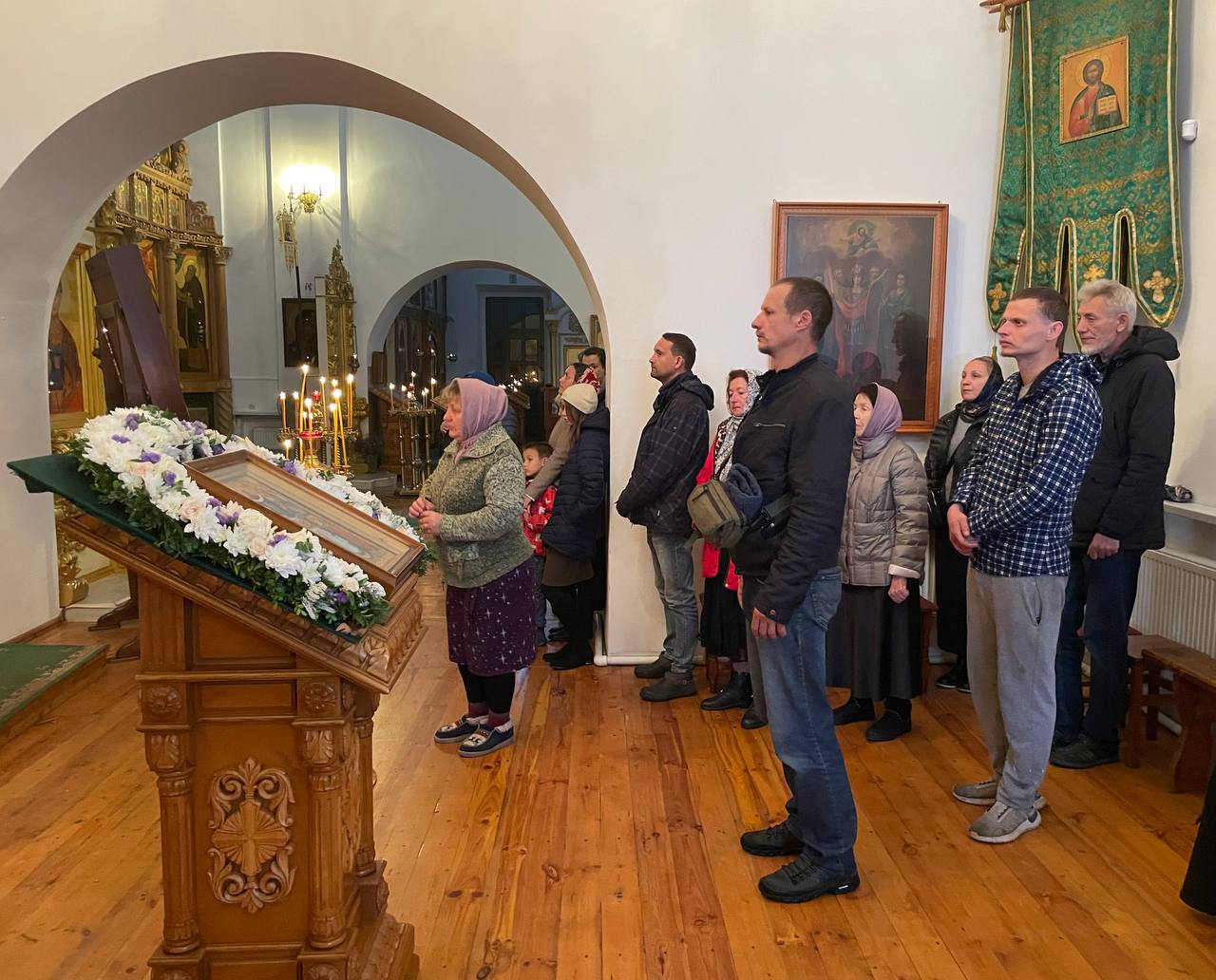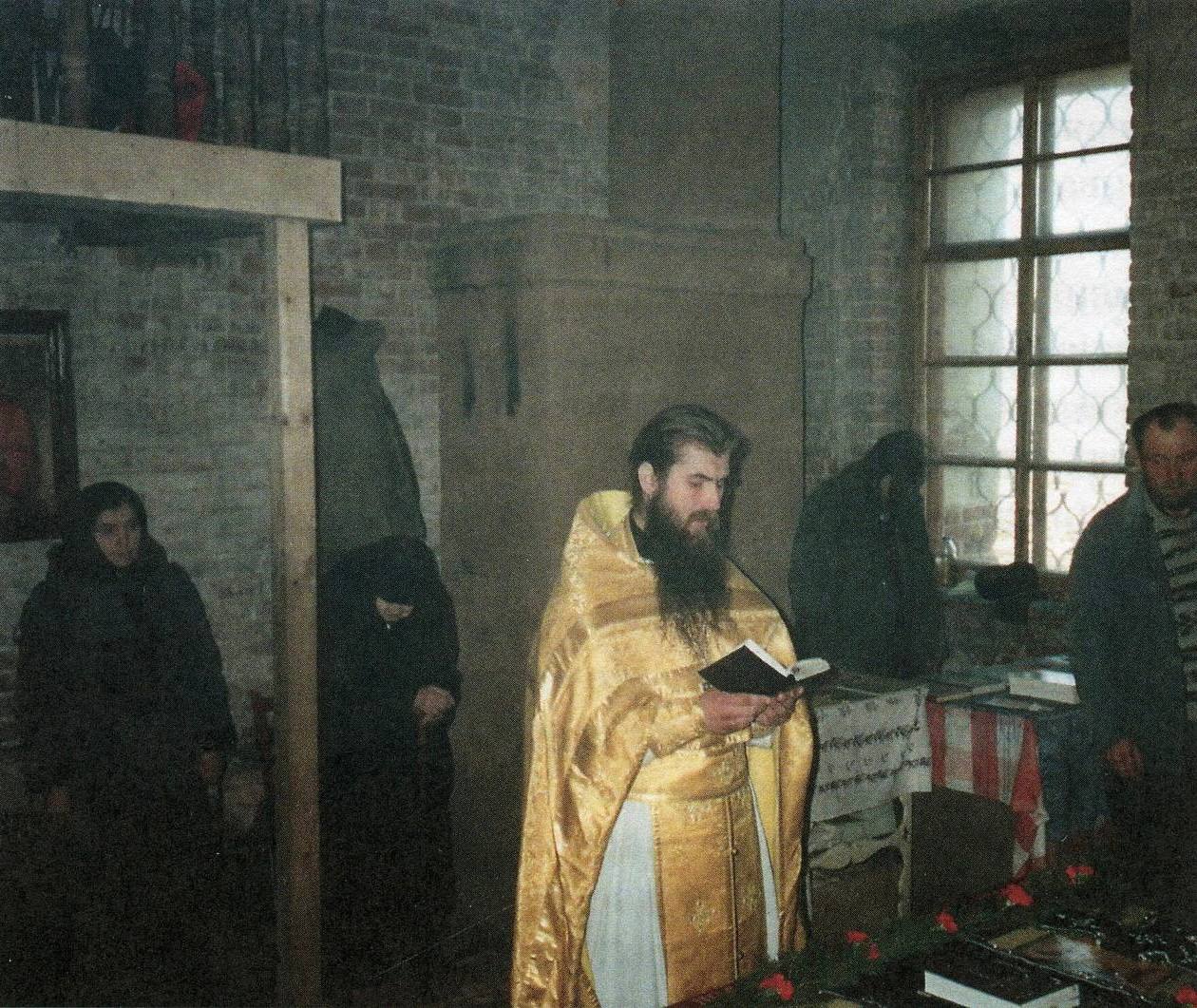 После запричастного стиха, отец Михаил обратился к прихожанам с проповедью, в которой рассказал о первых годах восстановления Спасского храма, и служении в Покровском пределе.