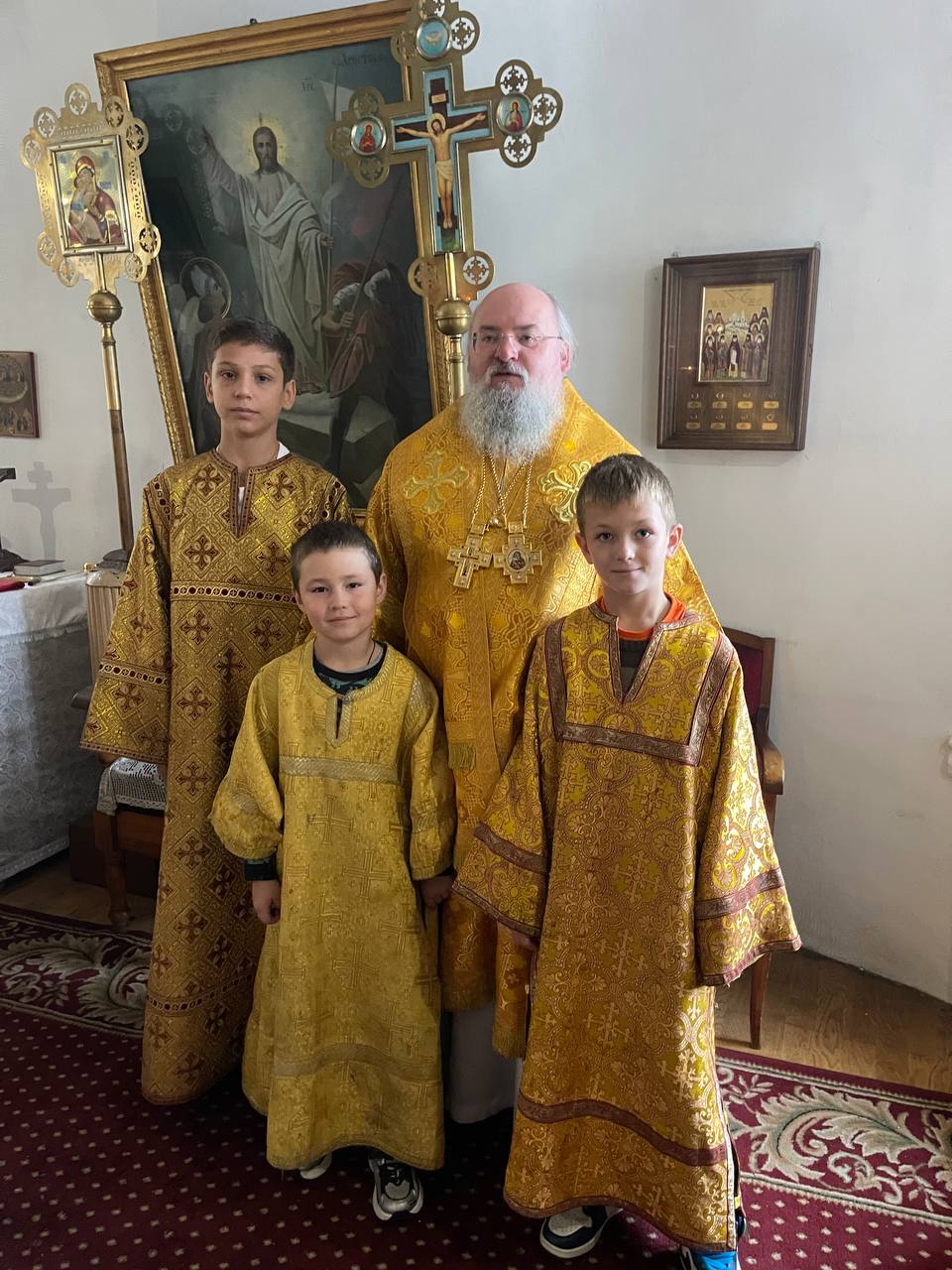 Скажу правду, когда я начал служить, псаломщика постоянного не было, а были временно приглашенные: как И.И.Виноградов, К.А.Циханович, Илларион Владимирович Жуков, Анна Чернова служила 7 лет, Мария Дашина служит по сие время 18-й год. В первое время моей службы в Храме было запылено, холодно и не убрано, но когда поступила мать Мариамна и другие, то навели порядок и чистоту. Вся церковная утварь стала блестеть и добродетелями пополнилась ризница, появились и ковры, и все необходимое для Богослужения. Пение и чтение исполнялось псаломщиком   и любителями церковного благолепия.  Спаси Господи всех за усердие к Святому Храму Божию. За 33 года моего служения наш храм три раза был покрашен внутри и снаружи и, к сожалению, два раза был обкрадываем. Первый раз украли мою митру и два ковшичка и лжицу, а второй раз украли два креста напрестольных и мой наперстный крест. В 1970 году, по допущению Божию и меня сильно напугали воры. В 2 часа ночи Троицкой родительской субботы, воры выставили окно и один залез в дом, прошел в сени и отворил все двери, и я в это время, Бог дал, проснулся и  ничего не подозревая, встал и пошел, а жулик — мне навстречу и кричит “руки вверх” и светит мне в лицо фонарем и говорит: “Давай денег  1000 рублей”. Я очень испугался, но ответил, что денег нет — они в сберкассе. В это время проснулась моя прислуга и вышла из своей комнаты. Жулик, увидев ее, говорит: “А и ты здесь, сейчас буду стрелять”. Она же бросилась на печку, а он за ней кинулся, но не поймал. Я же, опомнившись, убежал в другую половину дома, где ночевали женщины, которые пришли помянуть в родительскую усопших. Воры, услышав крик всех нас, убежали, ничего не взявши, но мы очень испугались.