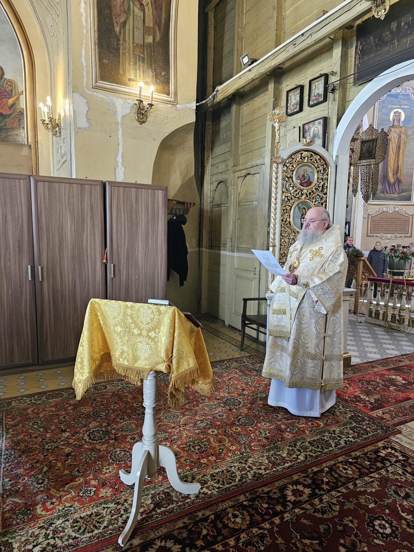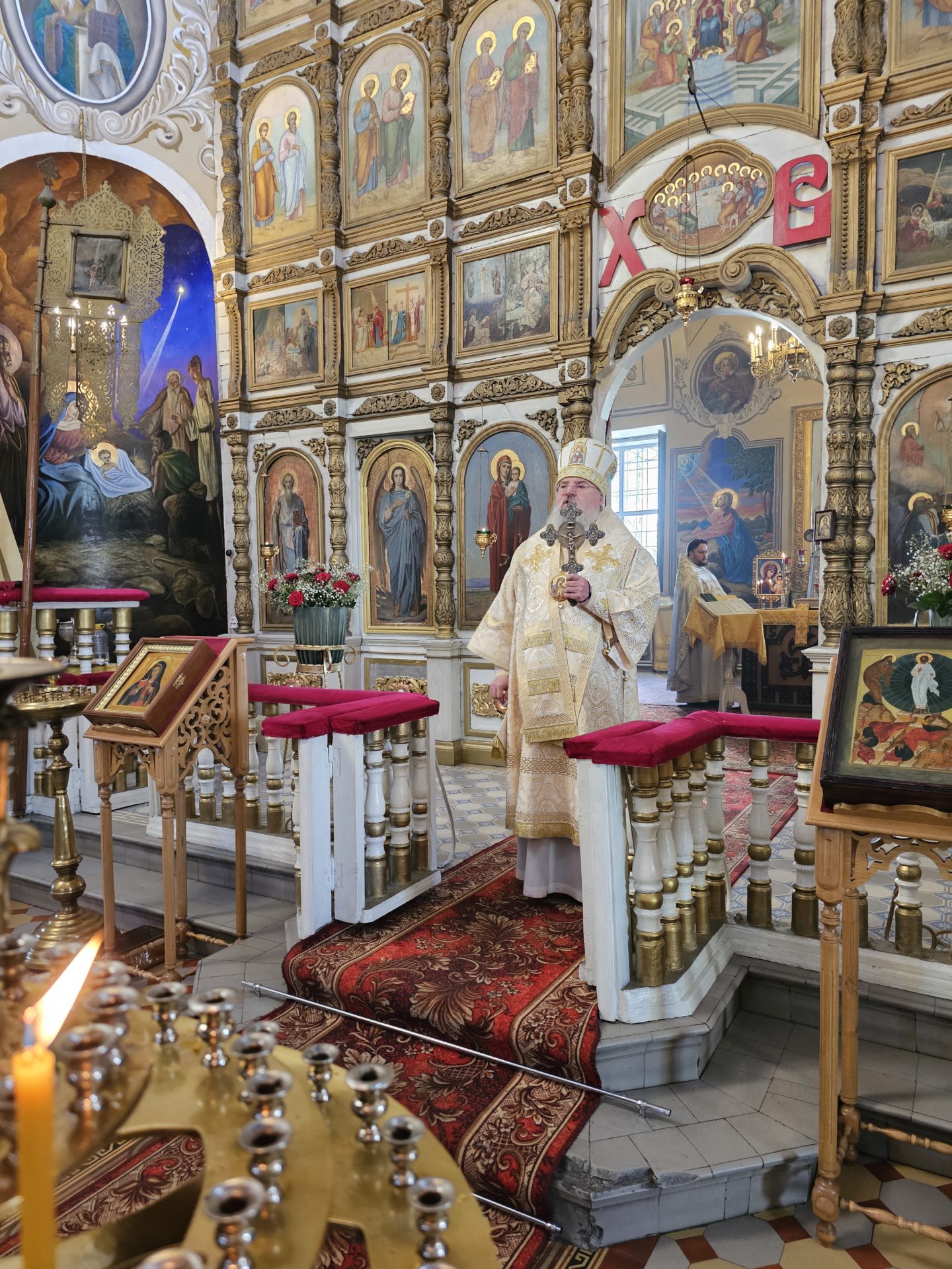 По отпусте литургии епископ Никита обратился к богомольцам с проповедью.