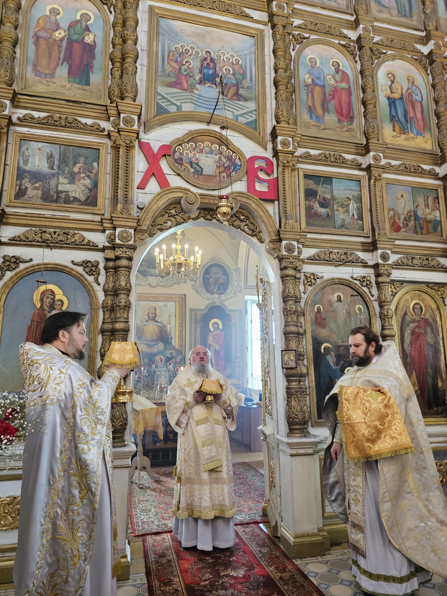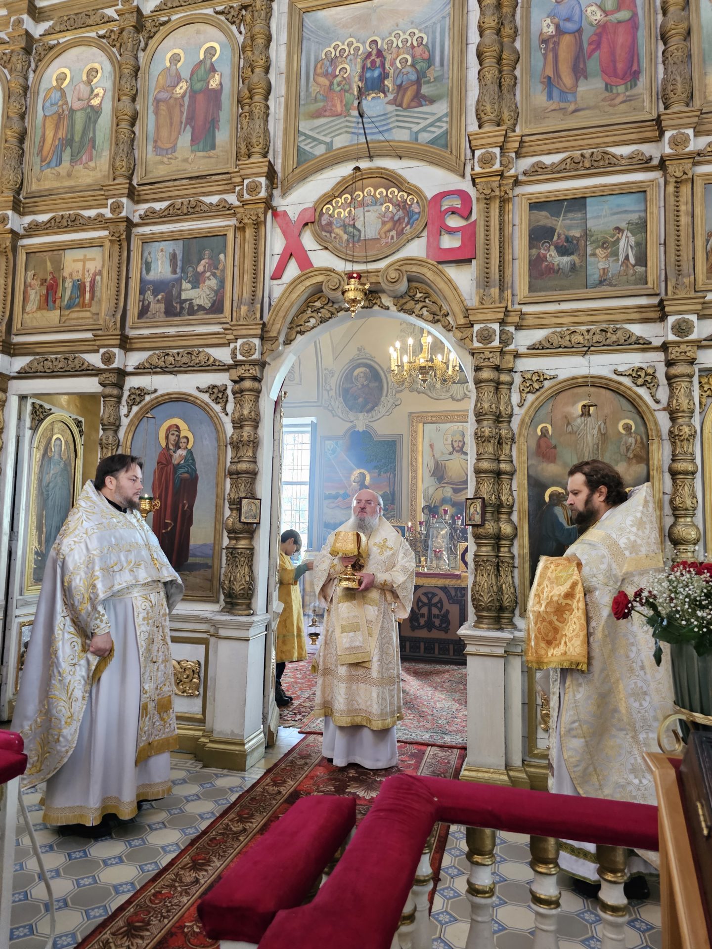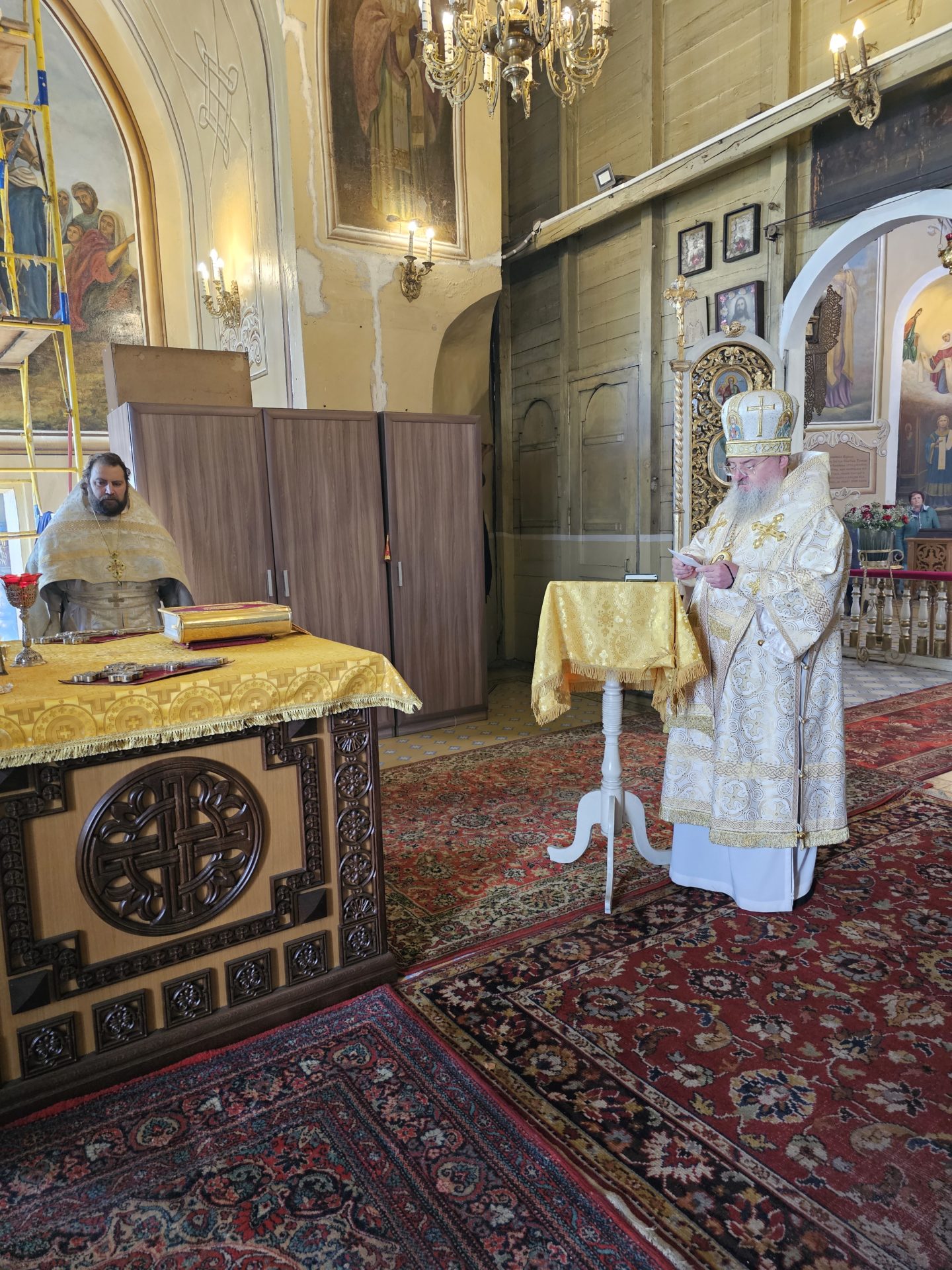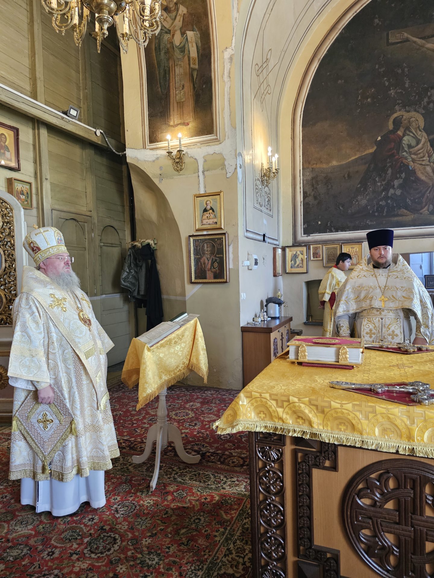 Архипастырю сослужили: настоятель прихода протоиерей Алексий Зиновьев и протоиерей Антоний Хатунцев.