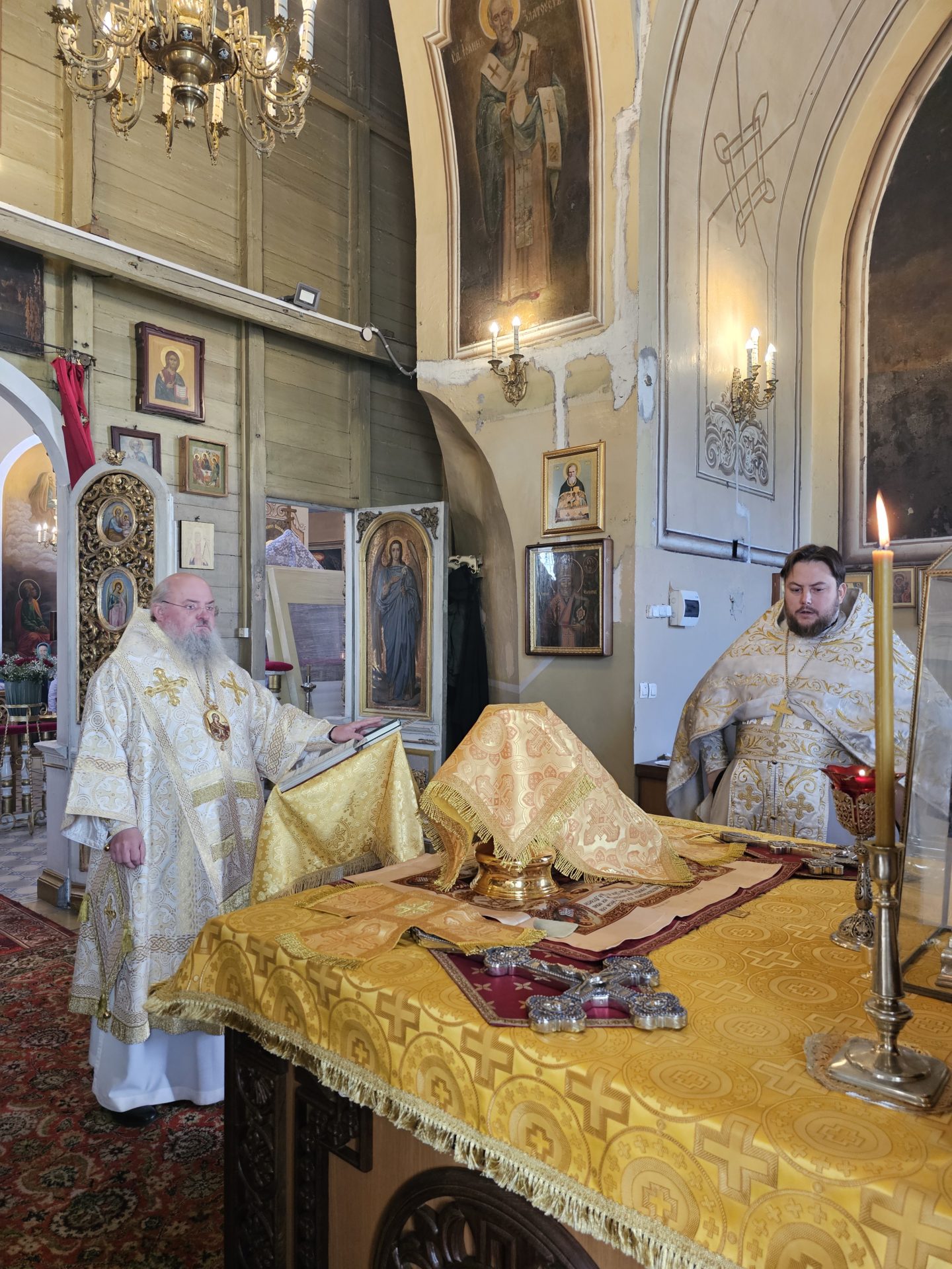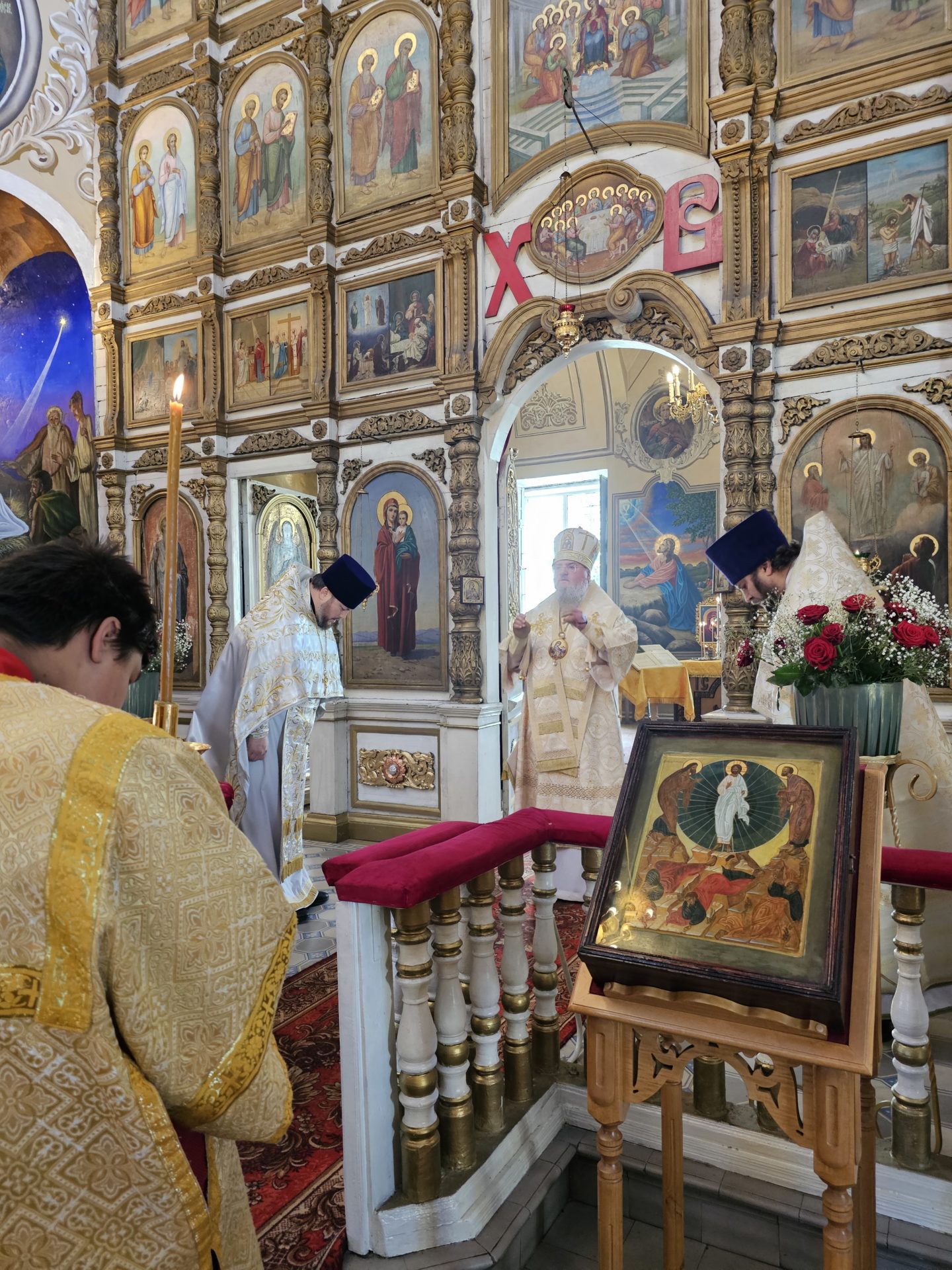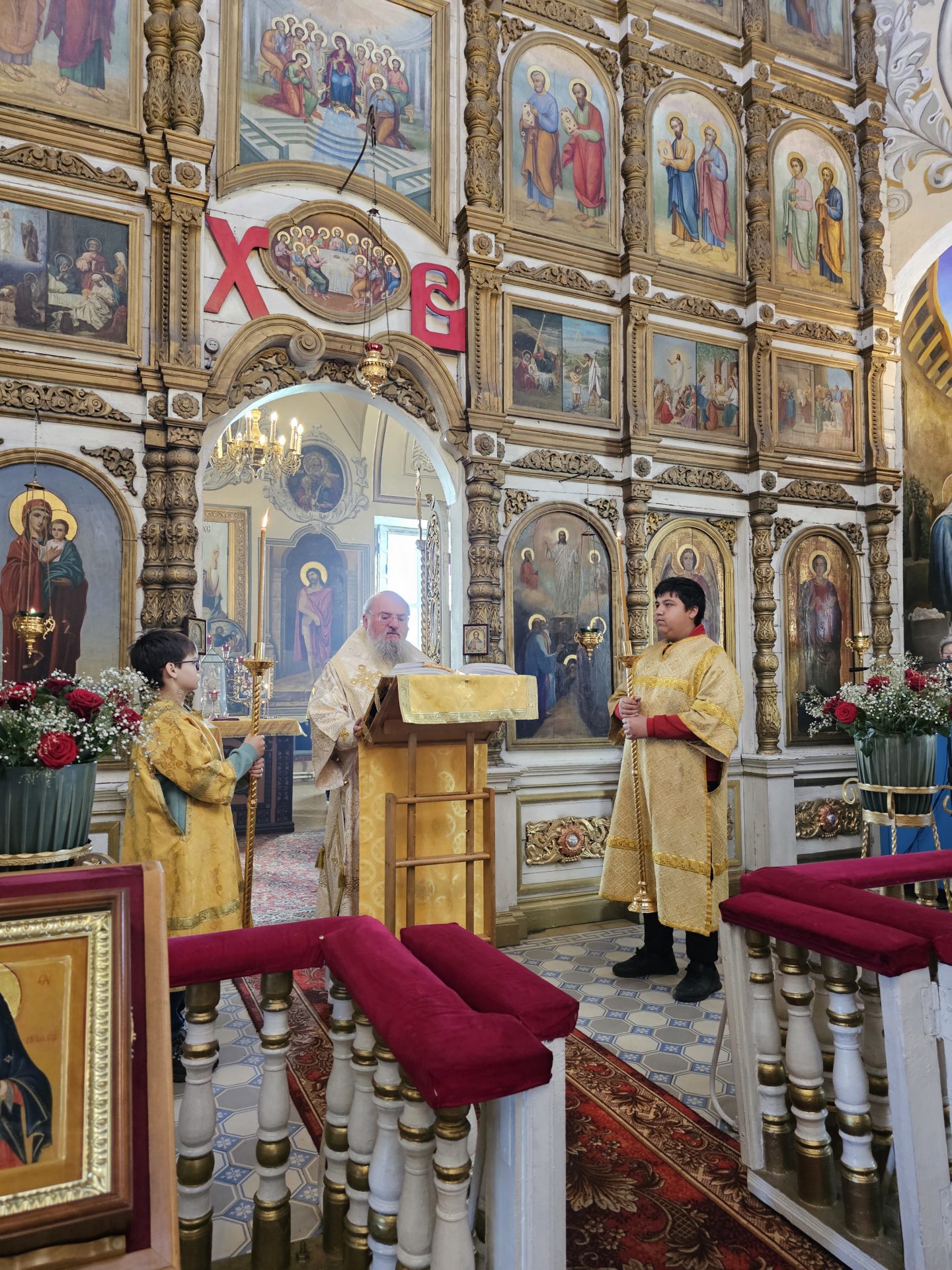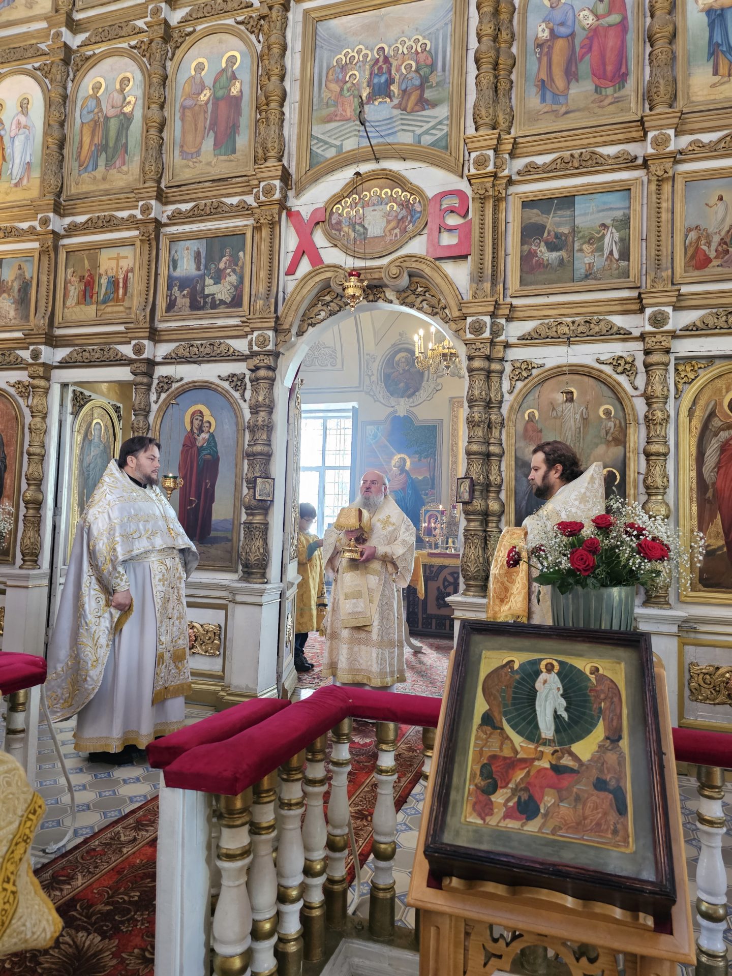 Архипастырю сослужили: настоятель прихода протоиерей Алексий Зиновьев и протоиерей Антоний Хатунцев.