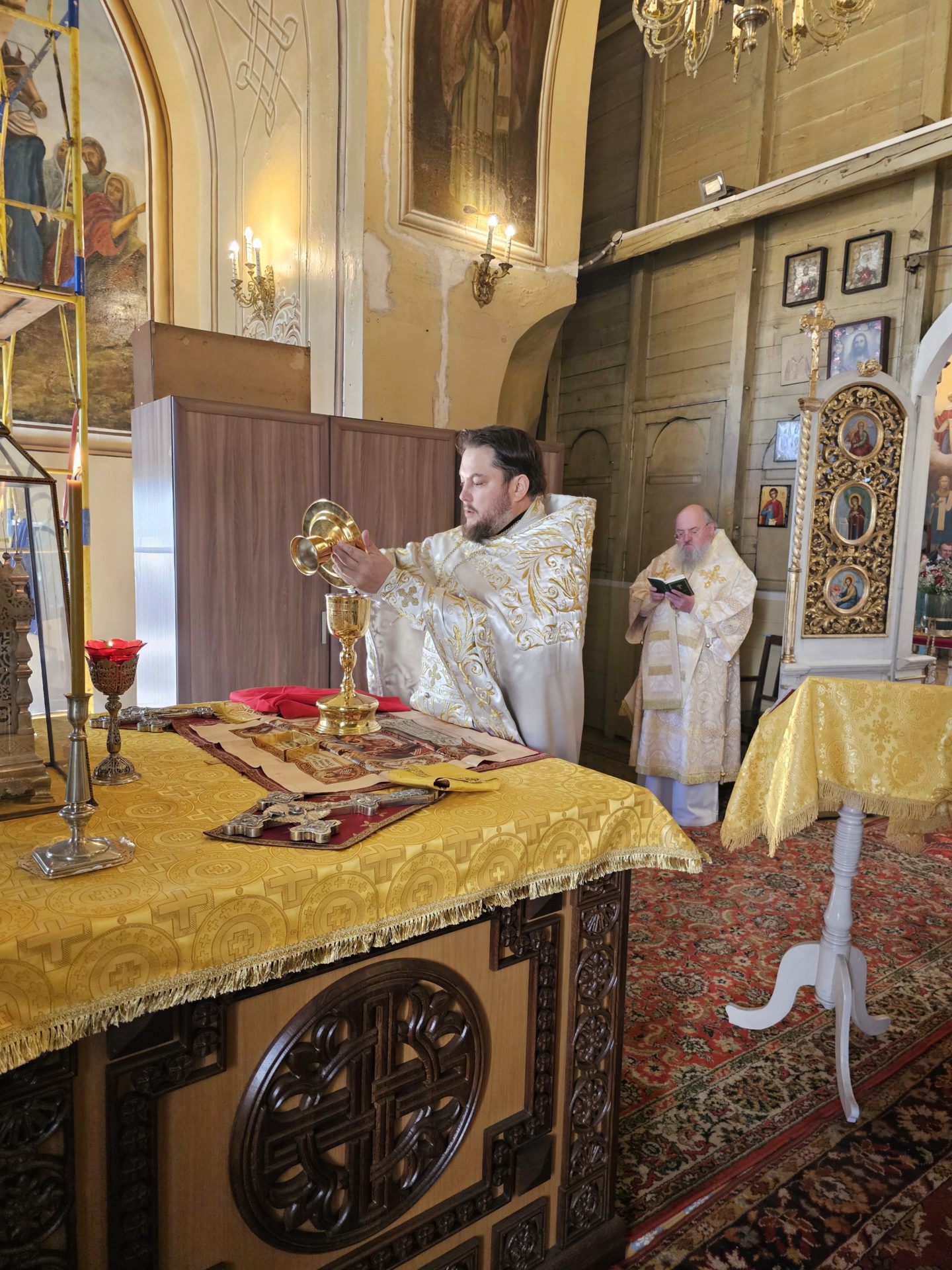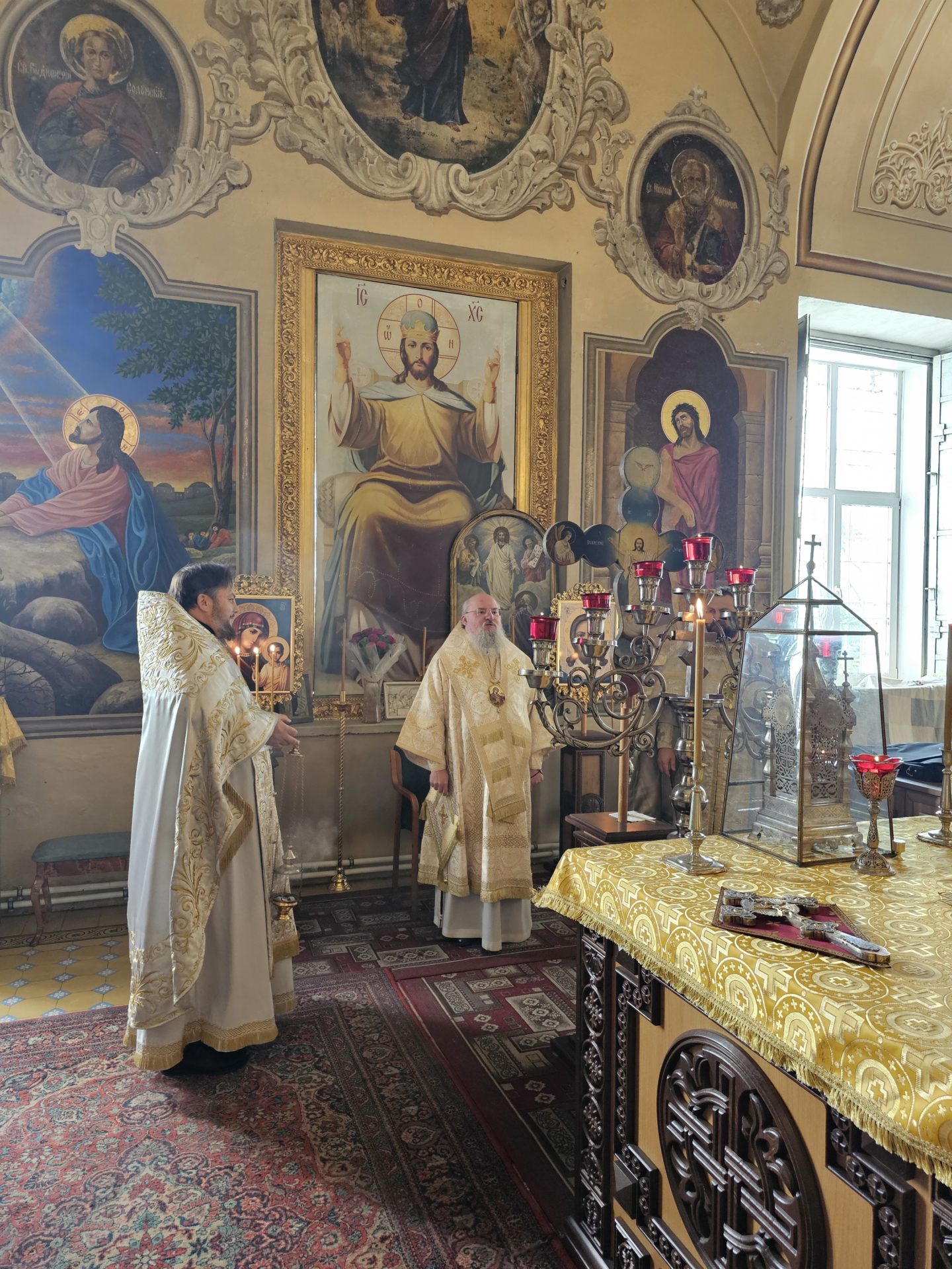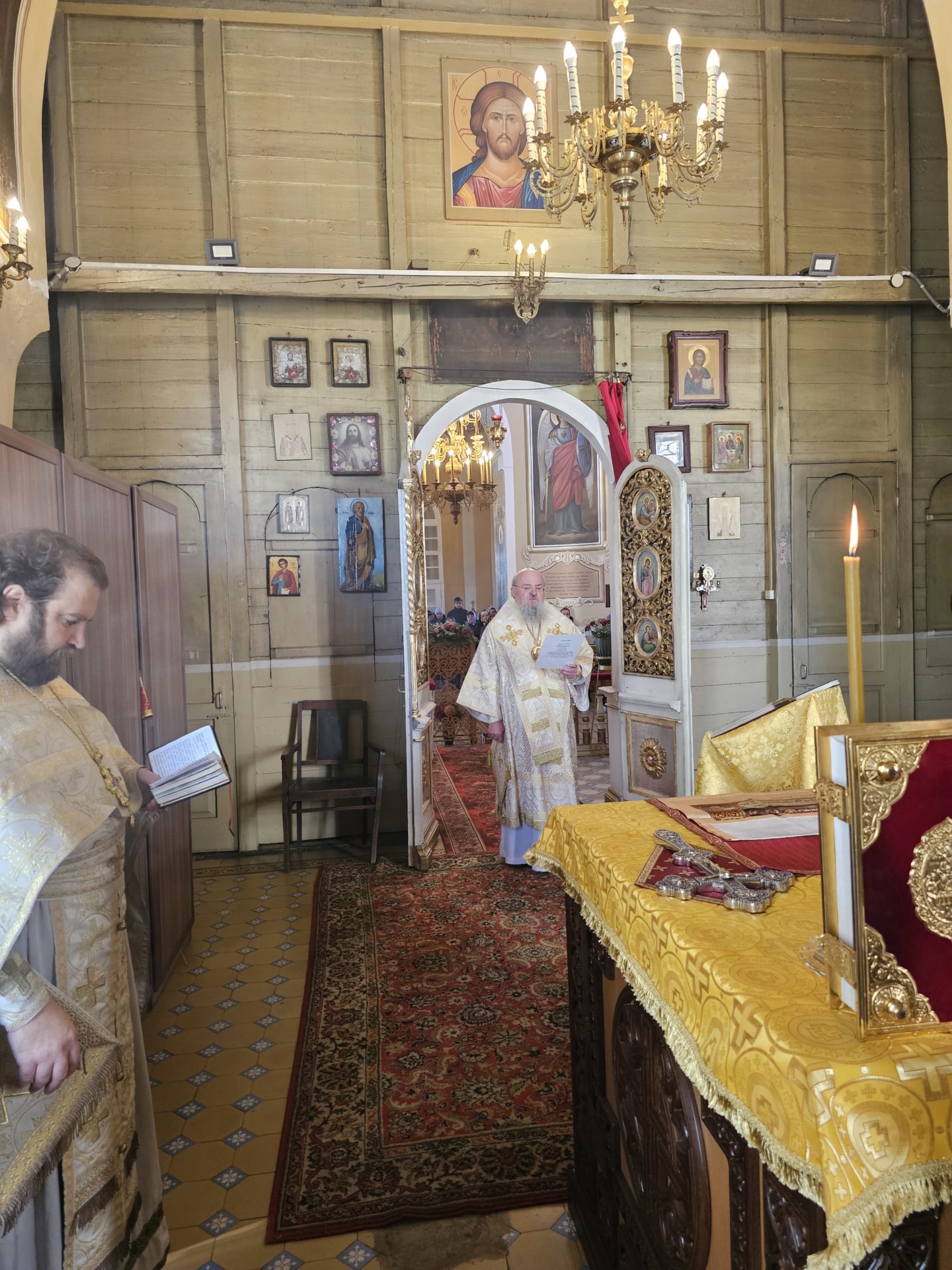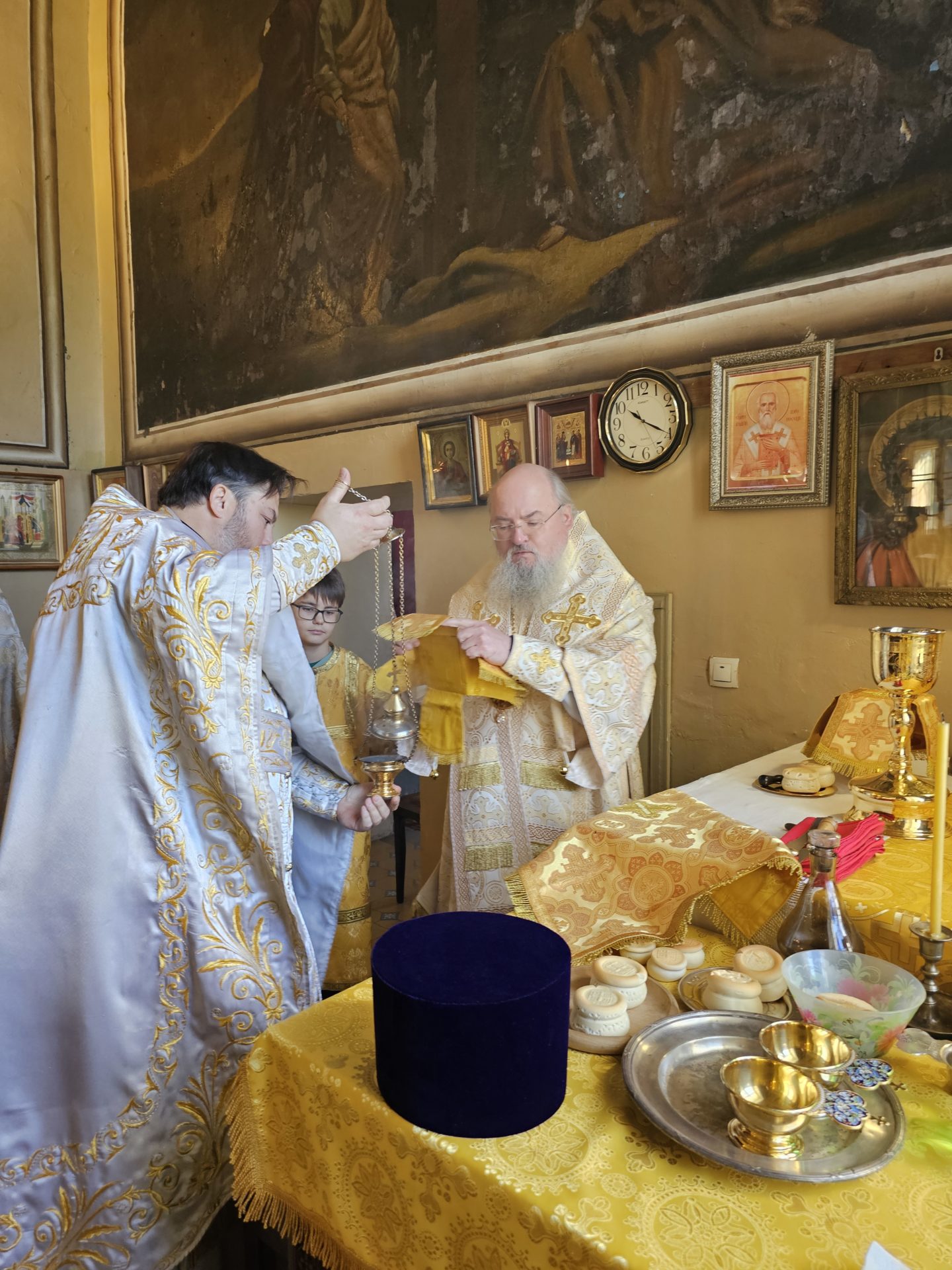 Архипастырю сослужили: настоятель прихода протоиерей Алексий Зиновьев и протоиерей Антоний Хатунцев.