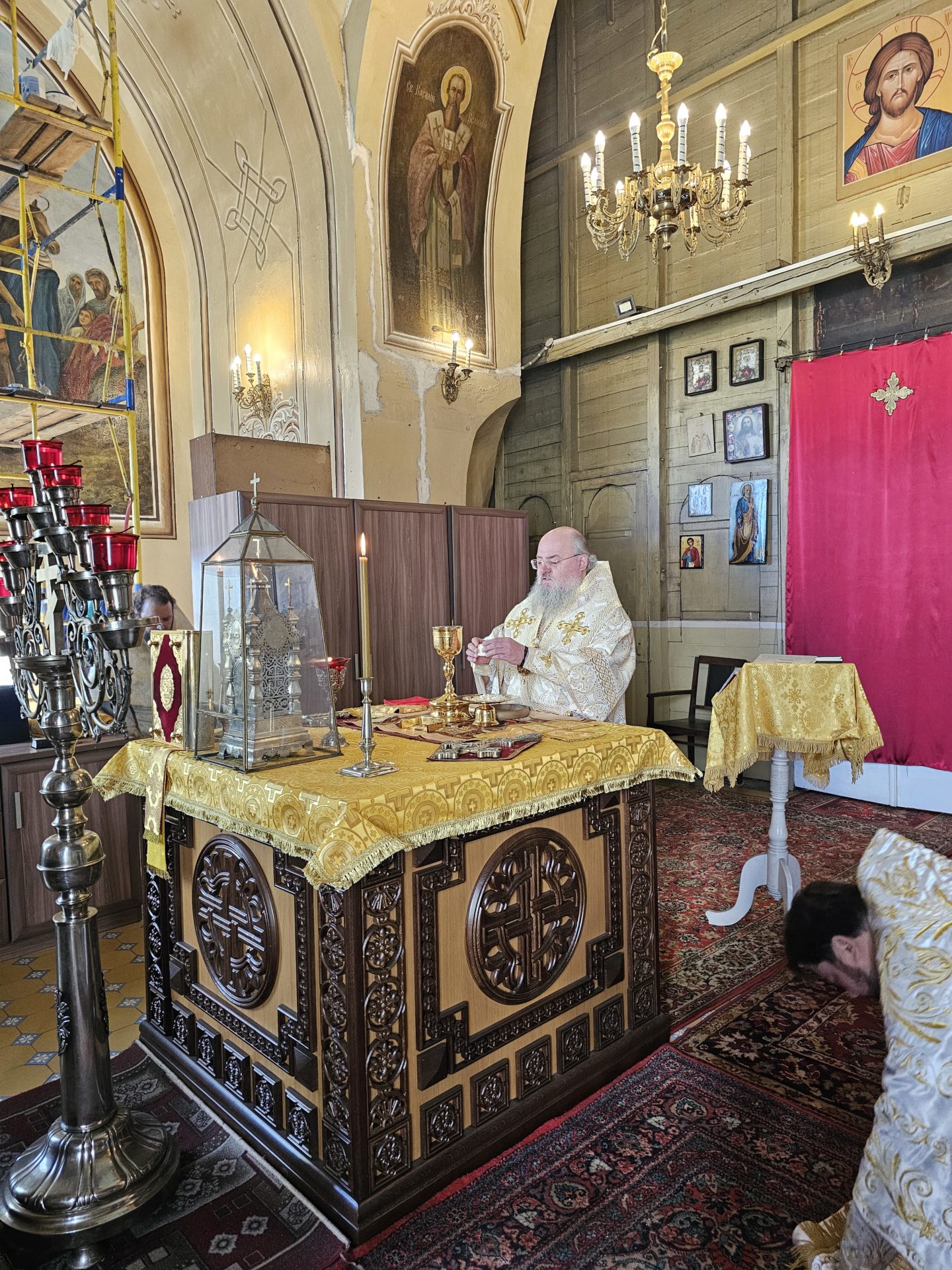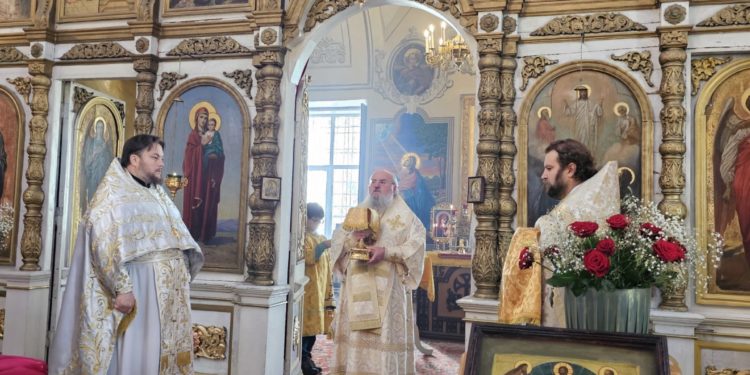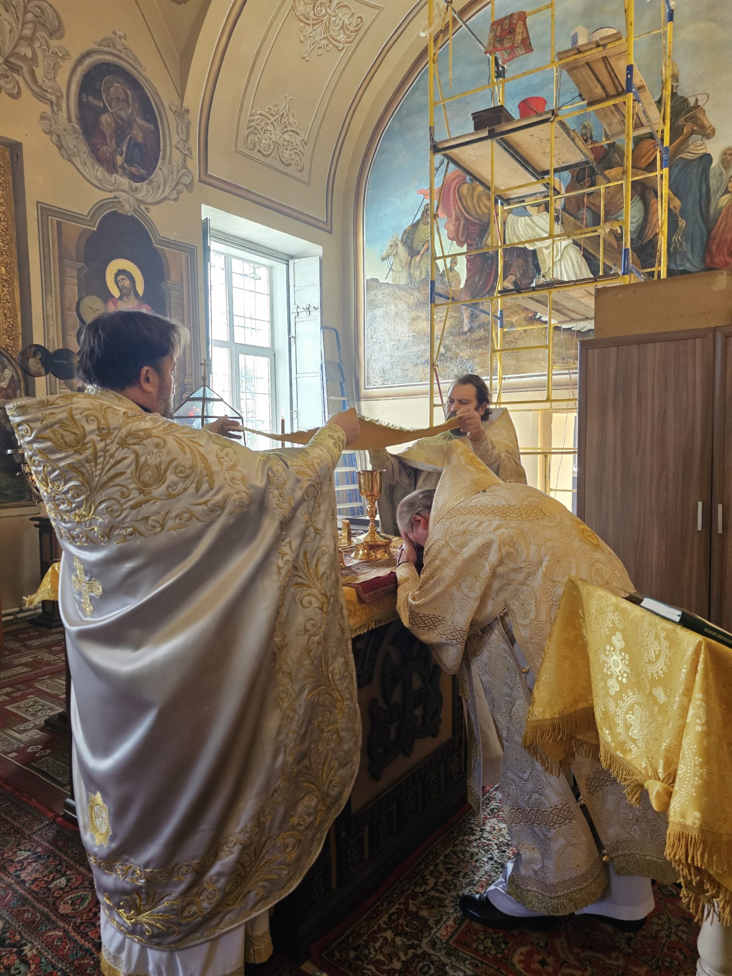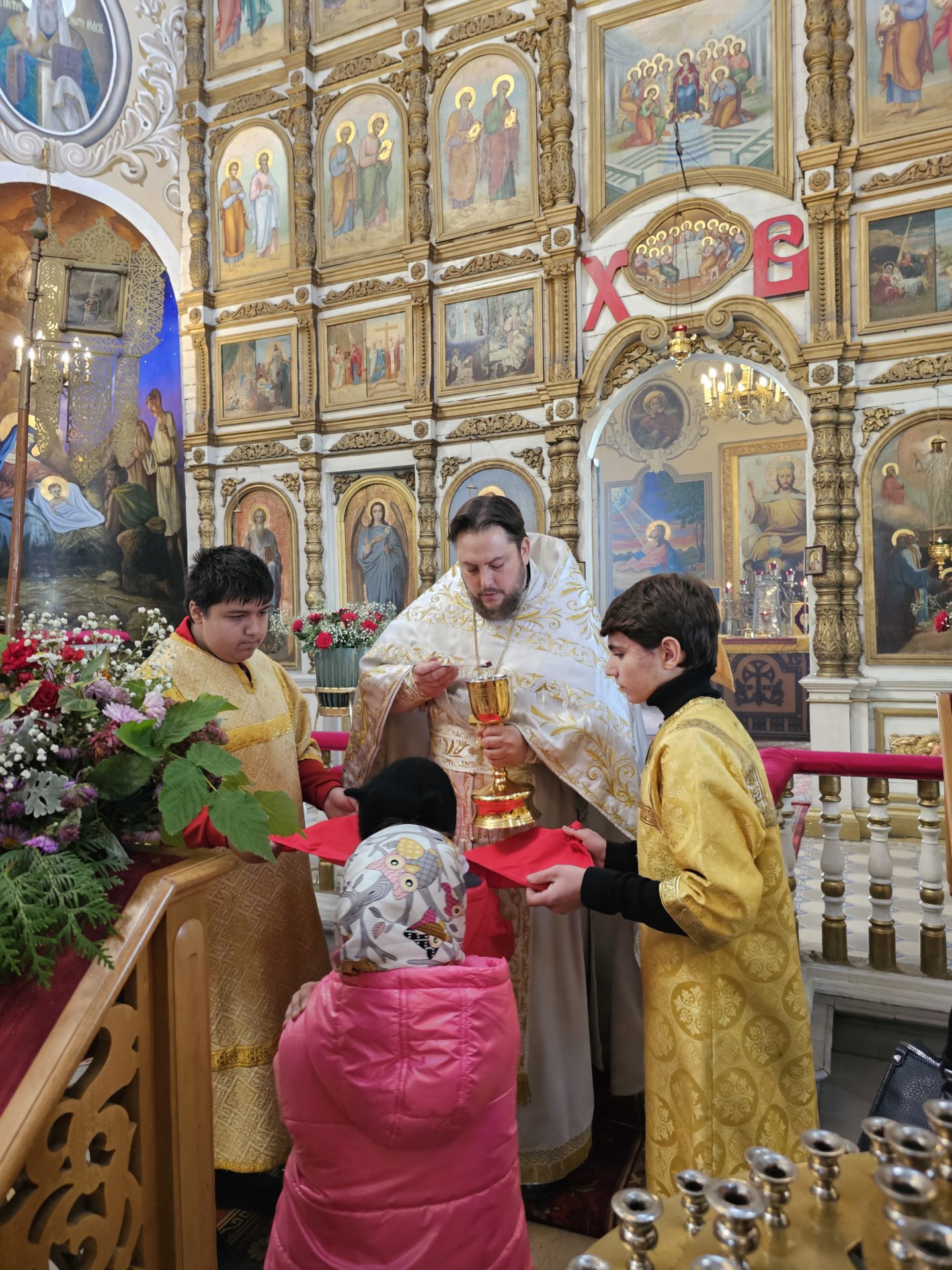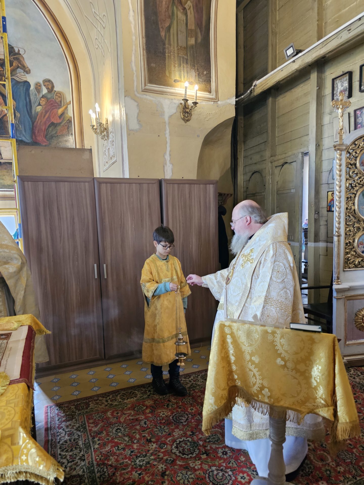 Архипастырю сослужили: настоятель прихода протоиерей Алексий Зиновьев и протоиерей Антоний Хатунцев.