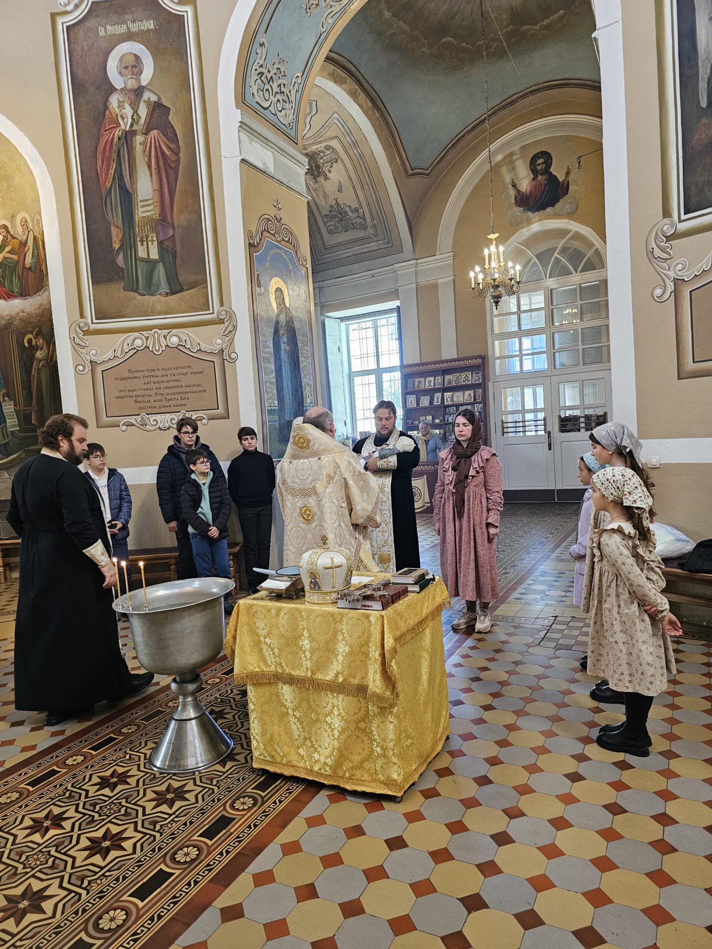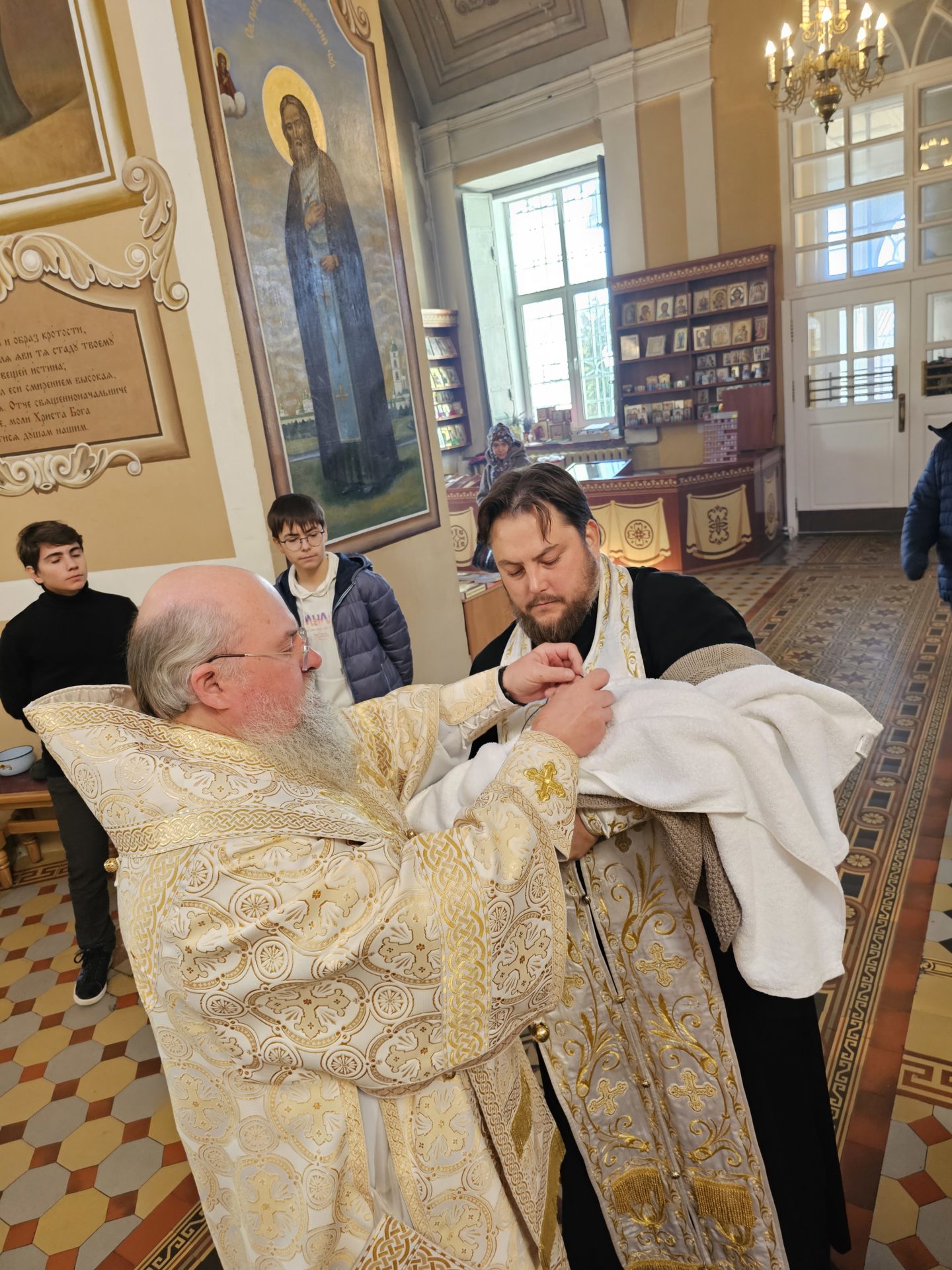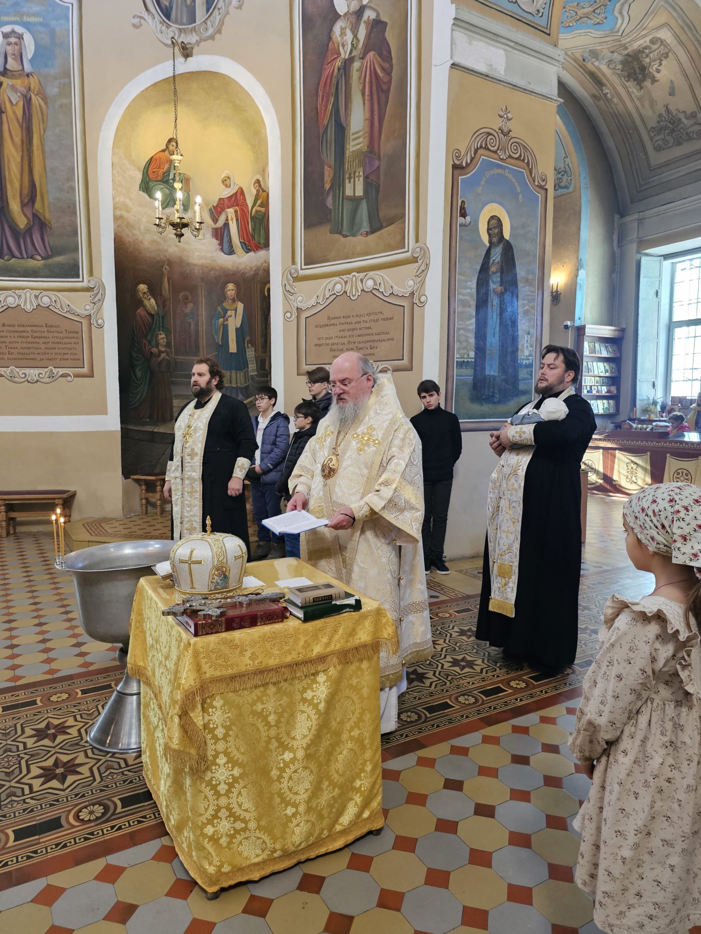 Архипастырю сослужили: настоятель прихода протоиерей Алексий Зиновьев и протоиерей Антоний Хатунцев.