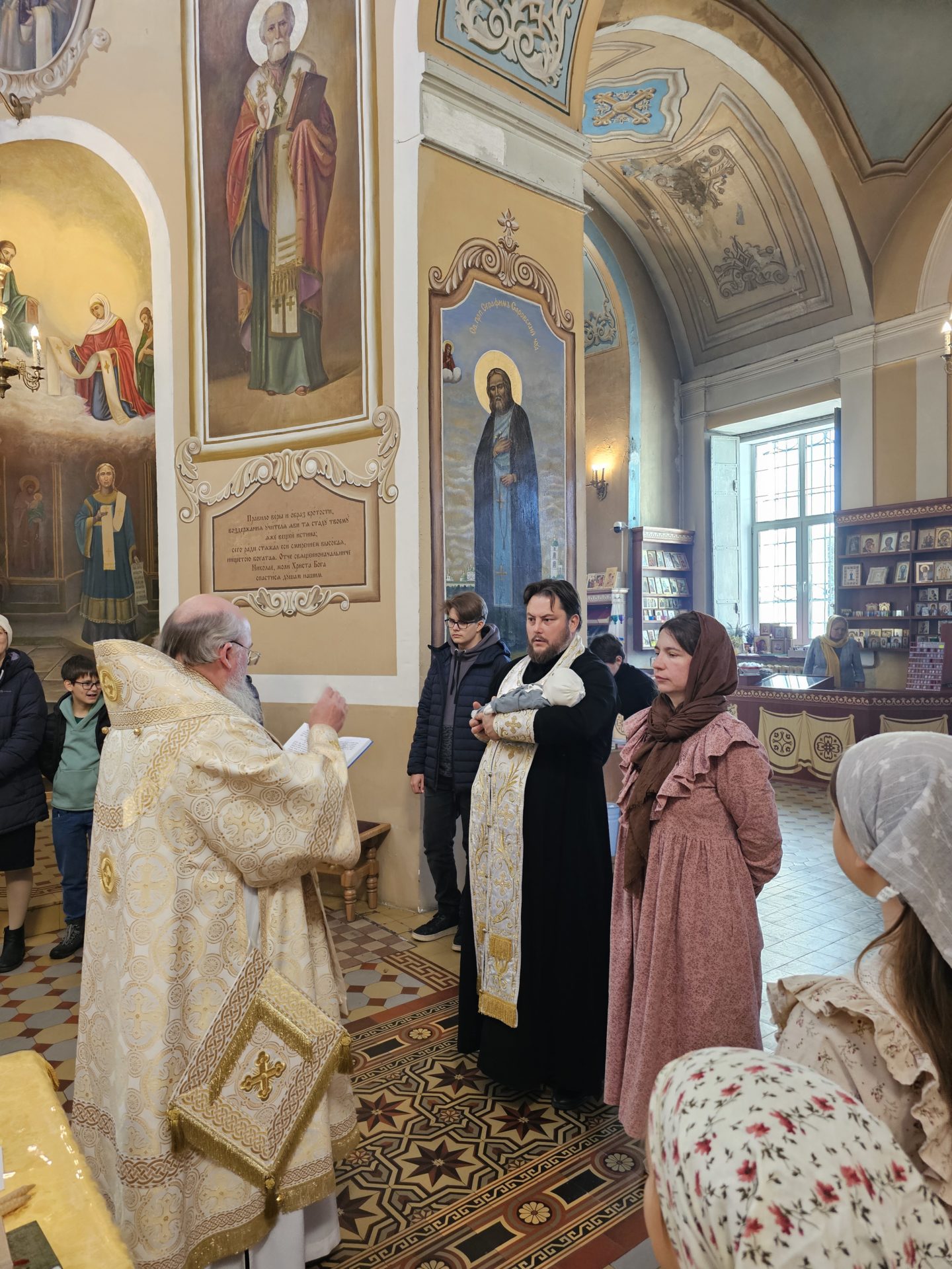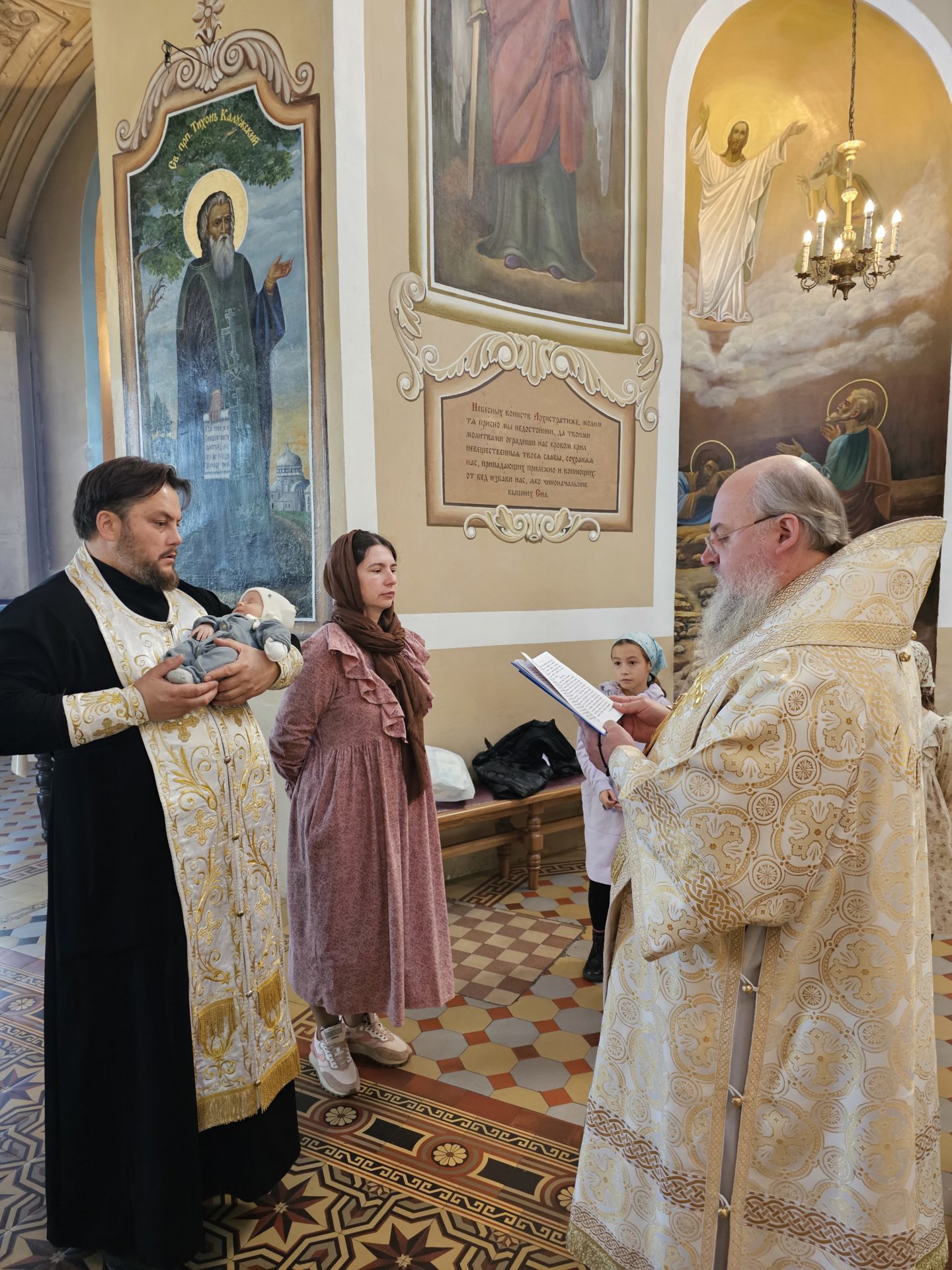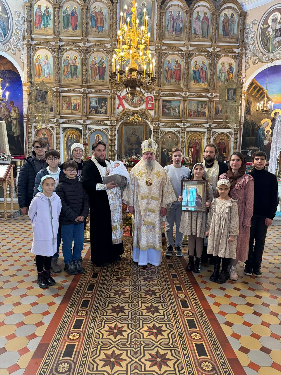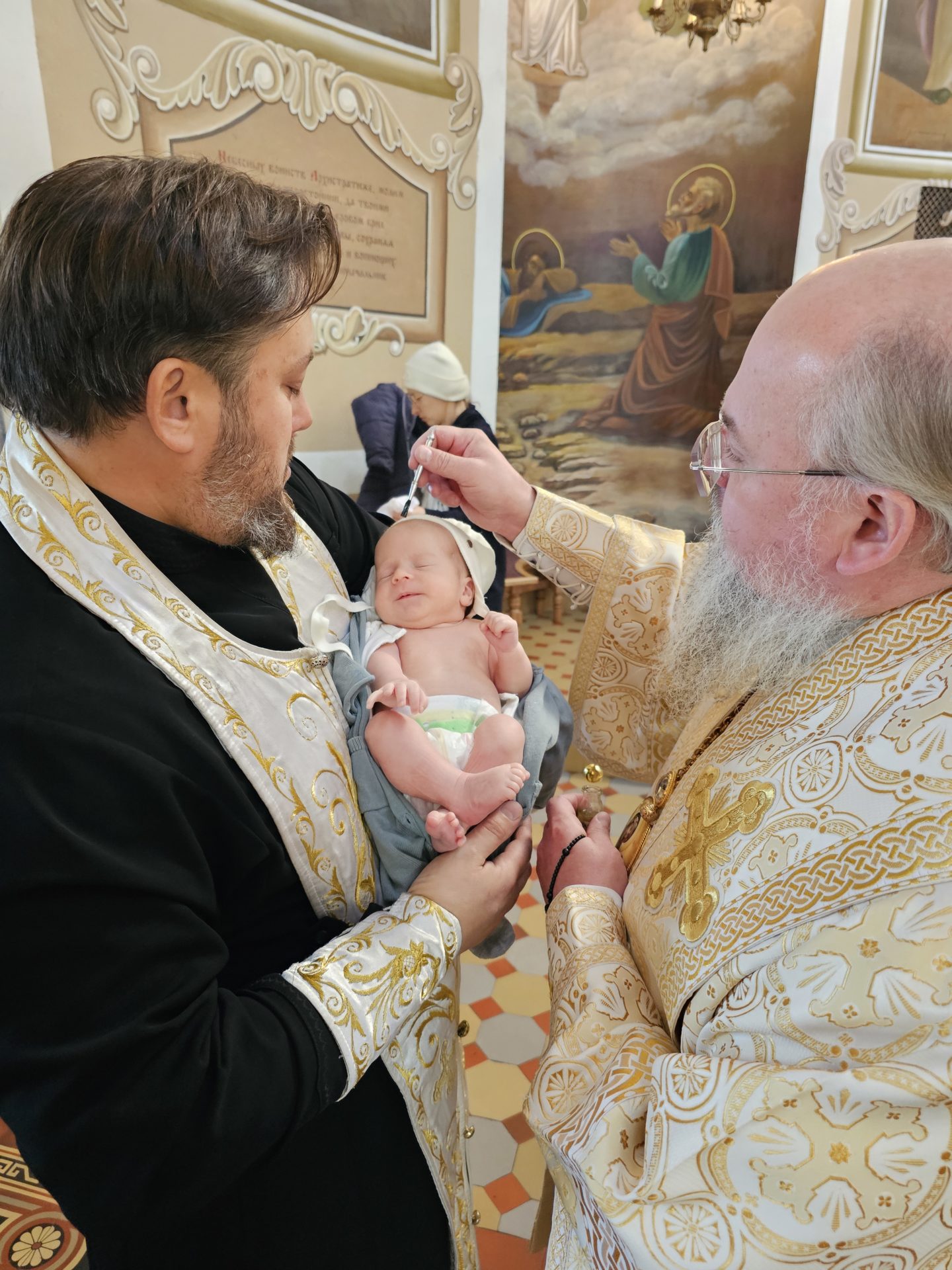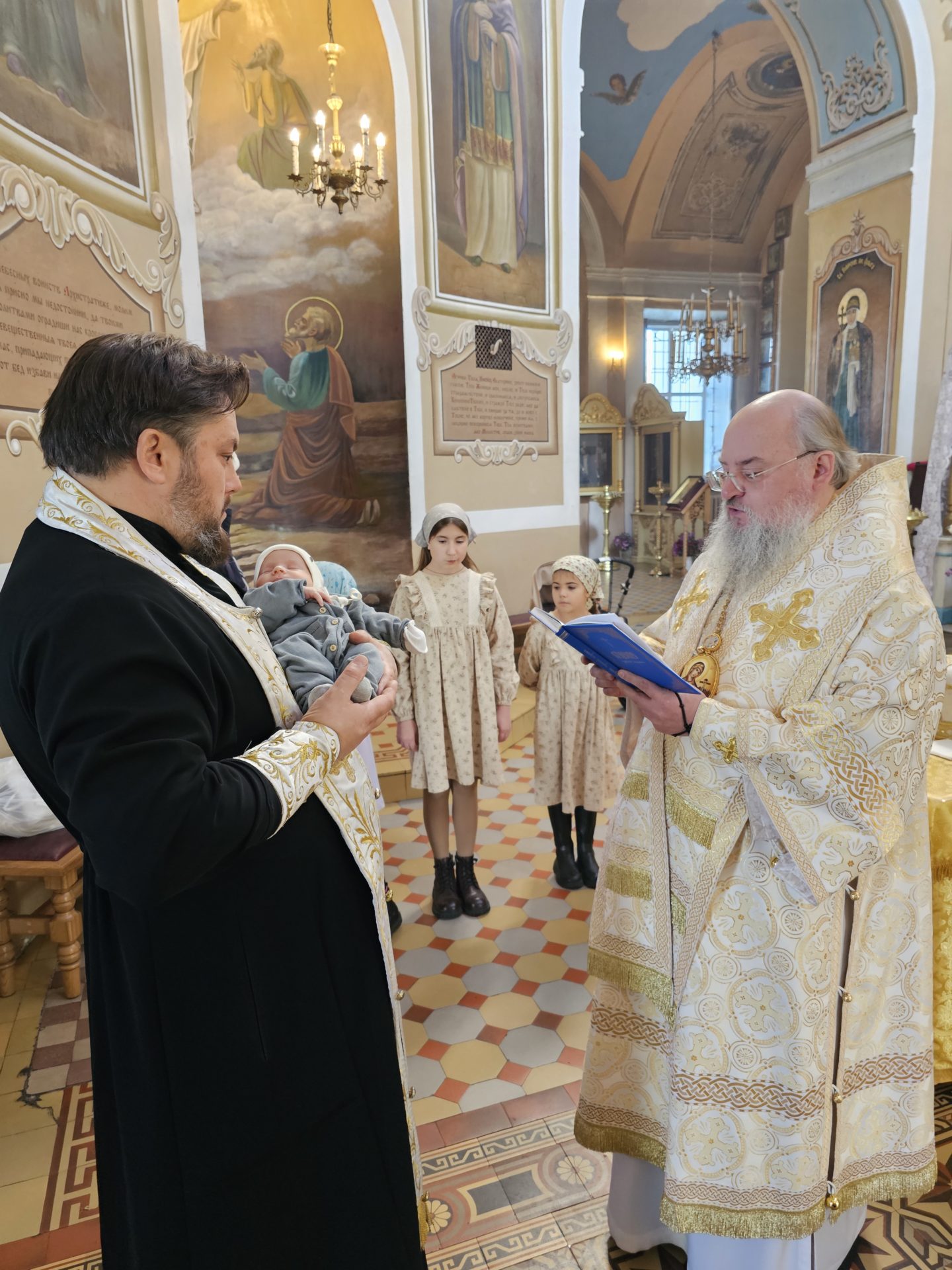 По окончании литургии владыка Никита совершил таинство Святого Крещения над сыном настоятеля храма протоиерея Алексия Зиновьева – Феодором, нареченным в честь святого праведного воина Феодора Ушакова.