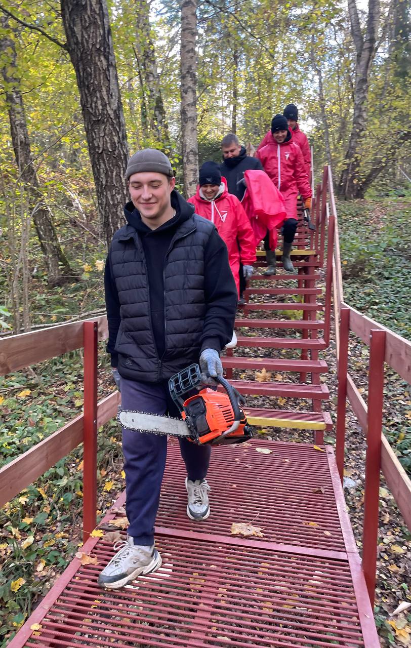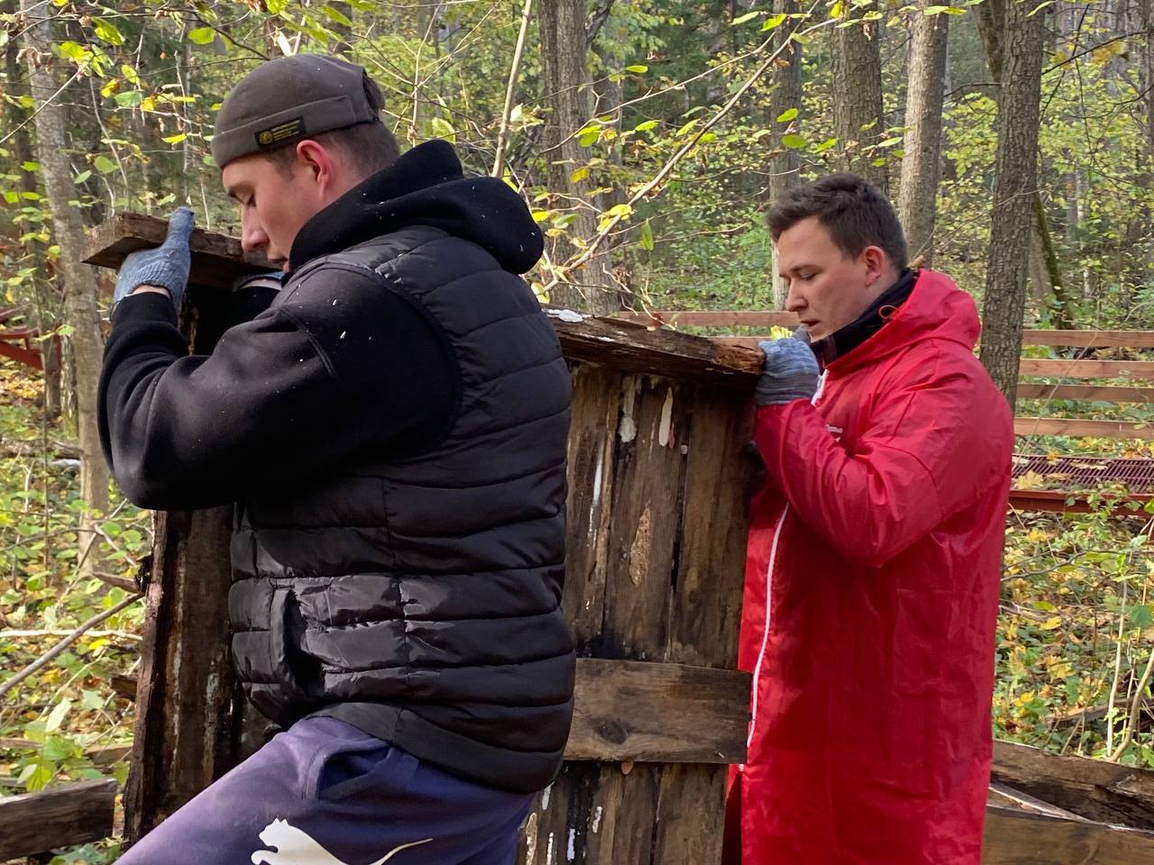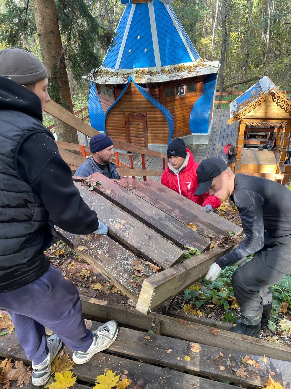 Основной задачей, которую перед тружениками поставил наместник монастыря — это разбор старой, деревянной лестницы, которая ведет от дороги к источнику. Молодежь с этой задачей справилась быстро и дружно.