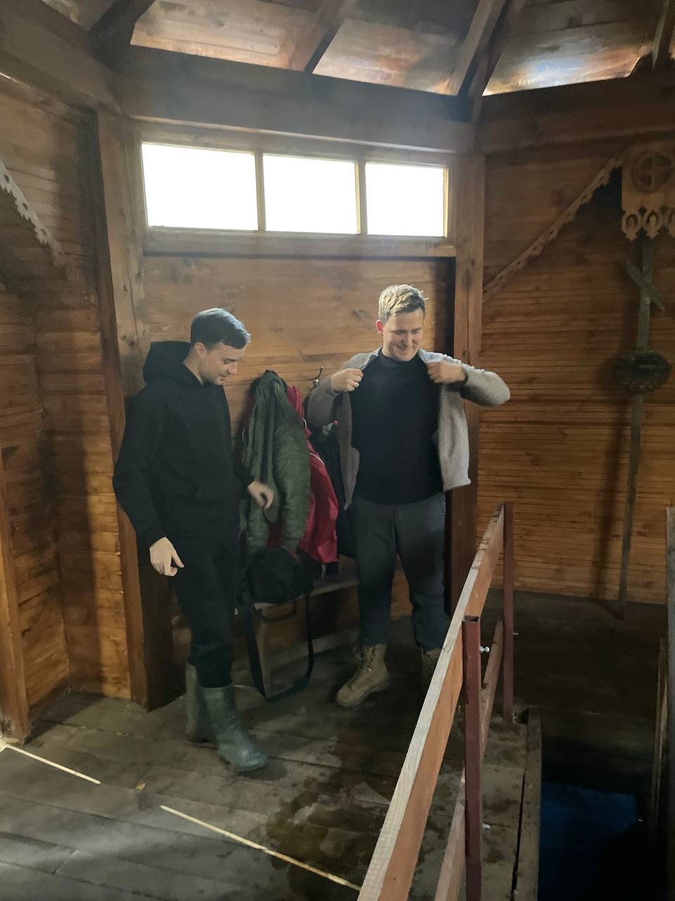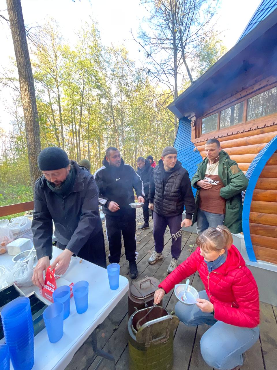 Пока грелся самовар, желающие с удовольствием искупались в купели, а иеромонах Филарет (Пчелов) — насельник святой обители, привез монастырскую трапезу: монастырский борщ, сыр собственного производства и пирожки.