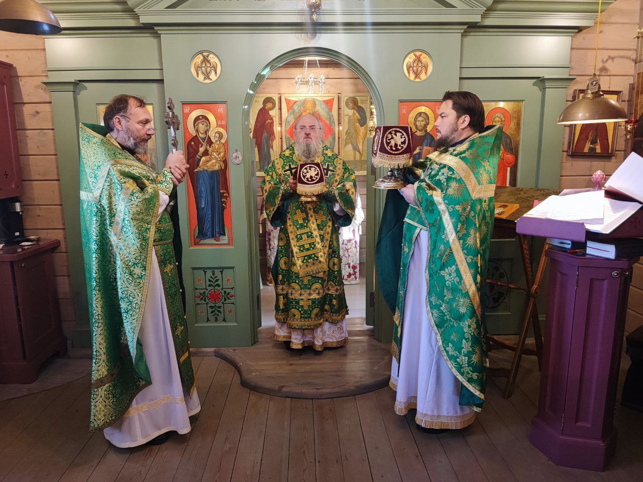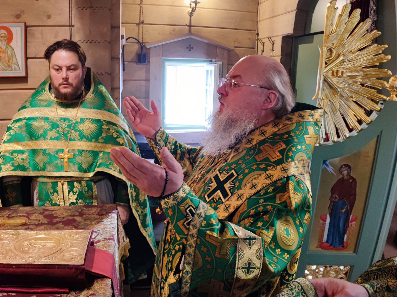 Архипастырю сослужили: протоиерей Антоний Хатунцев, иерей Георгий Грачев и диакон Евгений Ковригин.