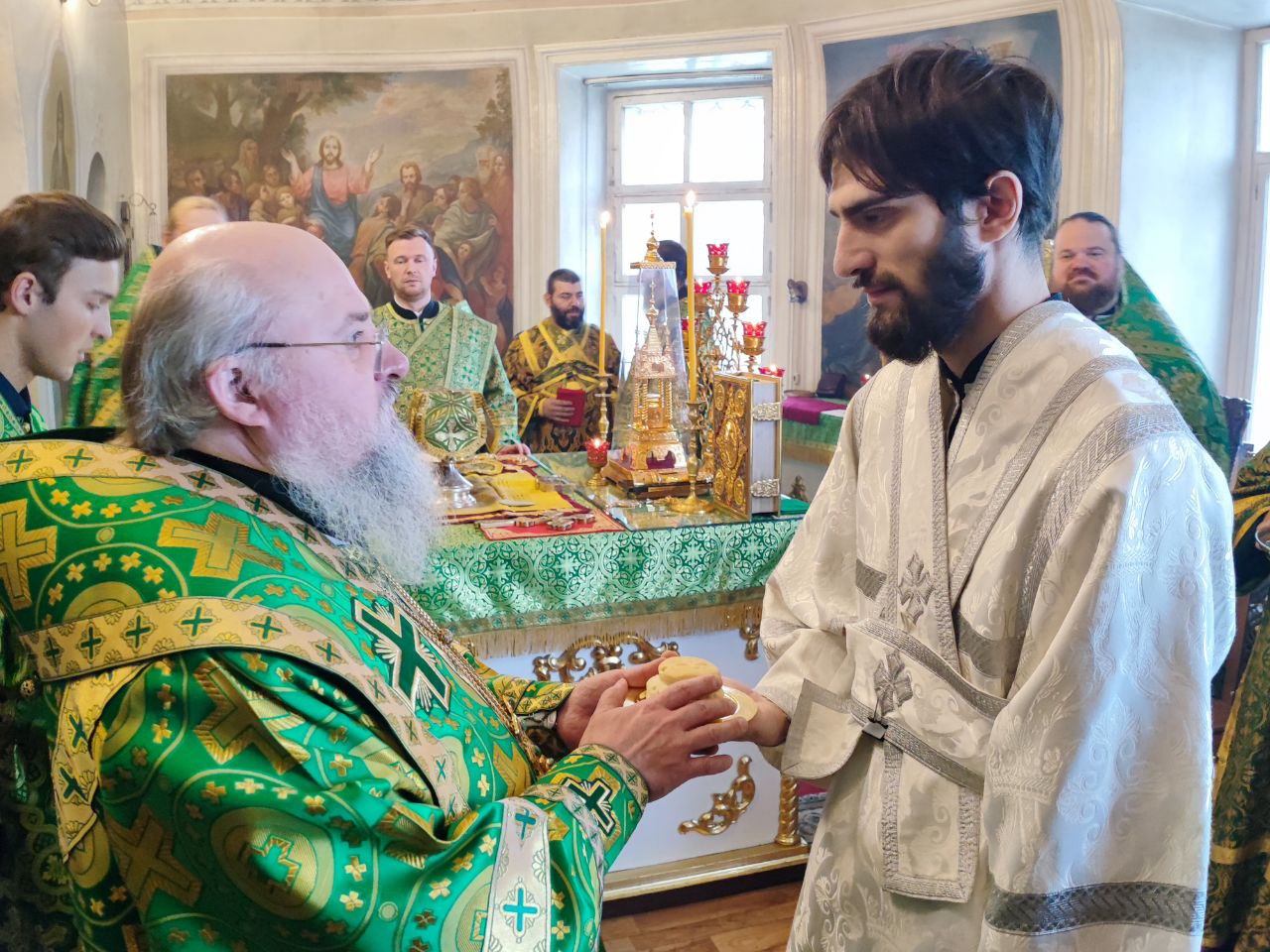 24 октября. Собор всех святых, в Оптиной пустыни просиявших. Епископ Козельский и Людиновский Никита совершил Божественную литургию в храме Благовещения Пресвятой Богородицы города Козельска, где долгие годы совершал свое служение постриженик Оптиной пустыни преподобноисповедник Рафаил (Шейченко). Архипастырю сослужили: протоиерей Павел Морозов, протоиерей Сергий Сычев, иерей Сергий Барыкин – настоятель прихода, диакон Евгений Ковригин, диакон Валерий Волков и диакон Сергий Акопян. После Евхаристического канона в сан диакона был рукоположен выпускник Барнаульской духовной семинарии Рупасов (Дамиан) Демьян Павлович. Новорукоположенный диакон, после прохождения сорокоуста, будет нести свое послушание в храме Святого Духа города Козельска.