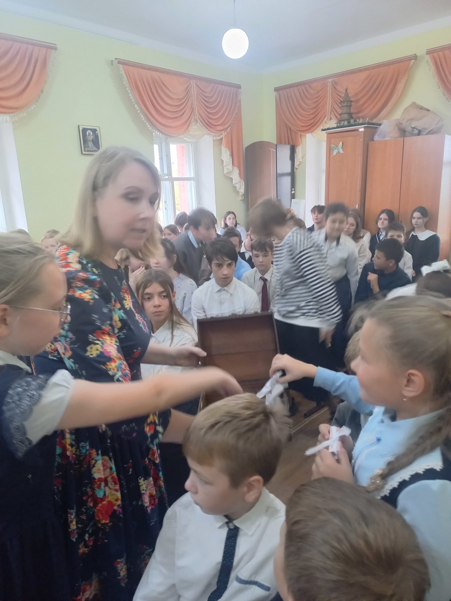 В истории нашей страны, как и в мировой истории, есть святые, являющиеся «верстовыми столбами» на пути к Всевышнему. Один из таких праведников-преподобный Амвросий Оптинский. 23 октября 2024 года, в день памяти батюшки Амвросия Оптинского, в ЧОУ «Православная гимназия в г. Козельске» прошло интересное мероприятие. Оно началось с разгадывания кроссворда о Козельской земле. Ключевым словом в нём стало имя старца. Учащиеся 2,5,6 и 8 классов рассказали о духовном подвиге батюшки Амвросия, о значении Оптиной пустыни для русского народа, об огромном влиянии на духовную жизнь всей России этого великого старца. Гимназический хор исполнил тропарь Амвросию Оптинскому. Прозвучали стихотворения преподобного Варсонофия Оптинского, посвящённые старцу. Также дети читали и объясняли значение высказываний батюшки-простых, метких, порой с добрым юмором: «Отчего человек бывает плох? – Оттого, что забывает, что над ним Бог»; «Кто мнит о себе, что имеет нечто, тот потеряет» и многих других. Каждый ребенок, в качестве подарка, получил наставление старца Амвросия, в виде свитка. Очень тепло прошла эта встреча-воспоминание о преподобном старце Амвросии. Видно, что дети знают о нём и почитают.