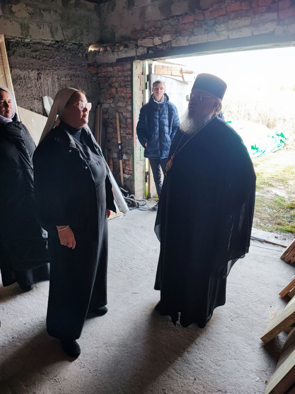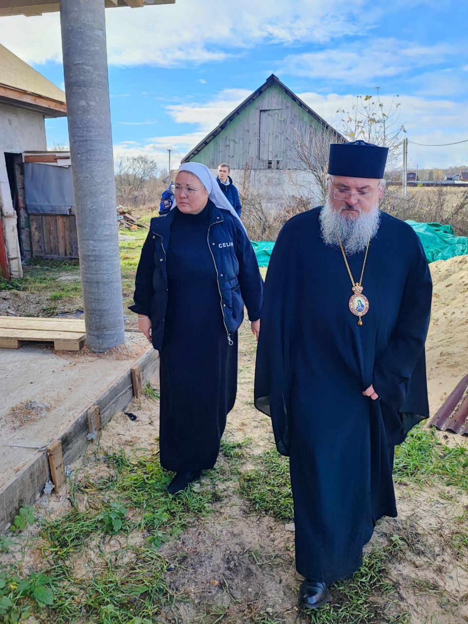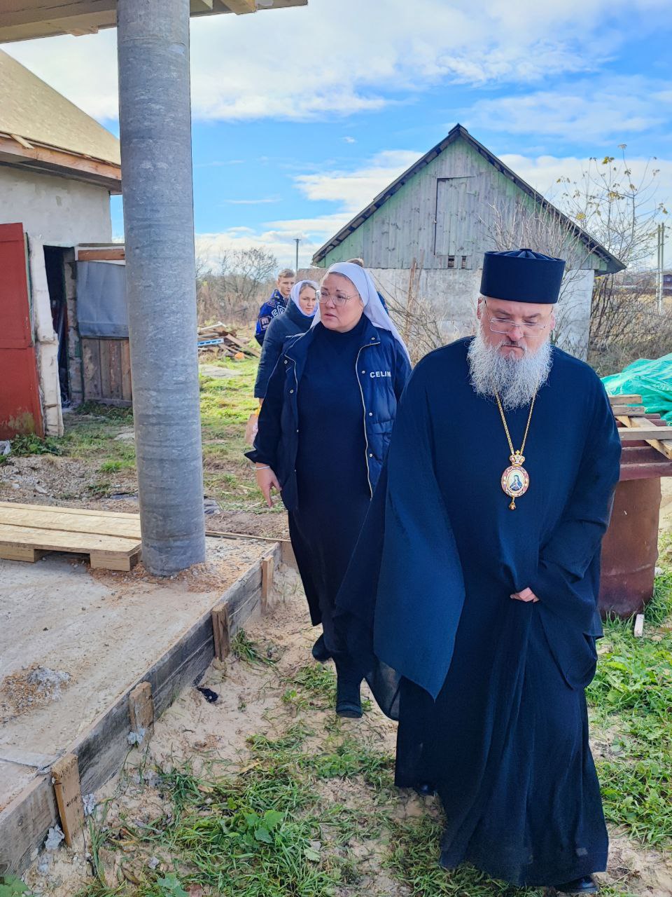 26 октября владыка Никита посетил строительную площадку. Руководитель Сестричества Елена Матвеевна Григорьева рассказала архипастырю о проведенном благоустройстве помещений и планах работ на ближайшие сроки.