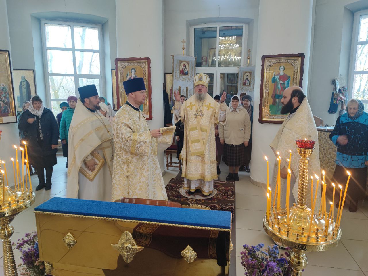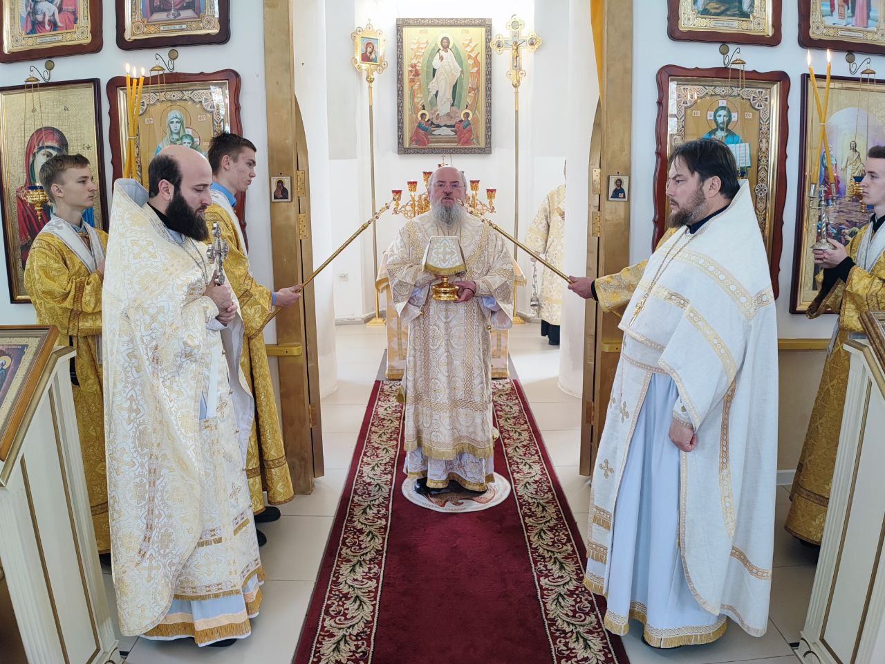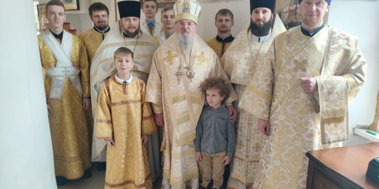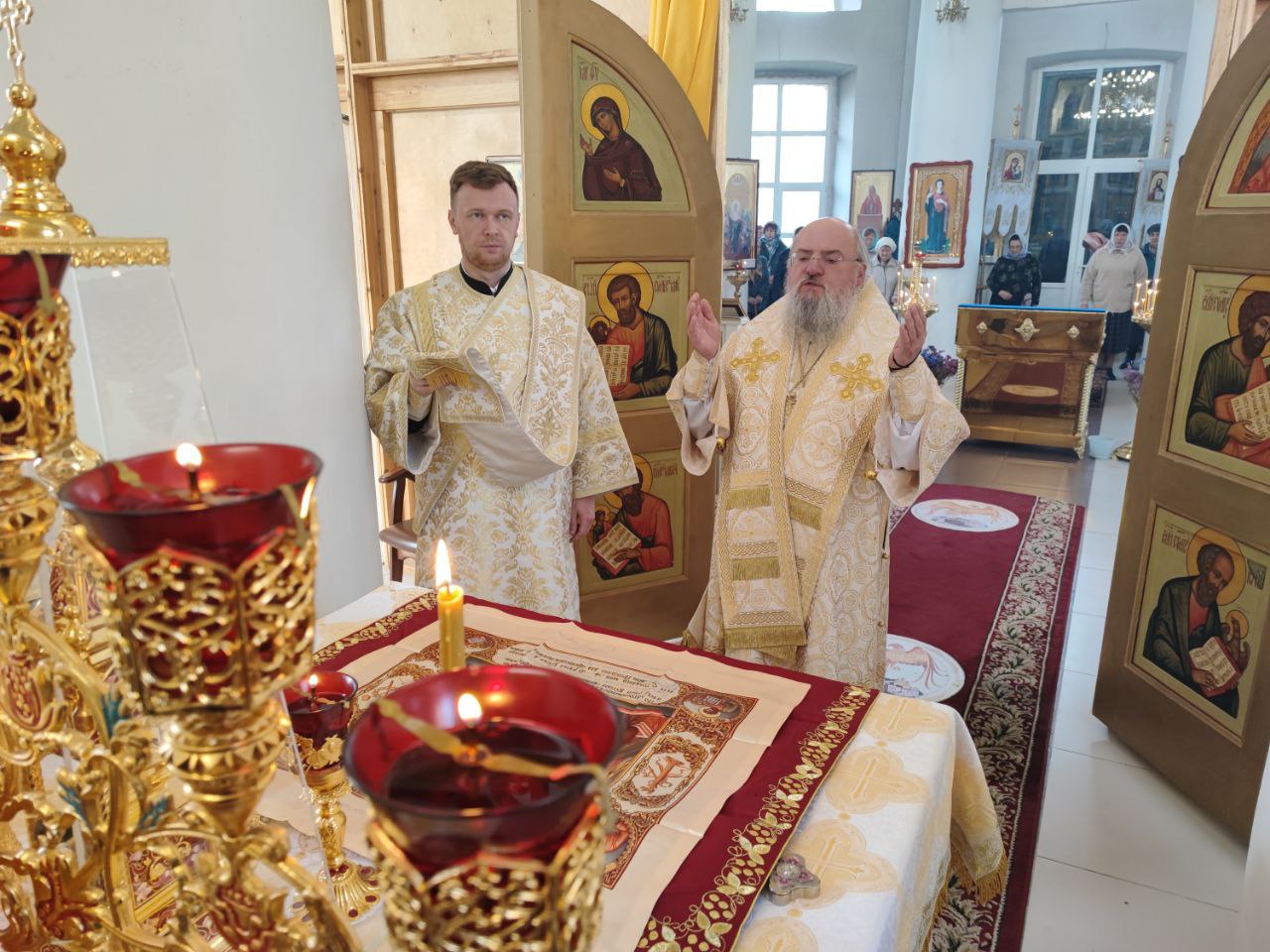 Архипастырю сослужили: протоиерей Антоний Хатунцев, иерей Андрей Товмасян- настоятель прихода и диакон Евгений Ковригин.