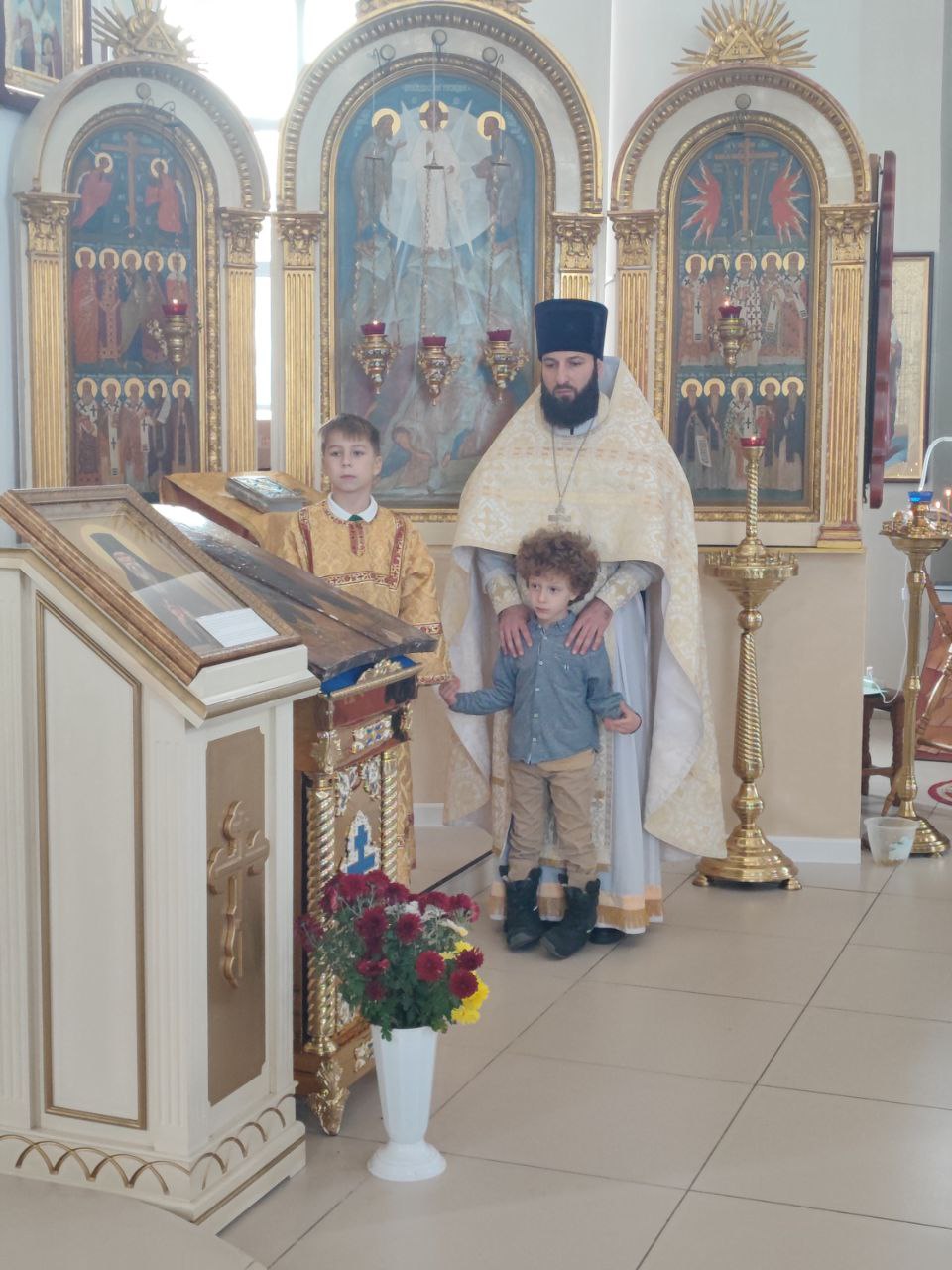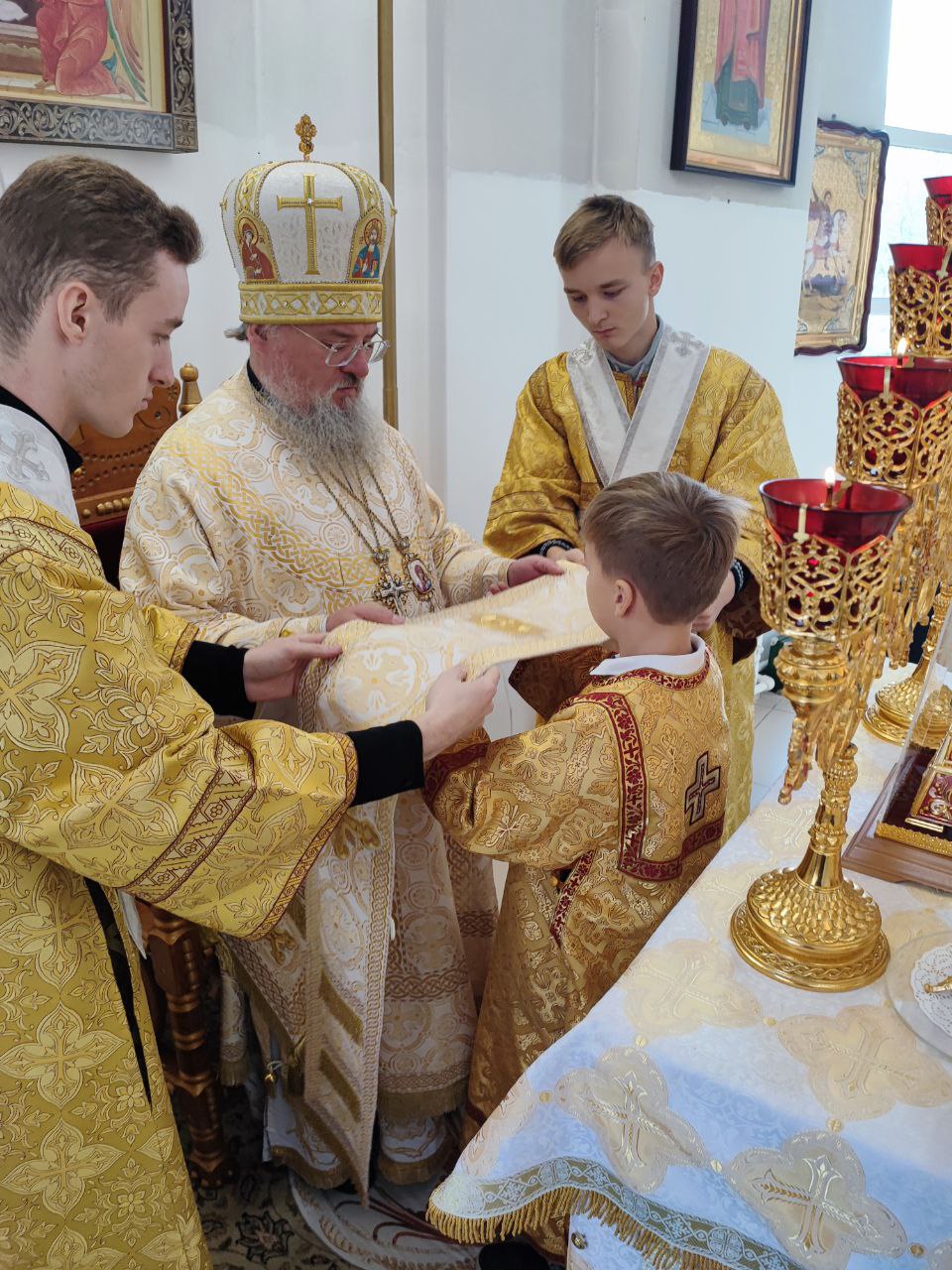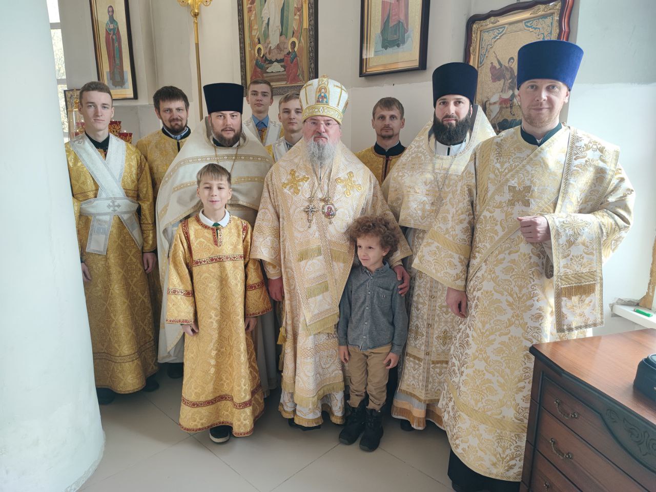 Архипастырю сослужили: протоиерей Антоний Хатунцев, иерей Андрей Товмасян- настоятель прихода и диакон Евгений Ковригин.