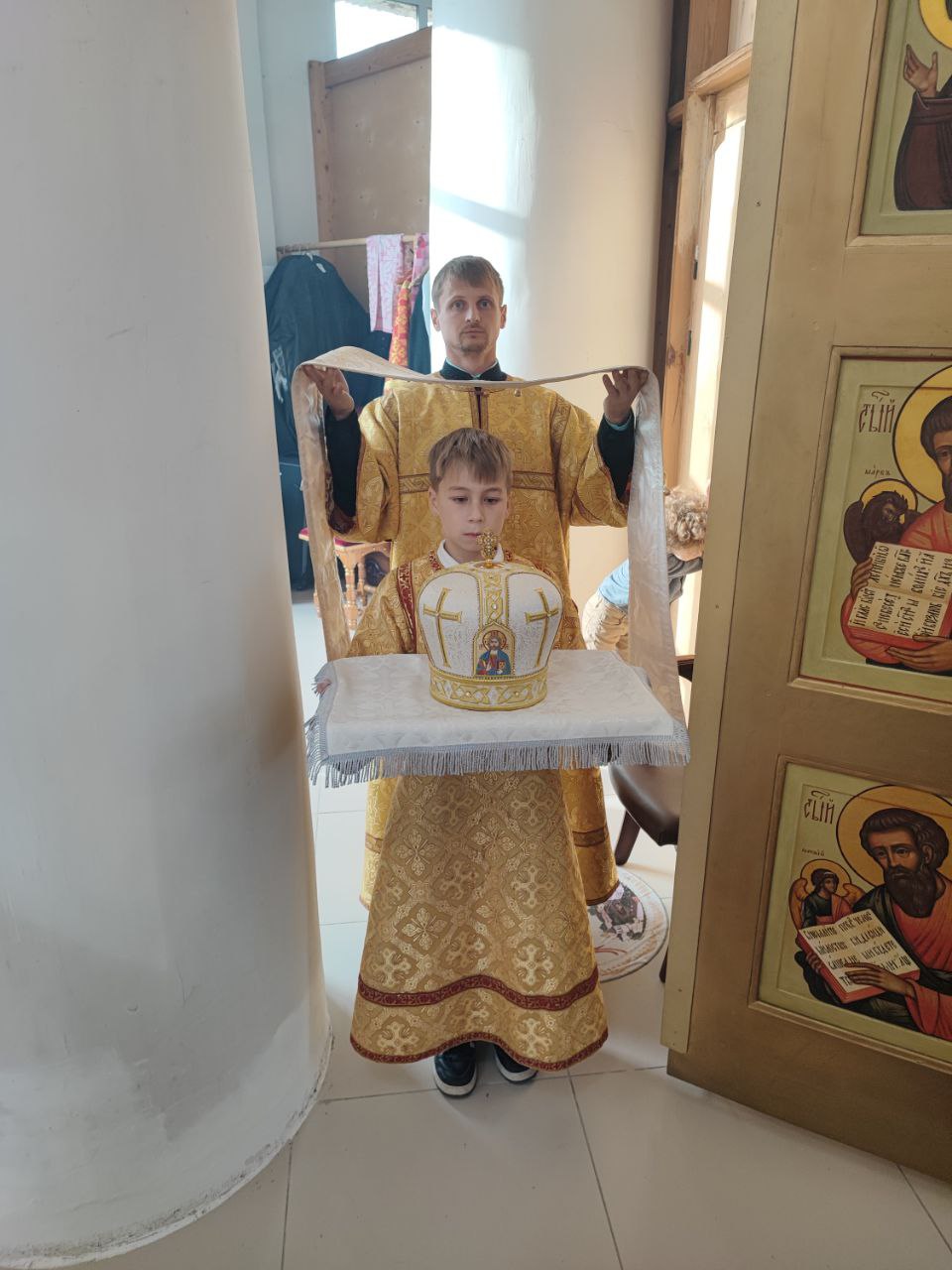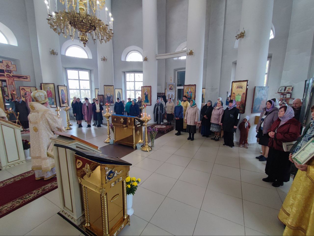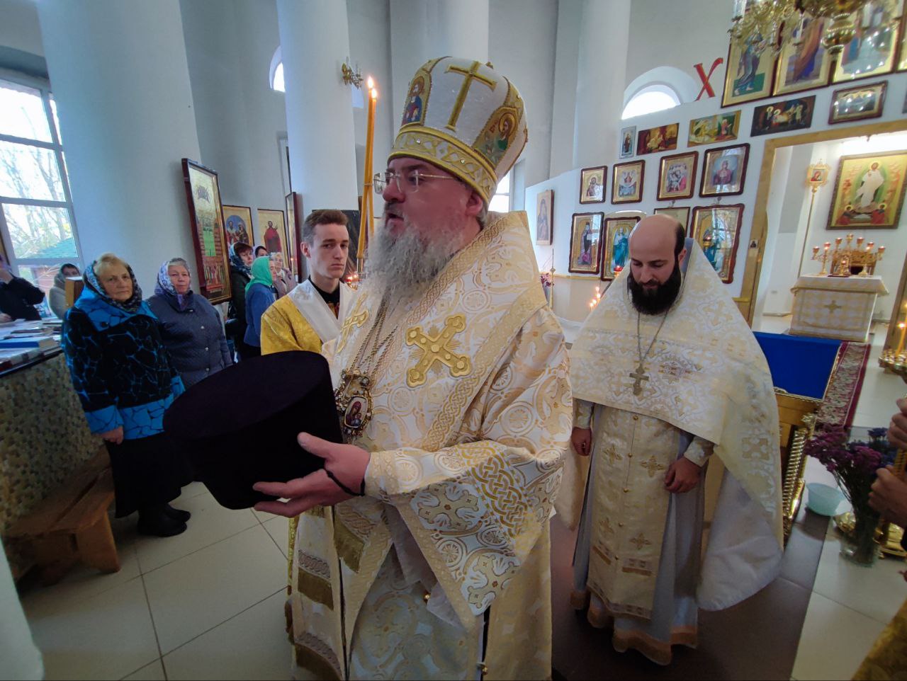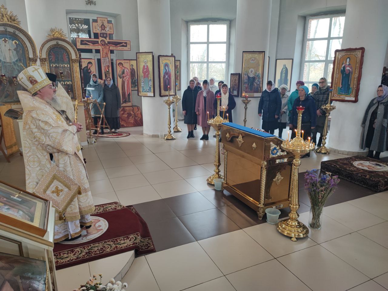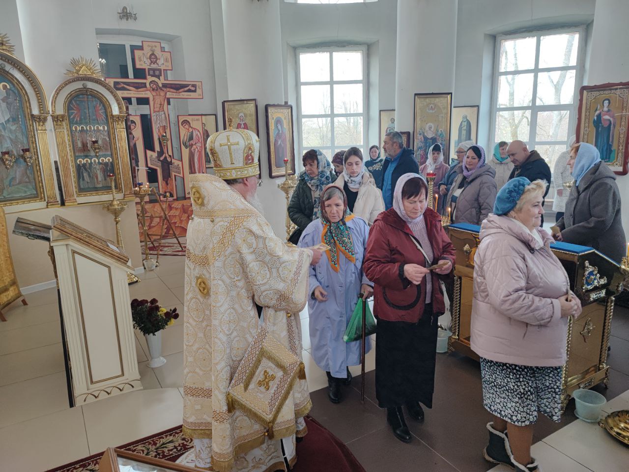В ознаменование совместной молитвы все прихожане получили из рук архипастыря небольшие иконки святых Жен Мироносиц.