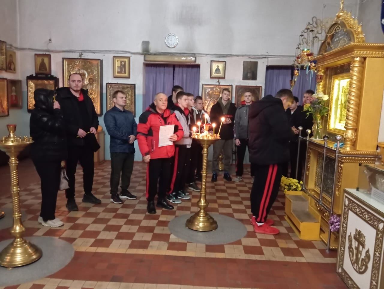 Ребята и тренер подошли на благословение к священнику храма иерею Алексию Сначёву, помолились у иконы Божией Матери «Избавление от бед страждущих», именуемой «Людиновская».