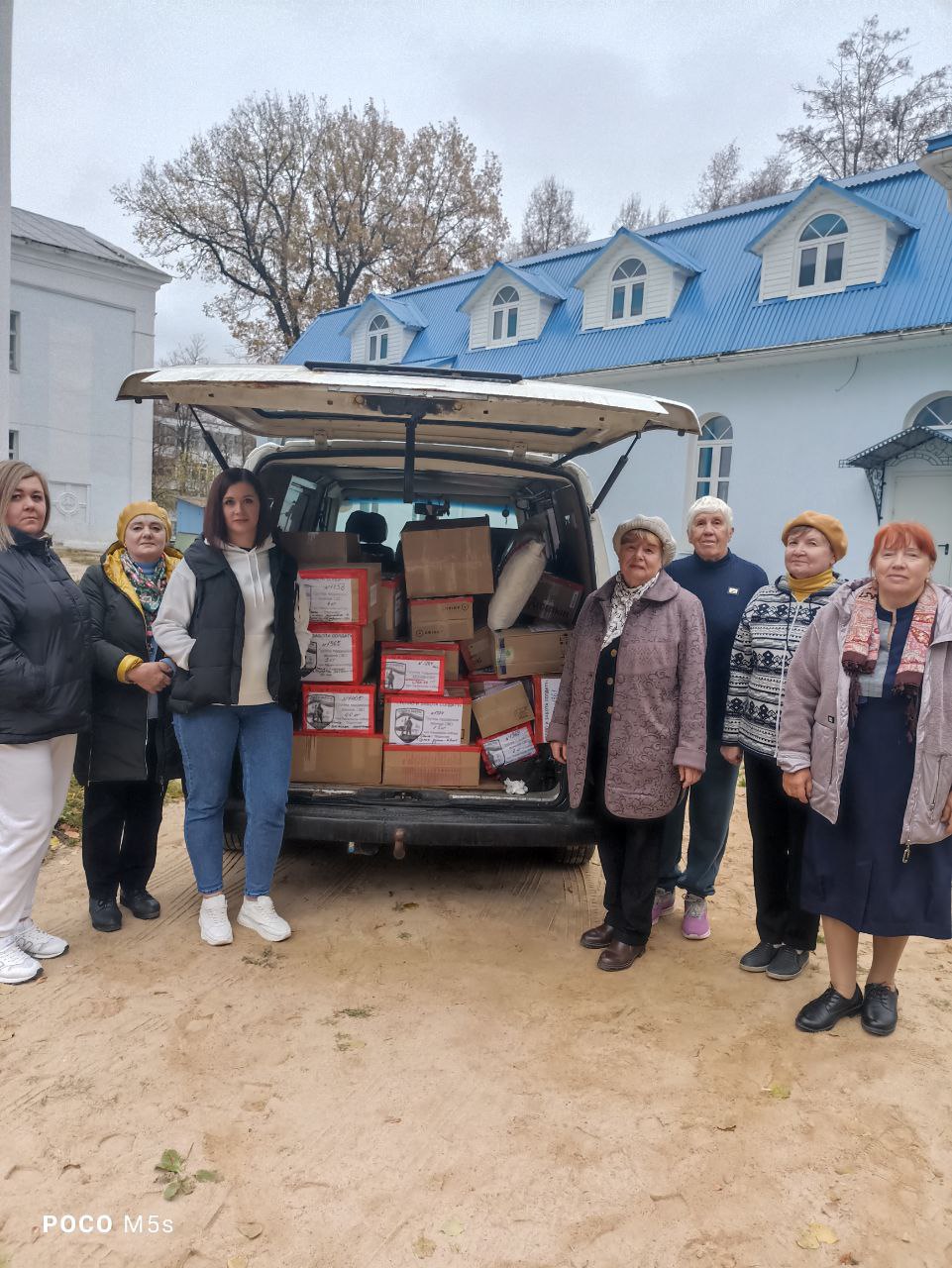 Усердными трудами людиновцев, добровольцев группы и прихожанами Казанского собора города Людиново в сентябре — октябре 2024 года упаковано около тонны груза для зоны СВО.