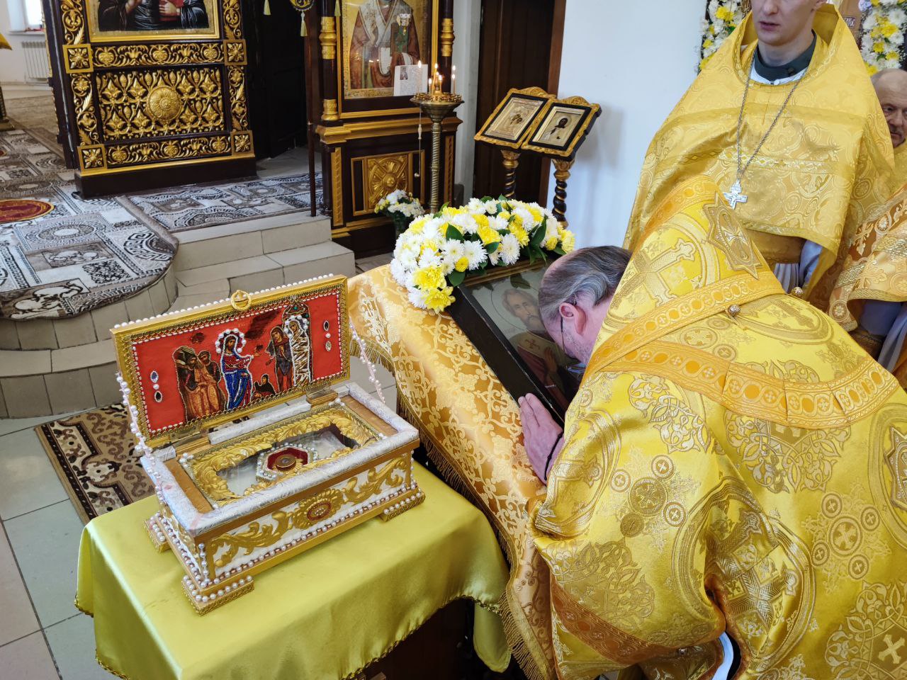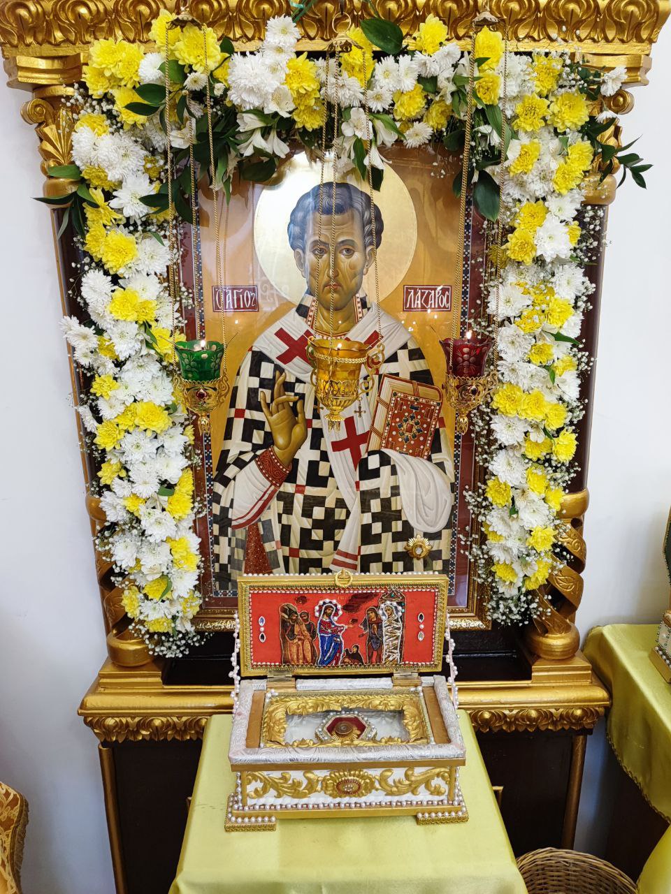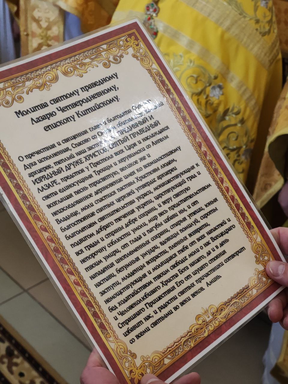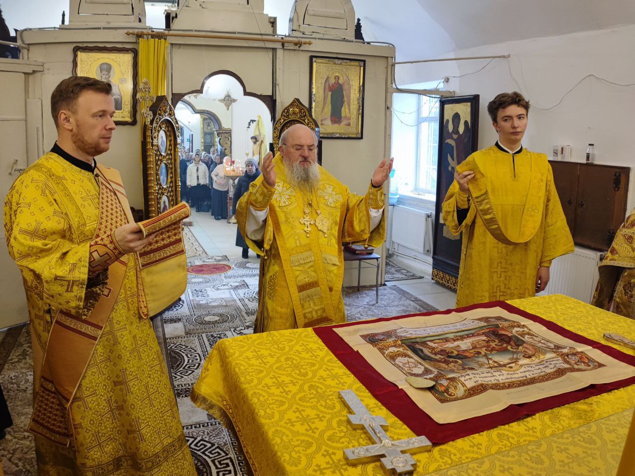 По отпусте литургии священнослужители совершили праздничный молебен пред образом праведного Лазаря, в заключении которого архипастырь вознес молитву святому.