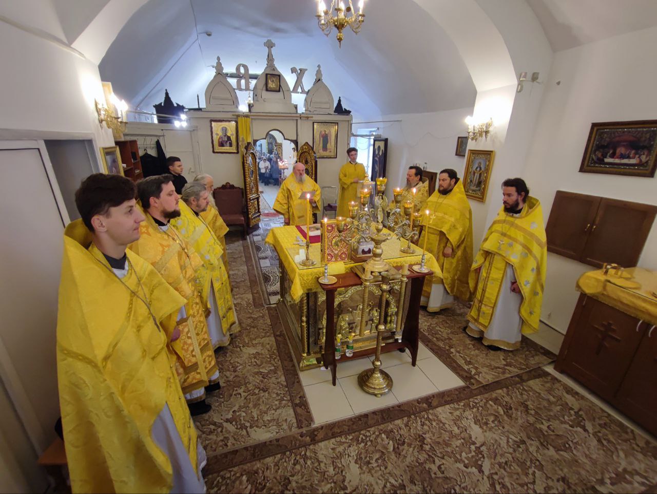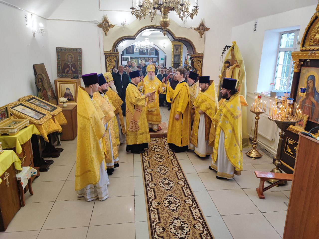 Архипастырю сослужили: благочинный округа протоиерей Алексий Жиганов, протоиерей Василий Биляк, настоятель Лазаревского храма протоиерей Михаил Карпенко, протоиерей Антоний Хатунцев, иерей Иоанн Майоров, иерей Николай Безручкин, иерей Филипп Лисенков, диакон Евгений Ковригин и диакон Никита Агарев.